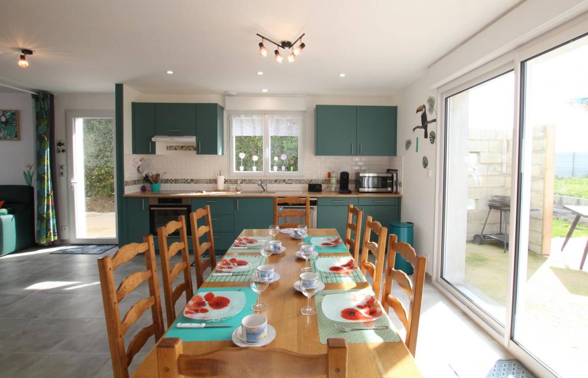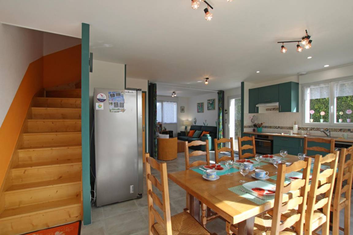 „Très bonne semaine de vacances, dans un gîte où vraiment rien ne manque. Le terrain est bien clos, ce qui est appréciable lorsqu'on se retrouve avec 4 chiens (un grand merci d'avoir accepté les 2 chiens supplémentaires). Il y a assez d'espace pour accueillir au moins 4 adultes et un bébé (ses premières vacances avec une première nuit de 10 heures). Gîte confortable, pas trop de monde à cette période, la plage à perte de vue. un peu de soleil, des nuages, et presque pas de pluie.“