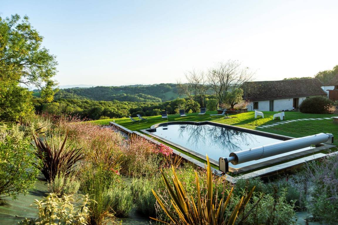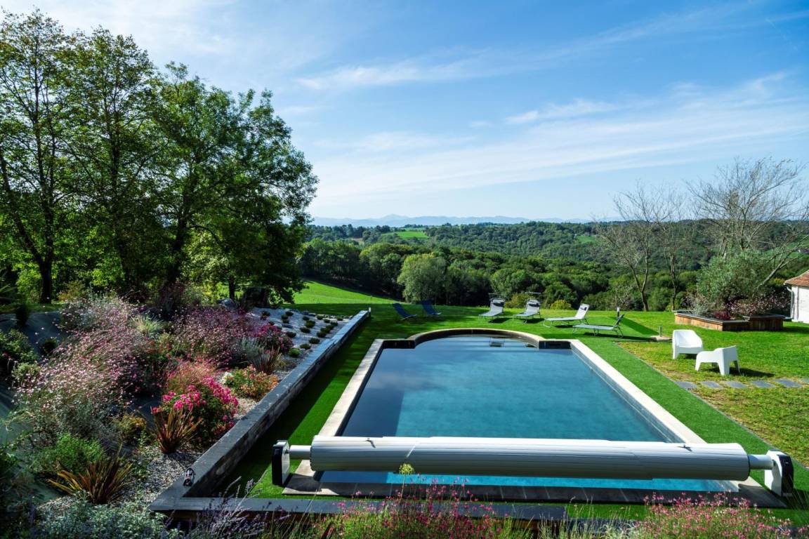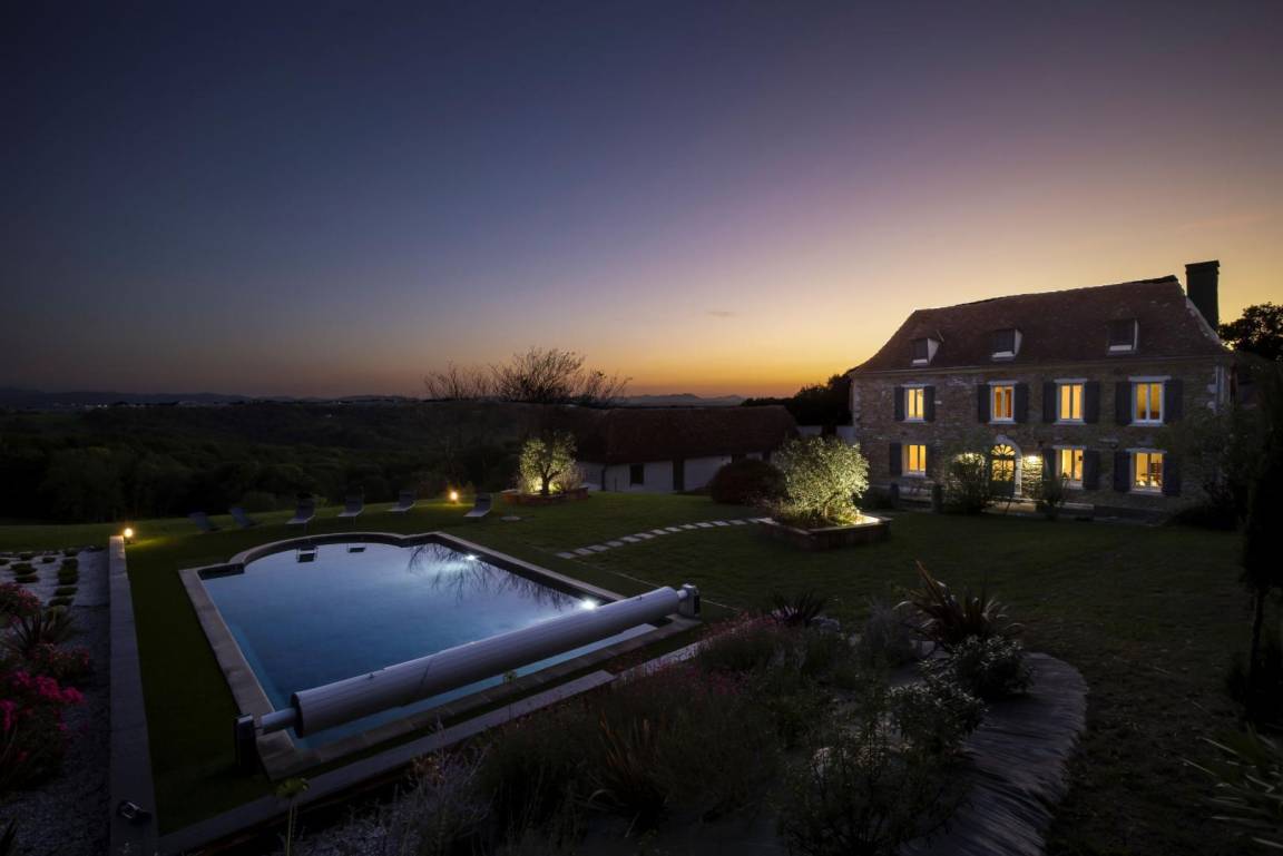 Das Anwesen Sarraude liegt mit Blick auf die Pyrenäen im Baskenland-Béarn inmitten eines 36 Hektar großen, unberührten Naturgrundstücks mit Wäldern und Wiesen. Zahlreiche Wanderwege laden zum Erkunden ein.