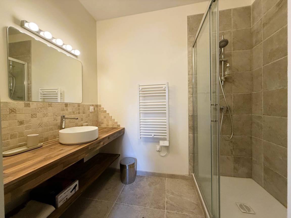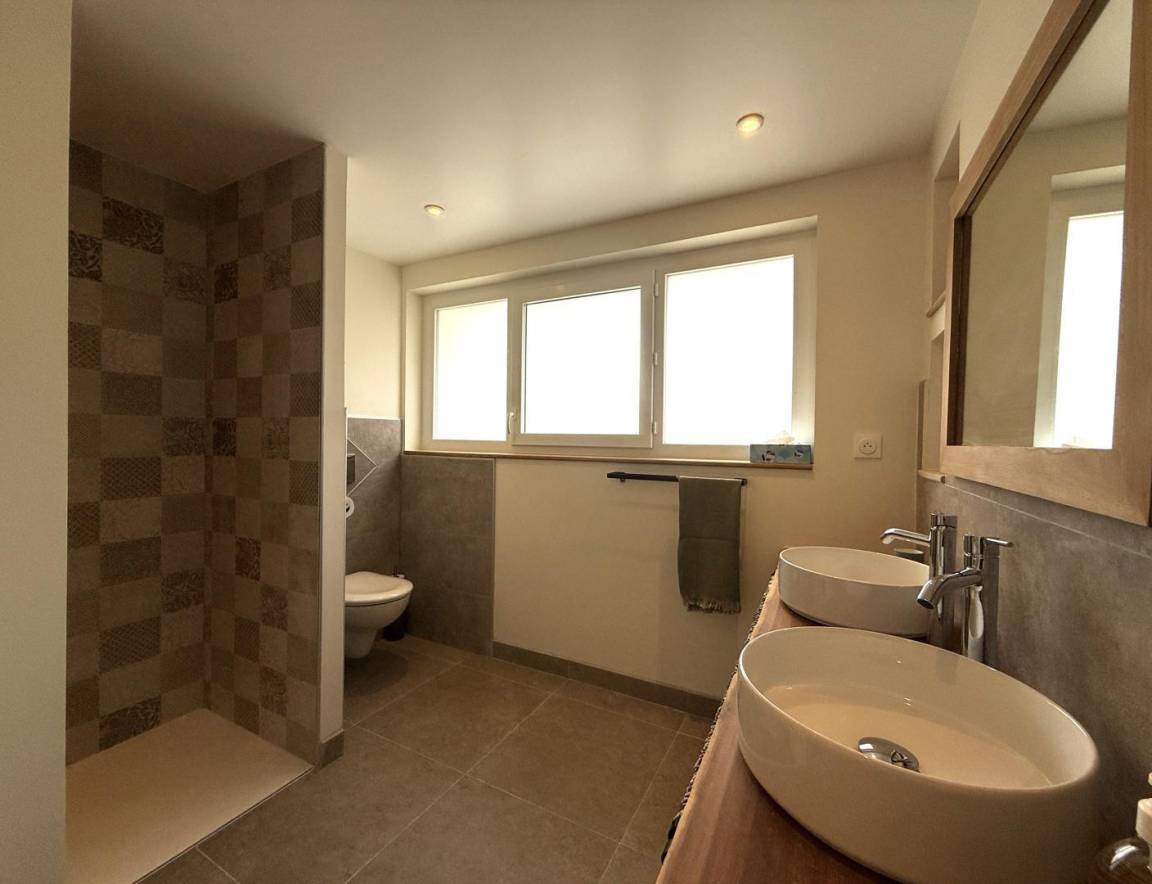 Ezimmer (begehbare Dusche, Doppelwaschbecken, WC, Waschmaschine). Separates WC.