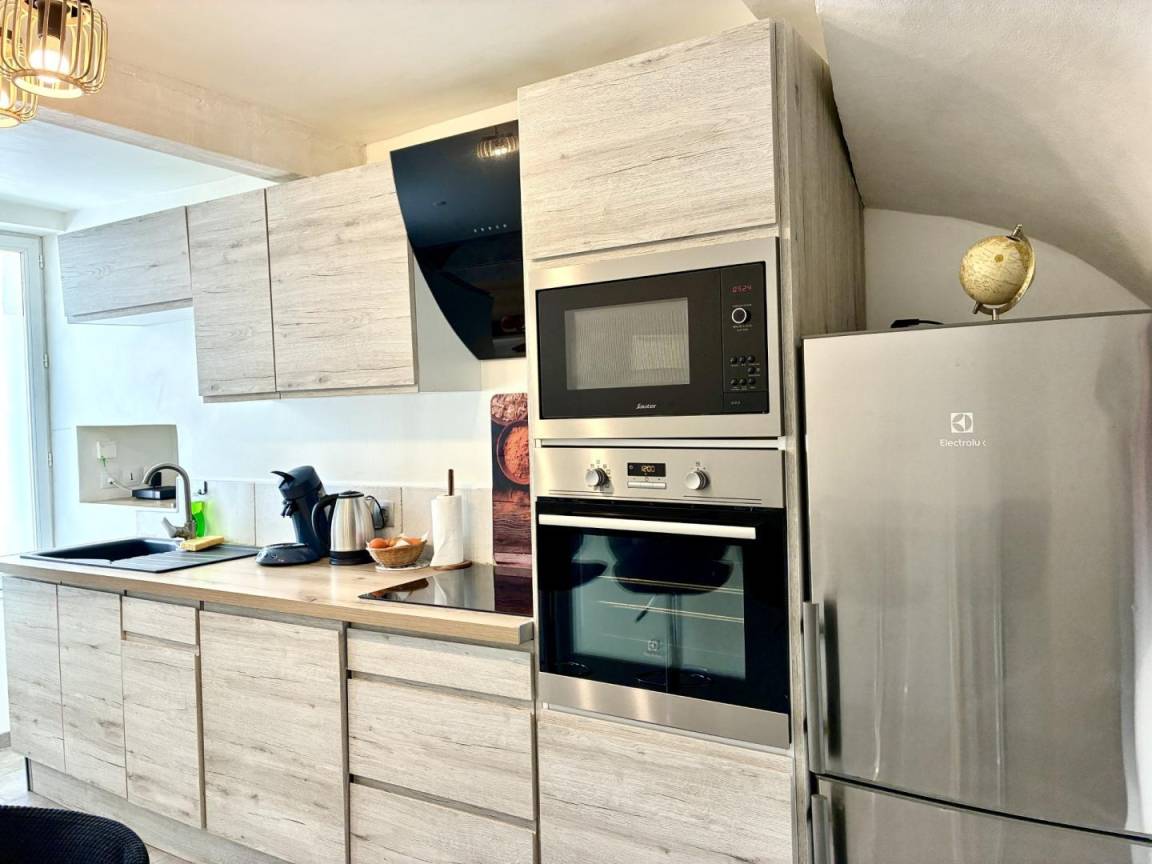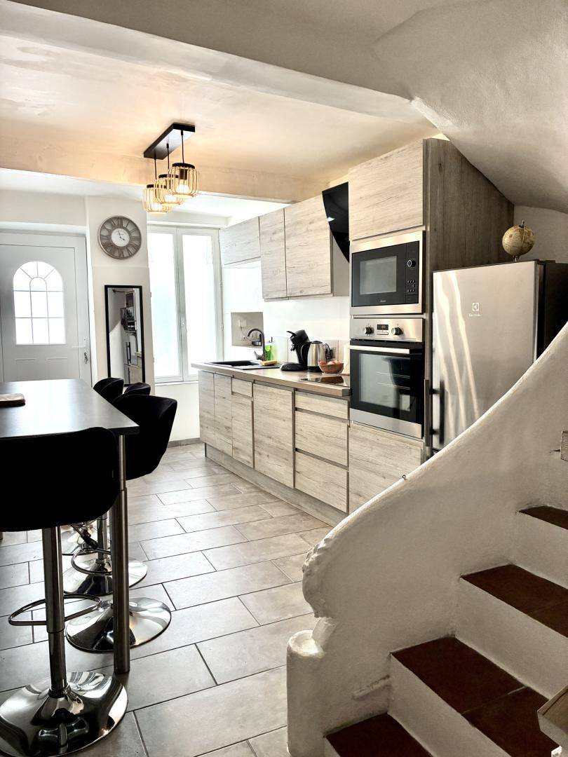 „Une petite maison de village sur deux niveaux. Rénovée avec goût, équipement complet et récent. Au calme, dans une ruelle fermée à la circulation. Agréable séjour. Merci !“