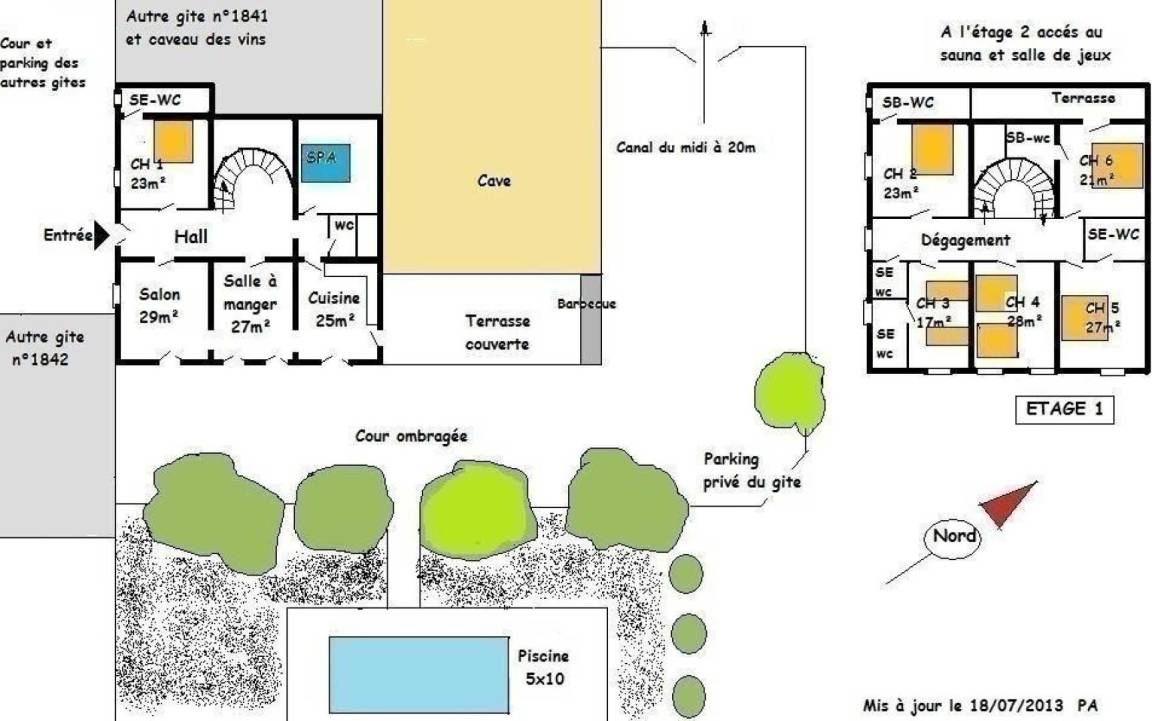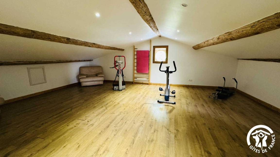 Ferienhaus bestehend aus in das Erdgeschoss: Küche öffnen auf eine überdachte Terrasse mit Gartenmöbeln und Grill, Badezimmer, Esszimmer, Wc Indep, Spa mit SDE, einem Schlafzimmer (1 Bett 160 cm) mit Dusche - WC. 1.OG: 5 Schlafzimmer mit 5 SDE - WC (2 Betten in 140, 2 Betten 100, 3 Betten in 160). 2.OG: Spiele und Fitnessraum Fitness, Dusche - WC und der externe Zugriff auf die Sauna. Privatparkplatz, zusätzliche Heizung. Alle Zimmer sind klimatisiert. Frühstück möglich, Bettwäsche und Handtücher inbegriffen.