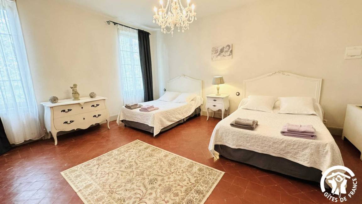 „We stayed for a week, with our extended family across three generations. The house is beautiful and spacious. The kitchen is generously sized and extremely well appointed. We cooked dinners most nights and we had everything we needed. The bedrooms are huge and very comfortable. Even though it was in the middle of a heatwave, inside was relatively cool. The swimming pool was lovely and we played boule under the trees most afternoons. Warmly recommended!“