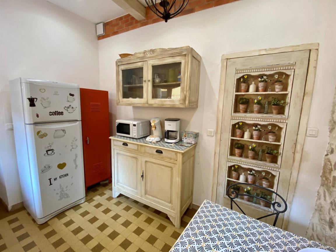 „Proximité des plages (10km), et de la ville de Narbonne. Place de parking pas disponible près du logement, parking public dans village à 2 min à pied.“