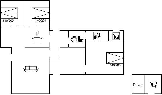 Das Ferienhaus eignet sich für 6 Personen. Die Ferienunterkunft hat eine Wohnfläche von 94 m² und wurde 1980 gebaut. 1993 wurde die Ferienunterkunft renoviert. Haustiere dürfen nicht mitgebracht werden. Die Ferienunterkunft ist mit einer energiefreundlichen Luft-Luft-Wärmepumpe ausgestattet. Die Ferienunterkunft ist mit Waschmaschine ausgestattet. Tiefkühlmöglichkeit mit 80 Liter Nutzinhalt. Es gibt außerdem einen Kaminofen.