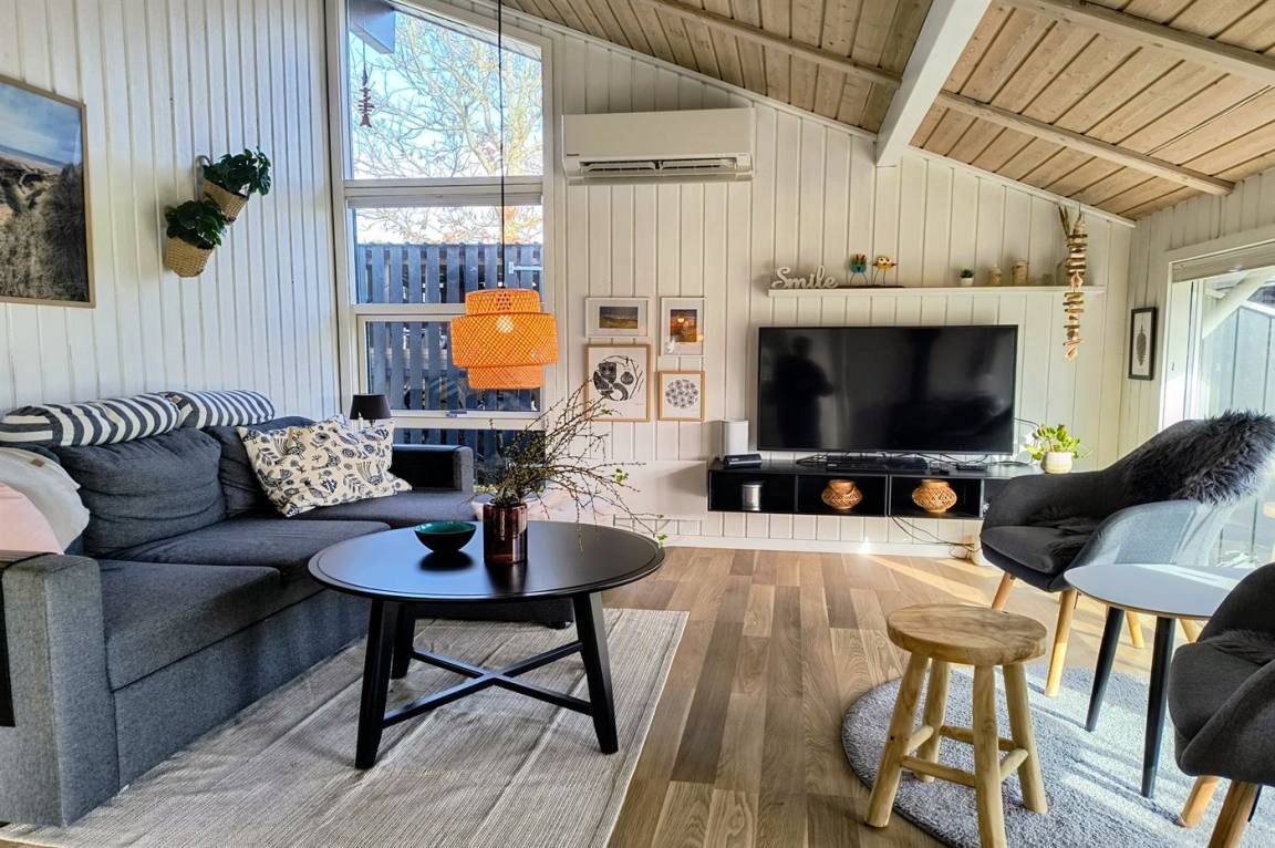 Auf einer Stichstraße, nicht weit vom Fårup Sommerland entfernt und nah an Campingplatz Jambo Feriepark, liegt dieses gemütlich eingerichtete Ferienhaus. Der schöne Strand liegt nur eine kurze Fahrt vom Haus entfernt und auf dem großen Grundstück gibt es viel Platz für Ballspiele und andere Aktivitäten im Freien.