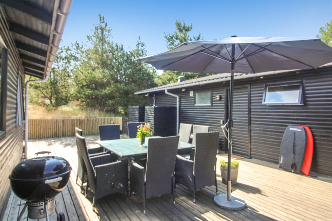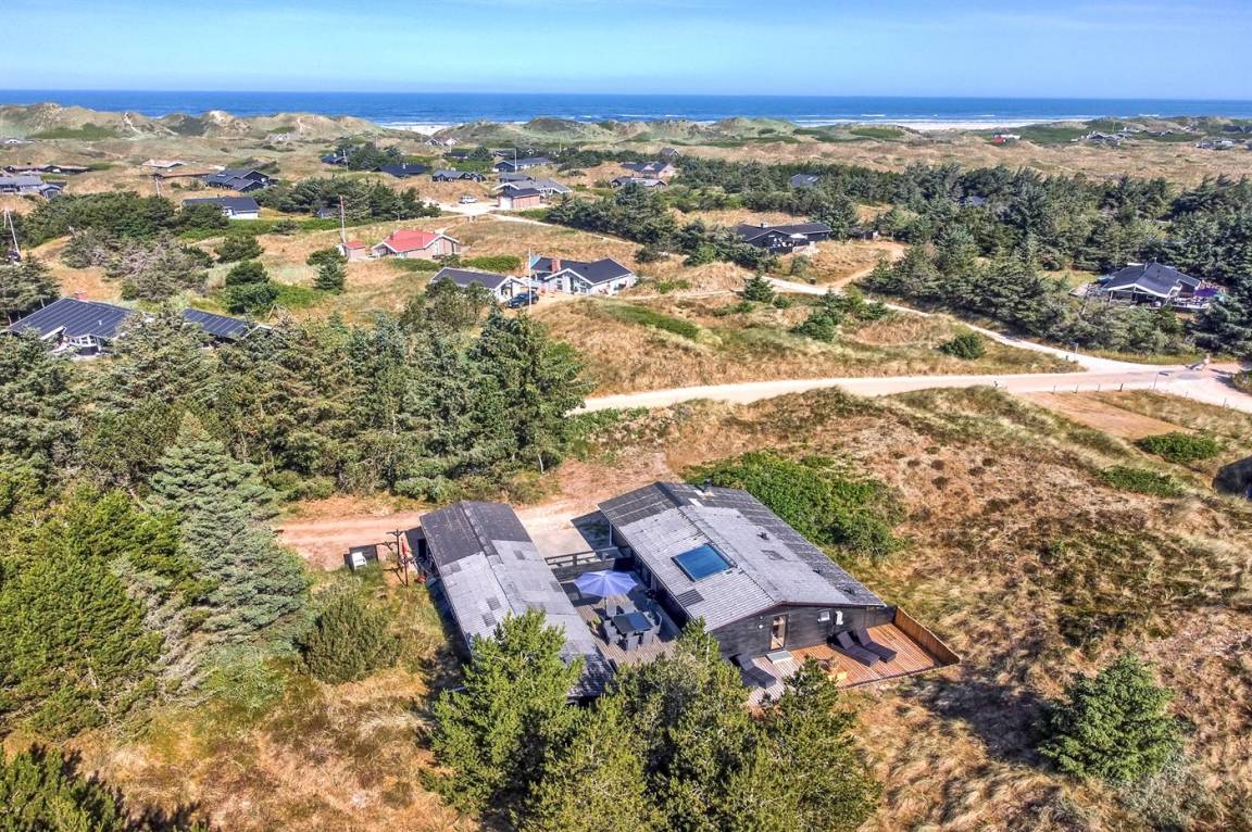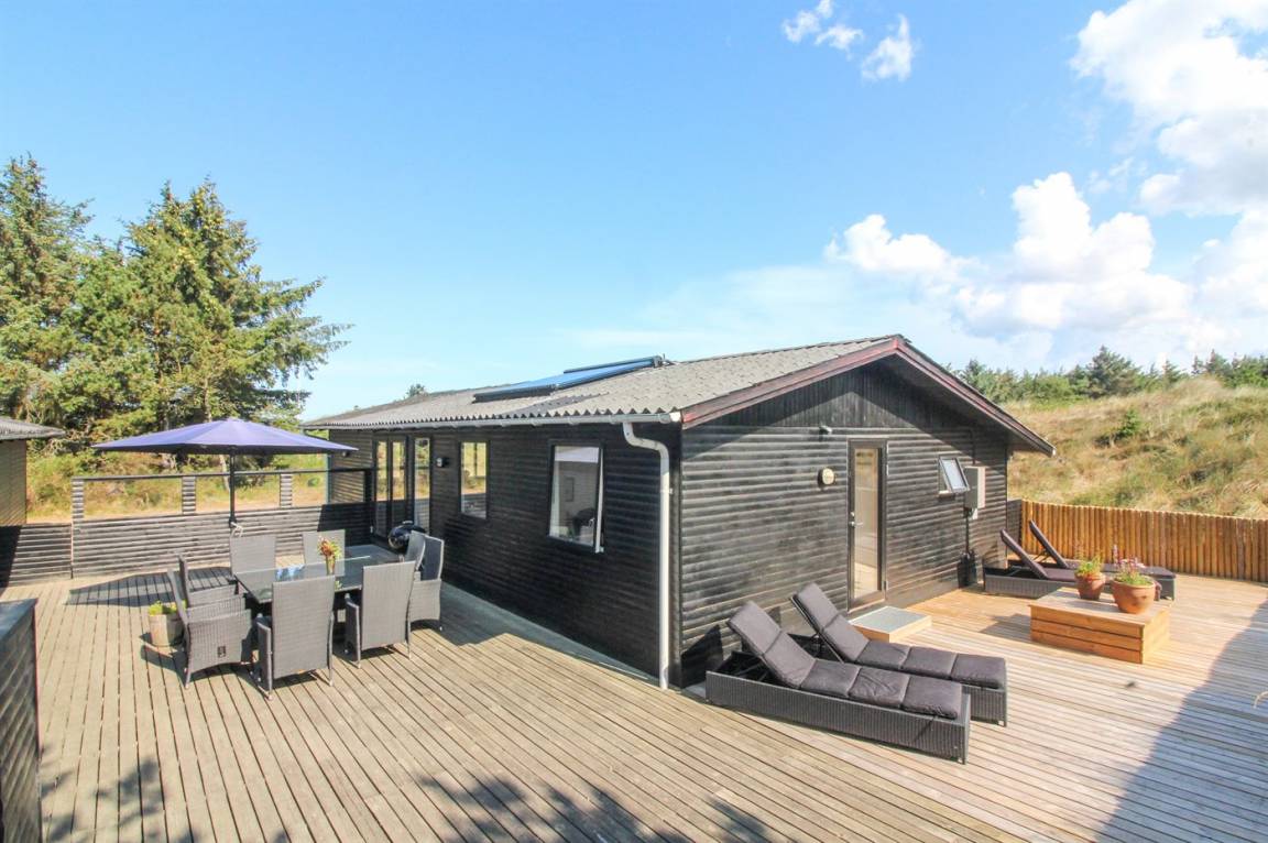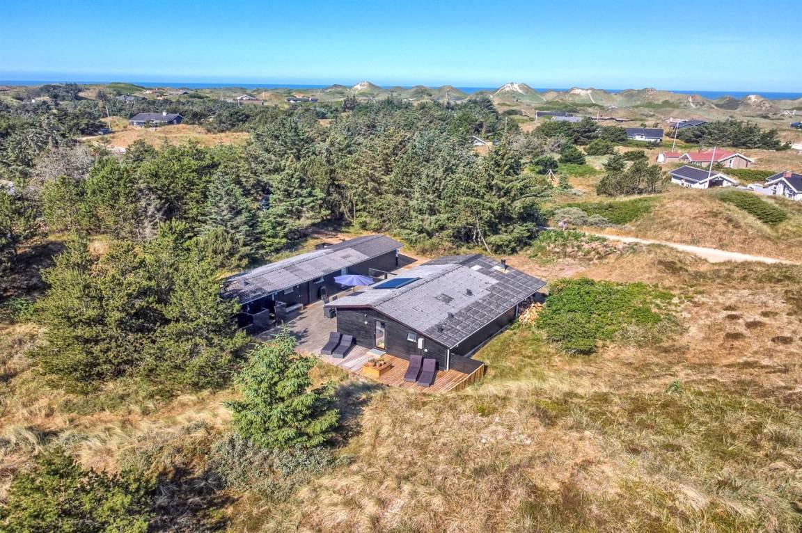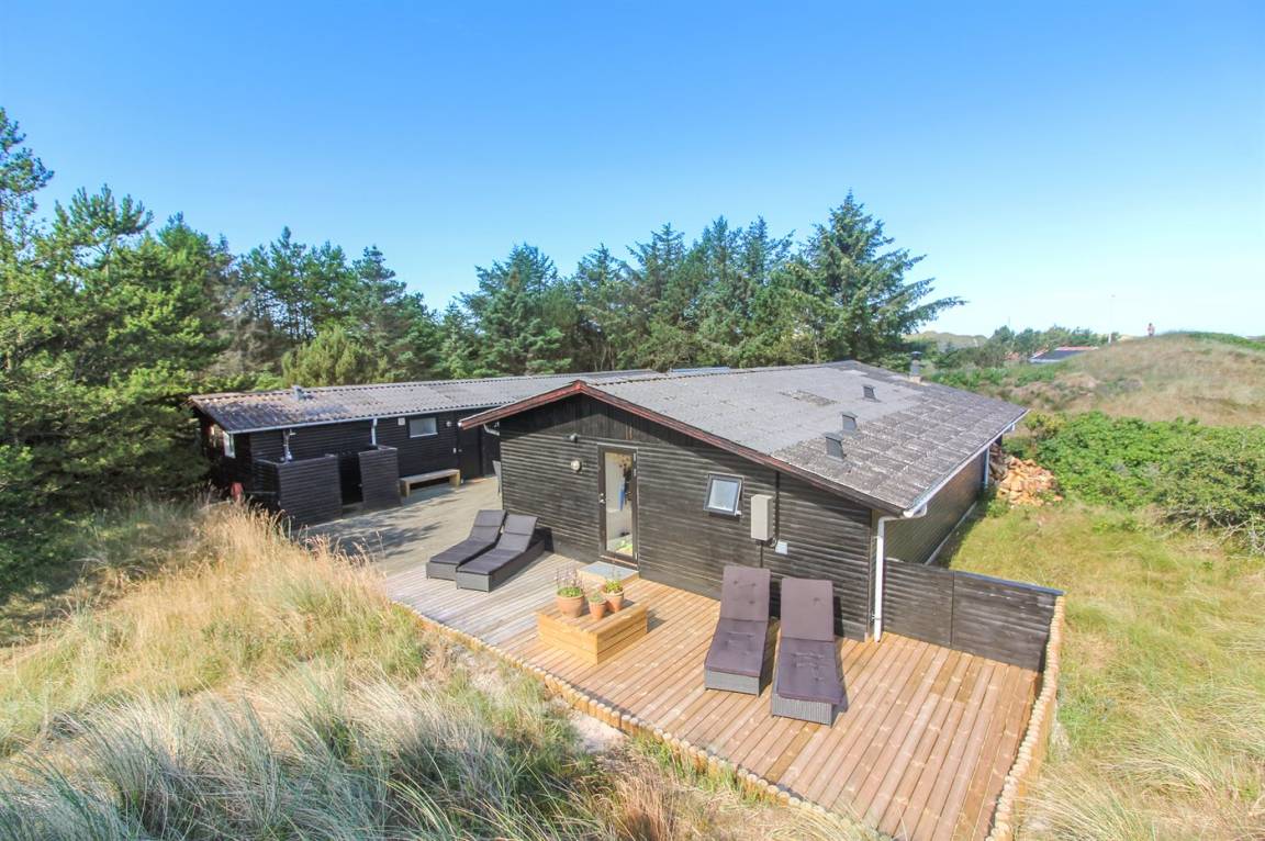 Dieses gemütliche und geräumige Ferienhaus älteren Jahrgangs, im Laufe der Jahre ausgebaut und renoviert, liegt auf einem Natur-/Dünengrundstück dicht am Wasser. Vom Grundstück ist das Meer zu ahnen. Zum Haus gehört ein großes, geschlossenes Terrassenareal mit Gartenmöbeln, Außendusche und guten Windschutzmöglichkeiten. Ferner Gästehaus mit 2 Schlafzimmern sowie großem Badezimmer mit Whirlpool und direktem Zutritt zur Sauna.