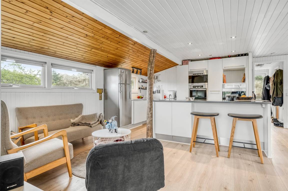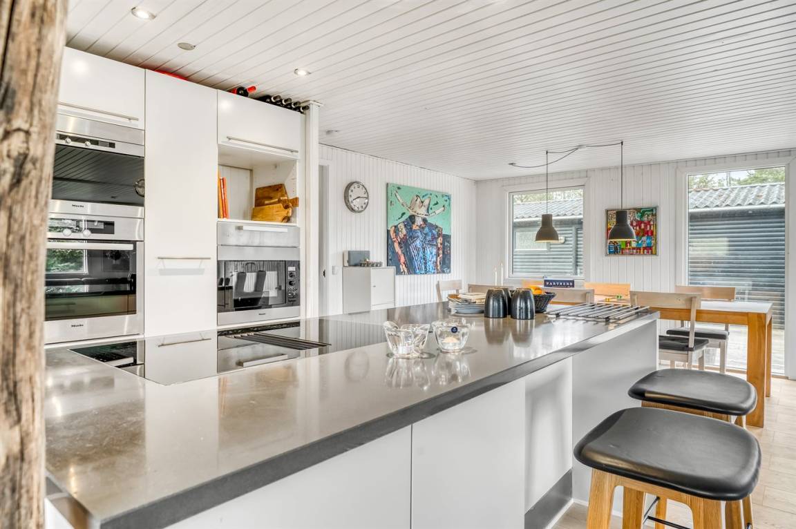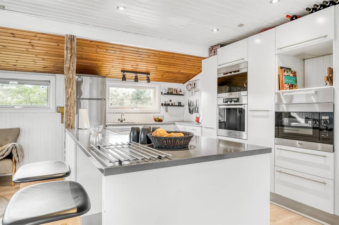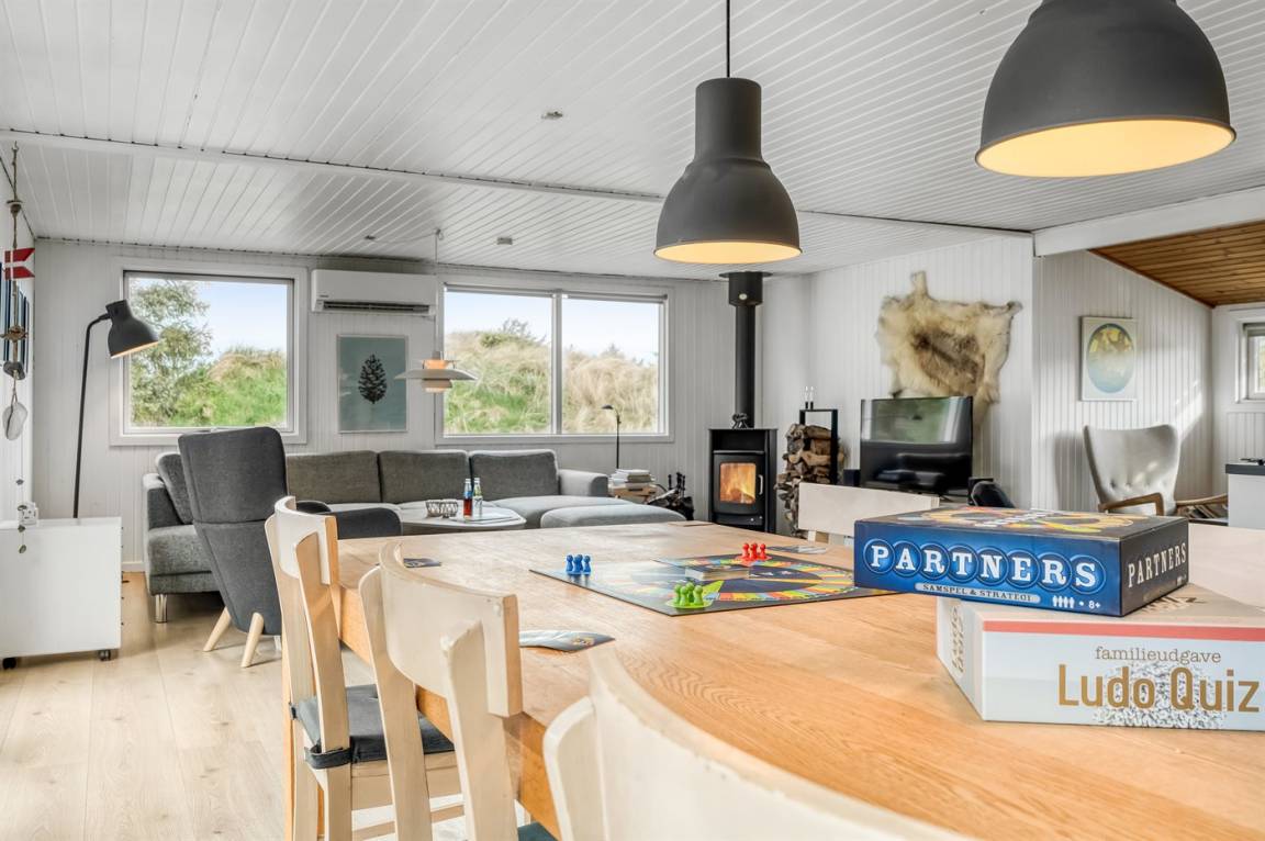 „Advice to other guests: Sehr schönes, gut gelegenes Ferienhaus. Freundliche, gemütliche, moderne Gestaltung. Gut funktionierender Kaminofen. Hier war alles für einen entspannten Urlaub vorhanden. Umfangreiche Küchenausstattung, viele Geräte, ausreichende Kühlmöglichkeiten. Gartensitzmöbel in ausreichender Anzahl und guter Qualität. Wir sind langjährige Dänemarkfreunde und haben schon sehr viele verschiedene Ferienhäuser kennengelernt und reisen nie ohne Werkzeug. Waren bereits vor 2 Jahren in einem Nachbarhaus und kannten dieses Haus darum von außen. Nach weiterer Sicht der Fotos haben wir einen Sonnenschutzpavillon mitgebracht, da wir gern zu fast jeder Wetterzeit draußen essen - ein überdachter Sitzplatz ist leider nicht vorhanden. Der einzige im Hause vorhandene Sonnenschirm wurde von uns repariert, hätte aber an dem großen "Konferenztisch" auf der Terrasse auch nicht viel genützt. Von uns wurde ein Klapptisch aus dem Schuppen vorgezogen. Vorhandene Fahrräder wurden auch gängig gemacht (hoffen, im Interesse der Vermieter) und evtl. zur Freude von nachfolgenden Gästen, die damit pfleglich umgehen. Wir kommen gern wieder!“