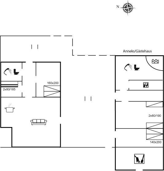 „The vacation at the holiday home: Das Grundstück war nicht so gepflegt und auch das Haus und Nebengebäude war veraltet und muffig. Cleanliness: Einzelne Räume und das Nebengebäude sind muffig und dunkel. Das Geschirr war Teilweise dreckig sowie die Waschmaschine und der Trockner. Im Küchenschrank sind stockige Korkuntersetzer! Die Stühle sind alt und wackelig. Der Esstisch war dreckig und die Oberfläche ist sehr abgenutzt. The holiday home itself: Das Wohnzimmer war schön aber das Nebengebäude veraltet wie ein Schuppen dunkel und muffig. Nur das eine Schlafzimmer im Nebengebäude war schön. Die Türen schleifen und sind verzogen, so dass die Auf- und Abschließen für Frauen schwer ist. Der Toilettendeckel sollte ausgetauscht werden.“