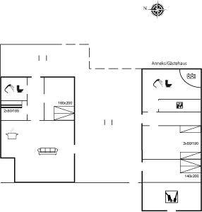 „Advice to other guests: Das Haus ist hell, freundlich und gemütlich eingerichtet, wir haben uns super wohlgefühlt. Waren zu viert hier, durch das Gästehaus mit eigenem Bad hat man Rückzugsraum und trotzdem Gemeinschaft. Die Raumaufteilung ist klassisch (großer Wohn-Essbereich mit Terrassenanschluss, kleine Schlafzimmer mit in Relation kleinen Fenstern). Gut geschützte Lage. Riesige Terrasse, es sind zig Außenmöbel und Polsterauflagen vorhanden und wir haben viel Zeit dort verbracht. Schöne Außendusche. Ein Schrank (zwischen Küche und Sofa) steckt voller Gemeinschaftsspiele. Die Küche ist wohl die am besten ausgestattete Ferienhausküche, die ich bisher erlebt habe. Auch an Kleinigkeiten wie Ersatzbatterien/-glühbirnen oder Werkzeug (im Schuppen) mangelt es nicht. Man merkt dem Haus an, dass sich jemand liebevoll darum kümmert. Büro sehr gut per Mail erreichbar und super freundlich. Vielen Dank! The vacation at the holiday home: Der Esstisch und die Küchenoberflächen wirkten bei Ankunft etwas klebrig, was nach einmal abwischen aber schnell behoben war. Wir hatten keine Info, ob speziell in diesem Haus das Feuerholz vom Eigentümer_der Eigentümerin erworben werden kann und wenn ja, wie - wir haben stattdessen extern Holz gekauft. Eine nähere Information, wie es in diesem Haus gehandhabt wird, könnte nützlich sein, besonders, wenn man viel heizen muss? Die Ausstattung ist sehr, sehr gut, besonders haben wir uns über die scharfen Messer und die gusseiserne Pfanne gefreut. Auch über die Ersatzbatterien für den Feuermelder und die bereitgelegte Stirnlampe :) Den Fernseher haben wir nicht genutzt. The local office: Die Kommunikation über E-Mail war schnell, super freundlich und hilfsbereit! The holiday home itself: Wir haben uns sehr wohlgefühlt. Die Lage zwischen den Dünen ist wunderbar, man fühlt sich sehr geschützt und kann doch den ganzen Tag sonnenbaden. Man merkt dem Haus an, dass es mit Geschmack und Sorgfalt eingerichtet wurde.“