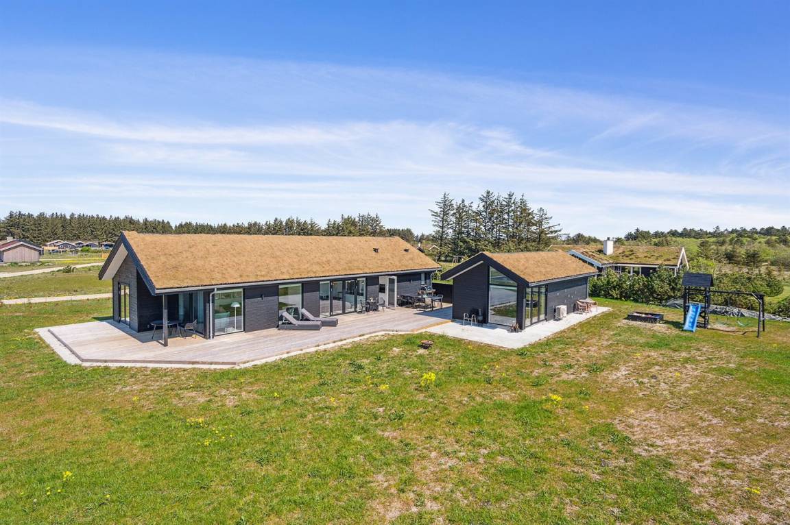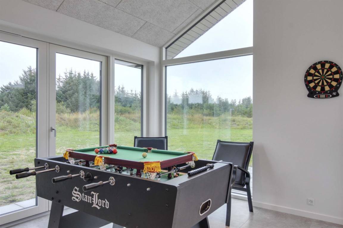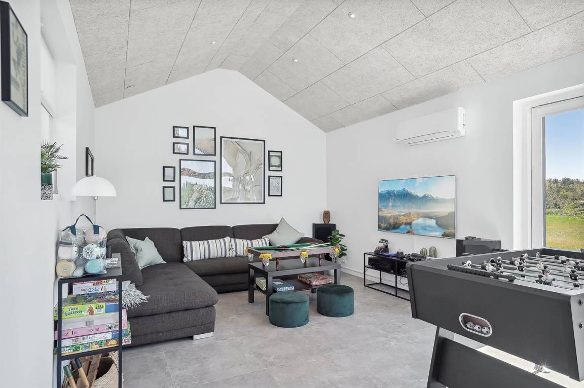 Dieses schöne, neu erbaute Sommerhaus mit Aktivitätenhaus liegt im Feriegebiet Saltum - nicht weit von einem schönen Strand, schöner Natur, den Ferienorten Blokhus und Løkken sowie dem Freizeitpark Fårup Sommerland entfernt.