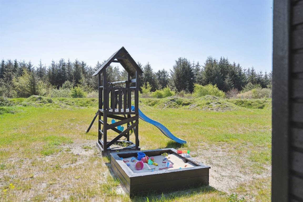 Das Ferienhaus liegt auf einem 2700 m² großen Naturgrundstück. Im Naturgarten gibt es Sandkasten, Trampolin und Spielturm mit Schaukel und Rutsche. Es gibt gute Parkmöglichkeiten für mehrere Autos.