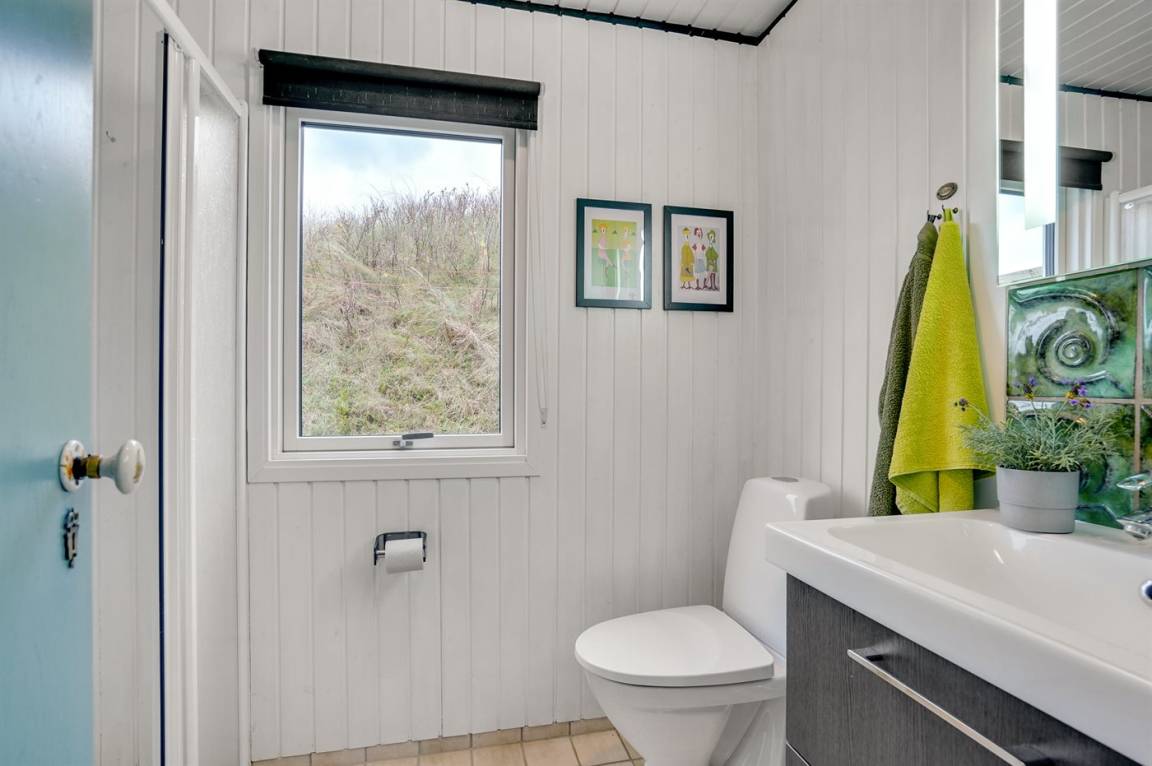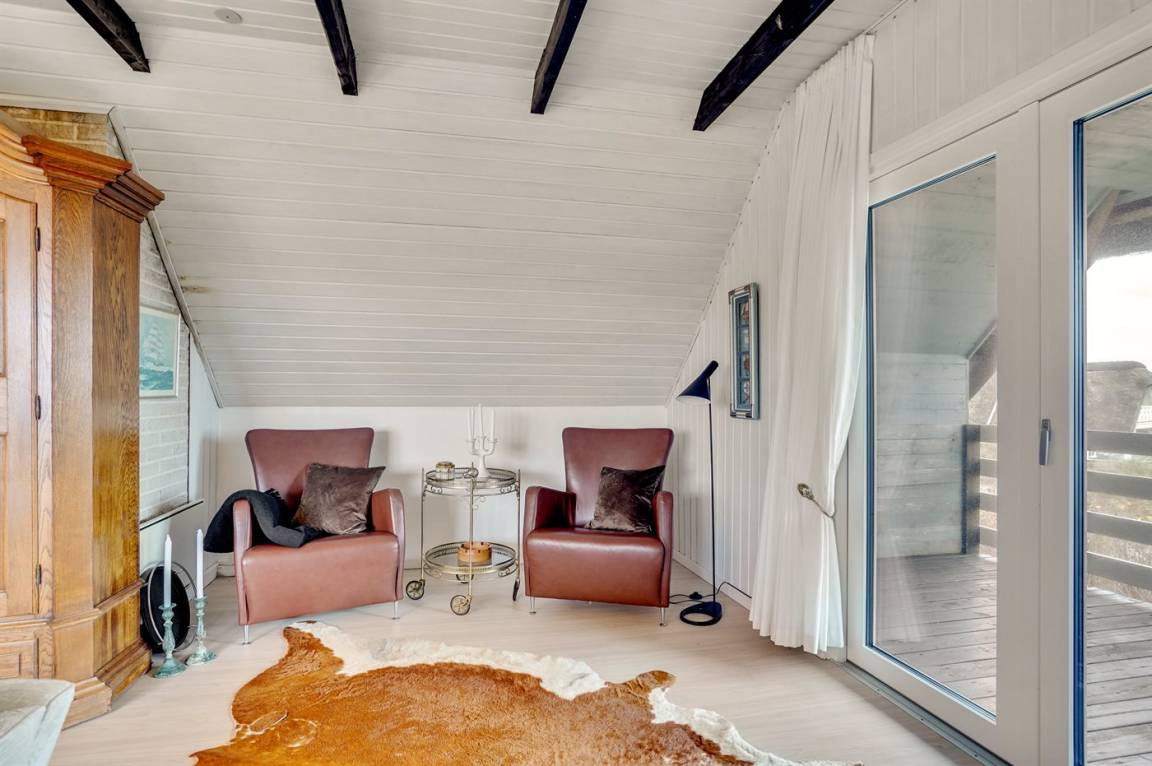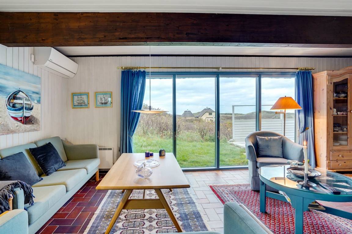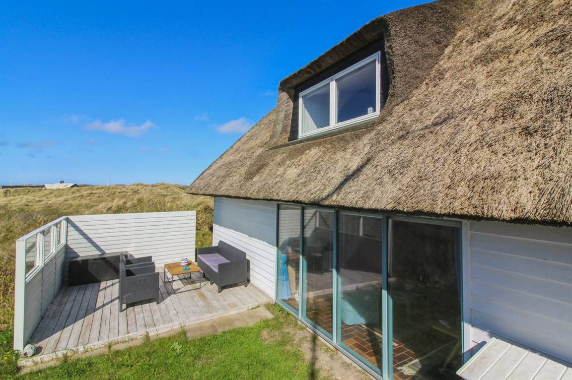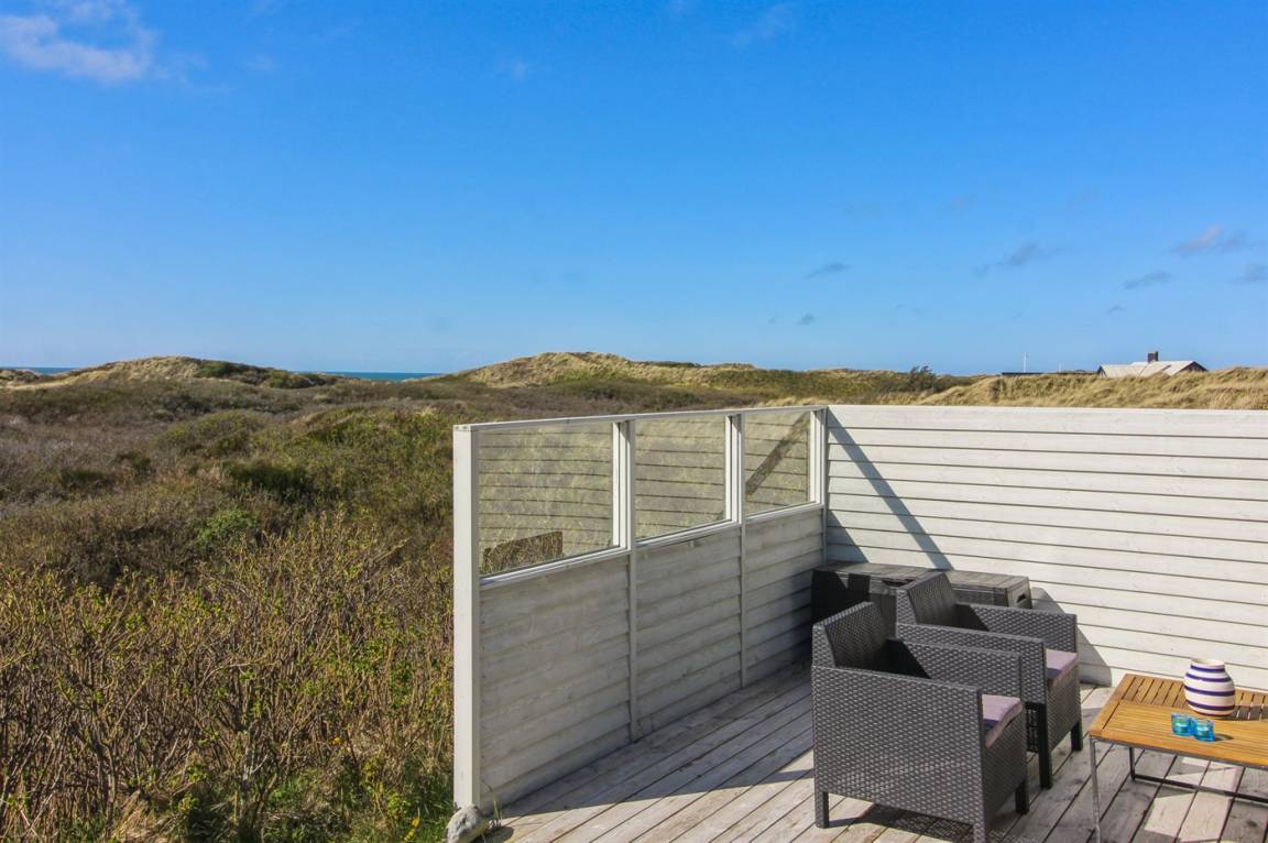 Das Sommerhaus befindet sich auf einem großen Naturgrundstück, das von den hügeligen Dünen begrenzt wird und viel Privatsphäre bietet, wenn Sie ungestört die Sonne genießen möchten. Das Haus hat sowohl eine schöne geflieste Terrasse im Erdgeschoss als auch einen Balkon im 1. Stock, von dem aus man einen schönen Blick auf das Meer und die Dünen hat.