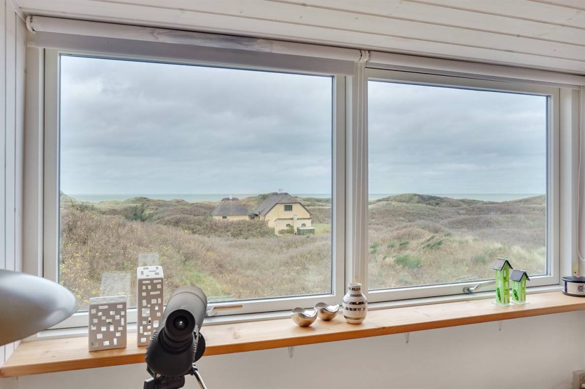 Vom großen Wohnzimmer in der unteren Etage aus hat man einen phantastischen Blick auf die Dünen und die Nordsee und von der ersten Etage aus hat man einen phantastischen Panoramablick auf die Nordsee.