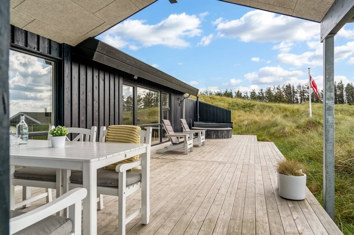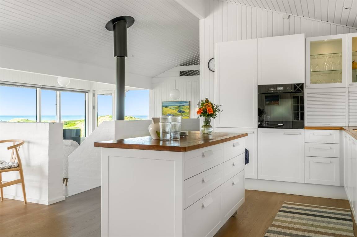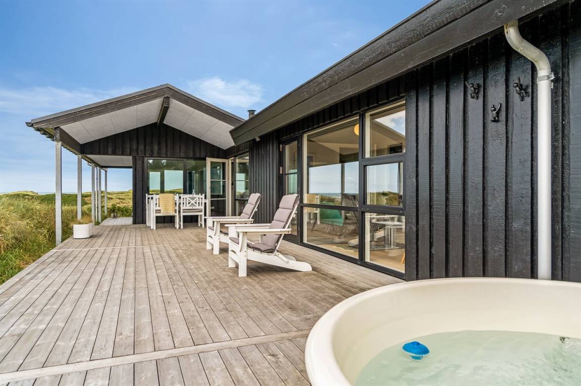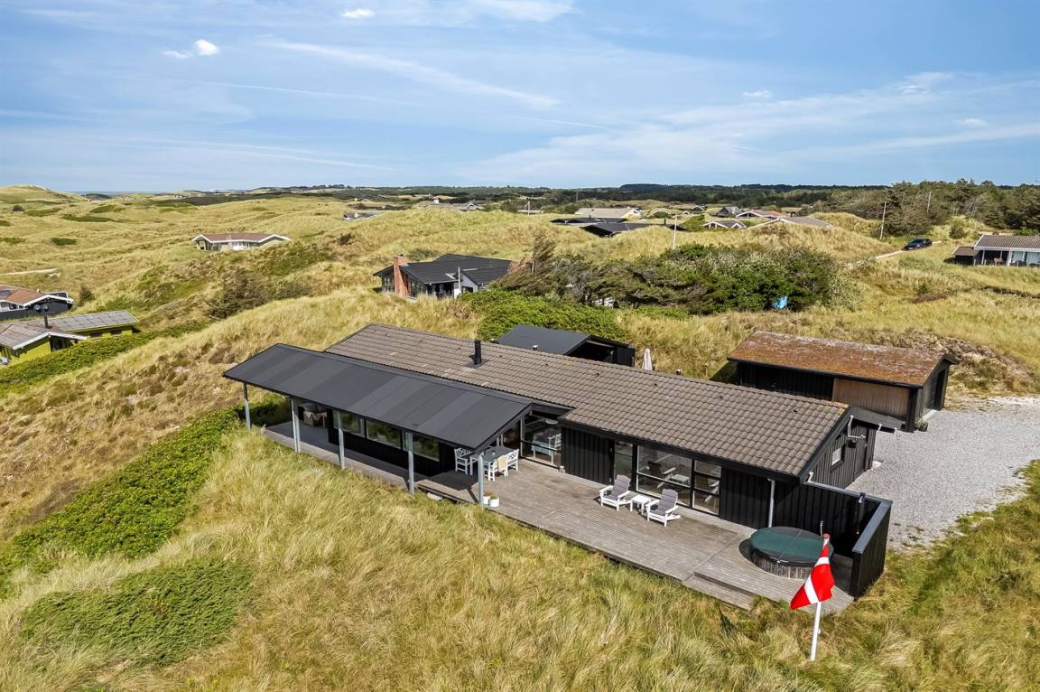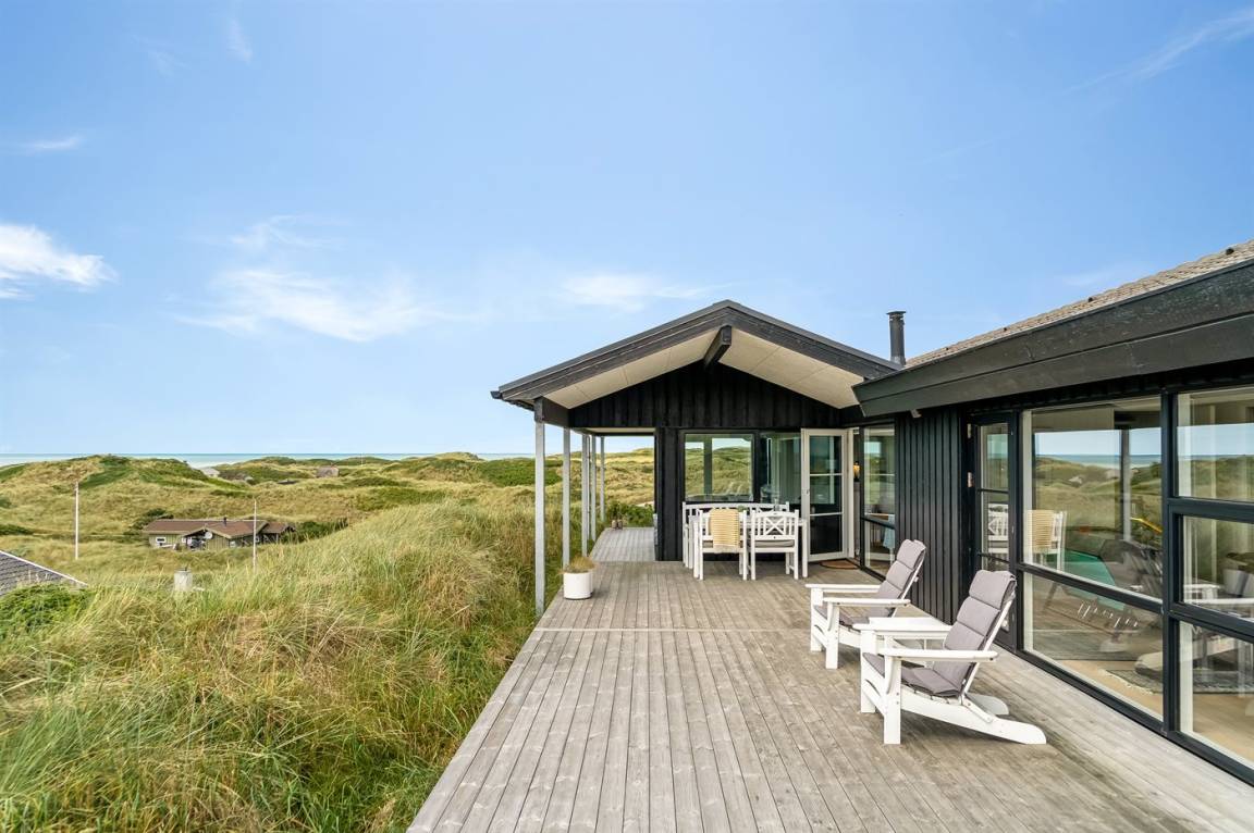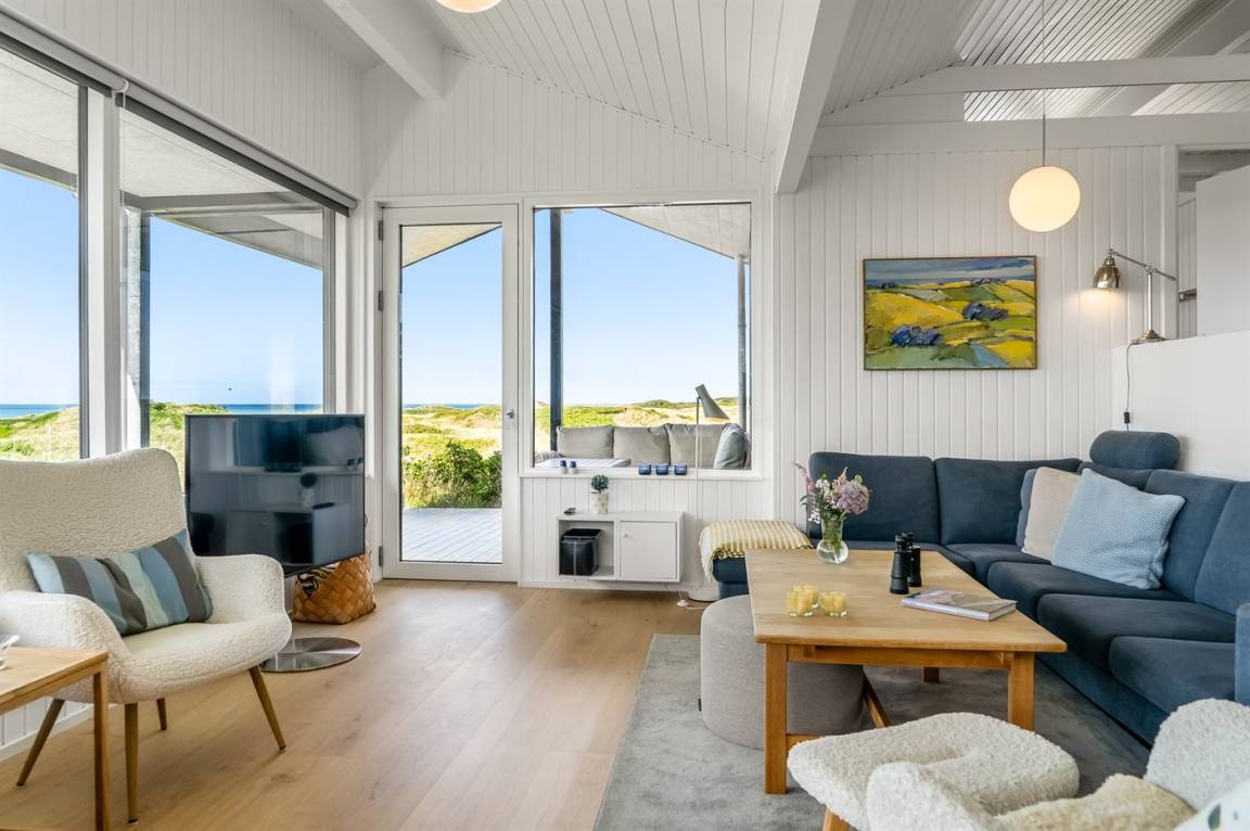 Das Ferienhaus bietet dir einen beeindruckenden Panoramablick auf das Meer, die umliegende Dünenlandschaft und die raue Natur Nordjütlands – sowohl von den Terrassen als auch vom Inneren des Hauses aus. Hier erlebst du eine einzigartige Kombination aus modernem Komfort und echter Ferienhaus-Atmosphäre.