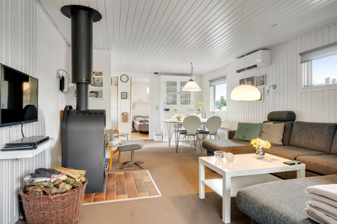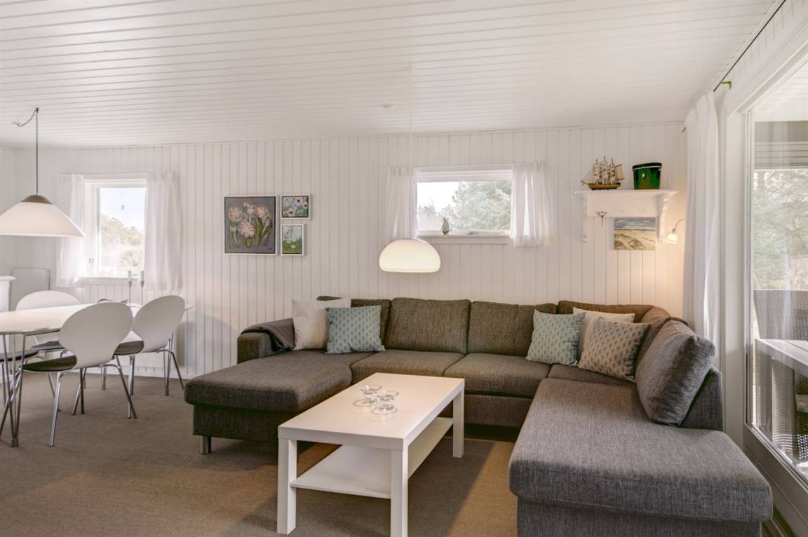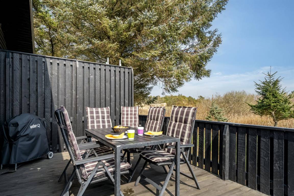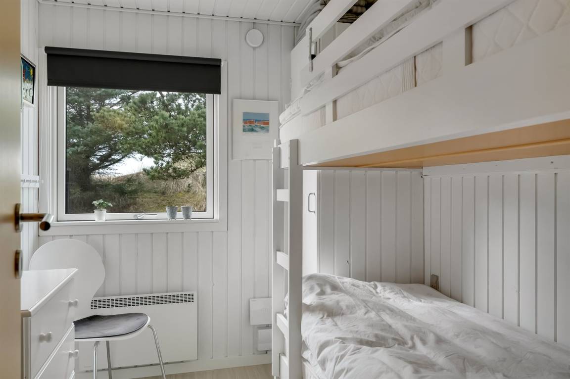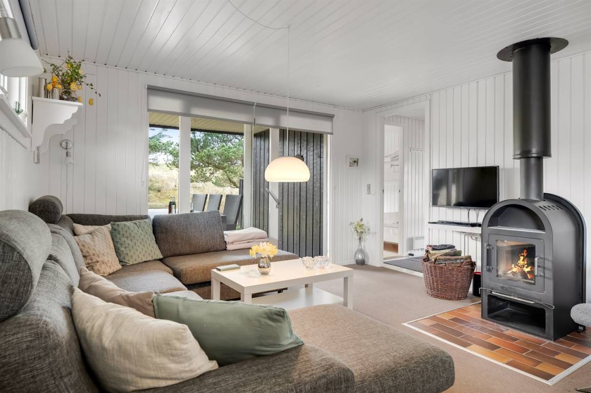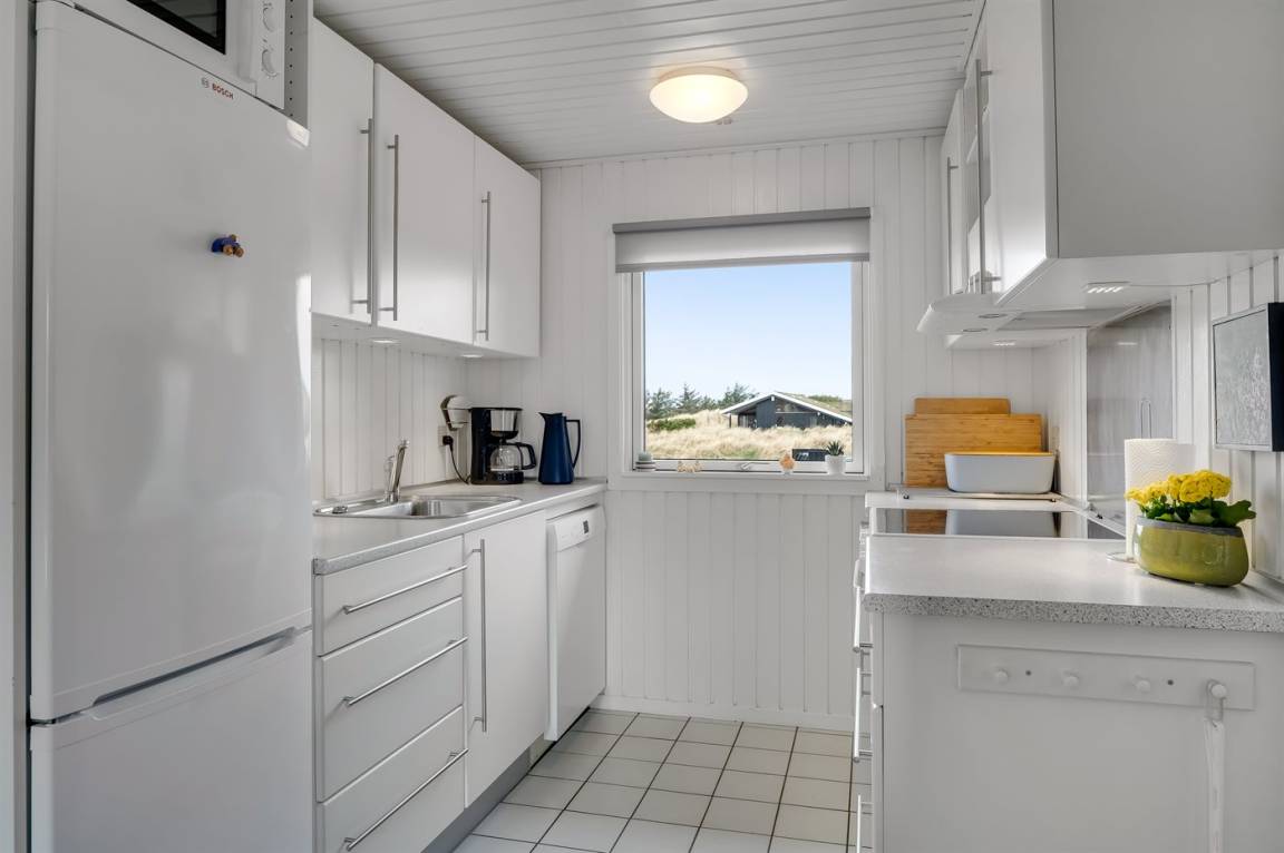 Dieses gemütliche und neu renovierte Ferienhaus liegt dicht an einem geschützten, hügeligen Gemeinschaftsgelände. Zum Haus gehören sowohl offene als auch überdachte Terrassen mit Gartenmöbeln. Innen gibt es Holzdecken und -wände sowie Teppiche. Badezimmer mit Fußbodenheizung und Dusche. Separate Sauna. Die Küche ist u. a. mit Tiefkühlgerät, Herd mit Ceran-Feld, Mikrowelle und Geschirrspüler ausgestattet. Das sehr gemütliche und persönlich eingerichtete Wohnzimmer enthält TV mit digitalem Satellitenanschluss, DVD-Spieler und Stereoanlage mit CD-Spieler und Kaminofen (Kostenloses Brennholz steht zur Verfügung). Von dem Wohnzimmer Zutritt zur überdachten Terrasse. Die Schlafplätze des Hauses verteilen sich auf 3 Zimmer; 2 Zimmer mit Doppelbett und 1 Zimmer mit Etagenbett. Ferner kostenlose ADSL-Internetverbindung (Computer ist mitzubringen), komb. Waschmaschine/Wäschetrockner und Kinderbett zur Verfügung. Ein gemütliches Ferienhaus dicht an einem der besten Badestrände Dänemarks.