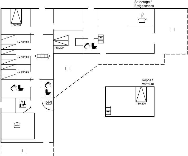 Dieses große Ferienhaus liegt auf einem teilweise abgeschirmten Grundstück mit Platz für Ballspiele und andere Aktivitäten im Freien – an der Hautpstraße, die an den schönen Strand der Nordsee führt. Übrigens: Es gibt 2 offene Obergeschosse mit je einem Schlafplatz auf einer Matratze, im Anschluss an die beiden Schlafzimmer, die mit Einzelbett eingerichtet sind. Ferner gibt es 2 Schlafplätze auf Matratzen in einem Vorraum im Obergeschoss.