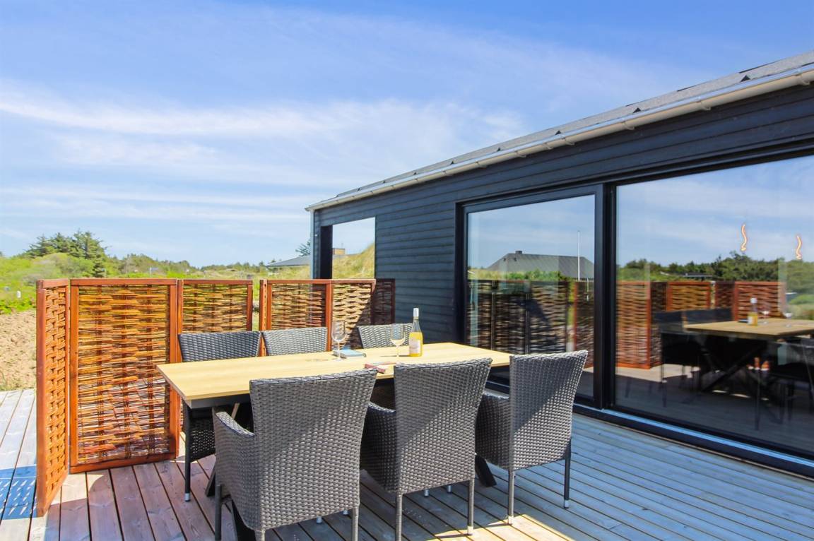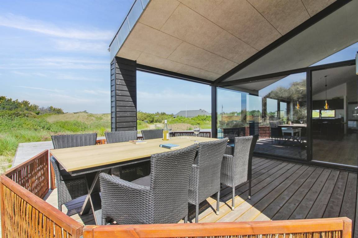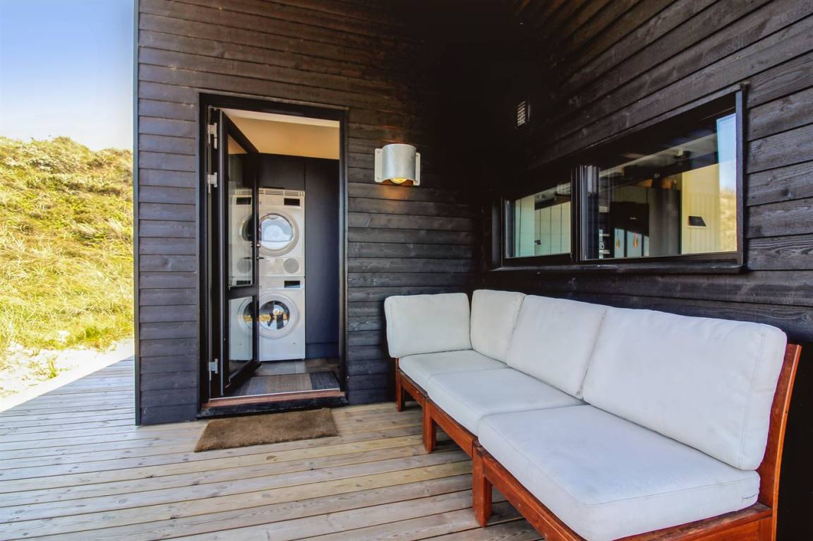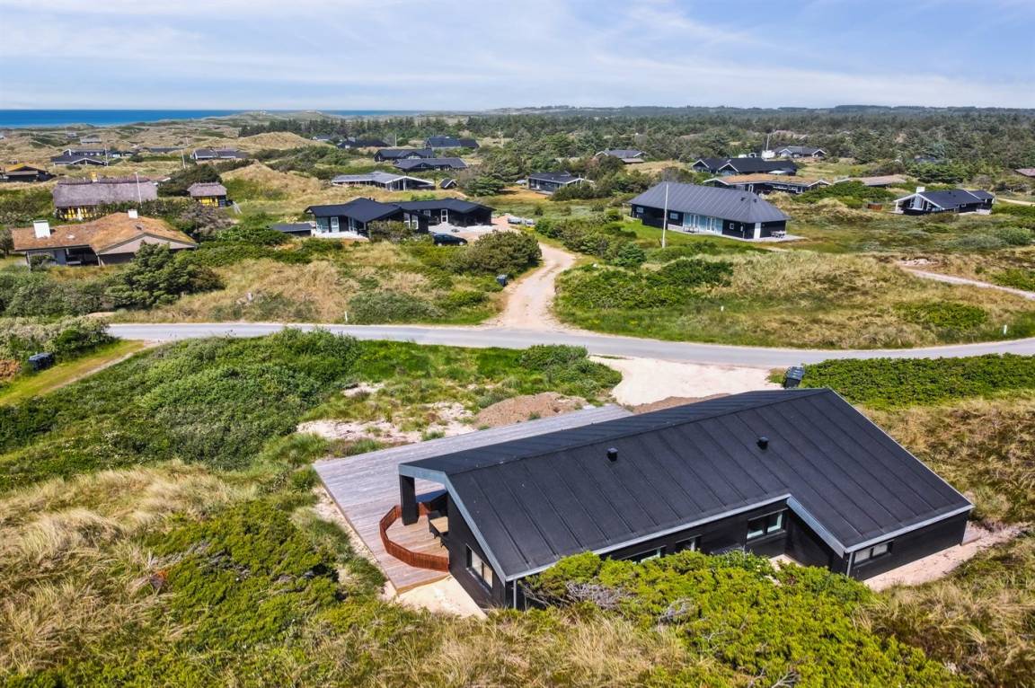 DraußenDie Ferienunterkunft liegt auf einem 2200 m² großen Dünengrundstück. Die Entfernung zum Meer beträgt 500 m. Die nächste Einkaufsmöglichkeit liegt 3000 m entfernt. In einem Abstand von 12000 m gibt es einen Golfplatz. Es steht ein 70 m² Terrassenareal zur Verfügung. Außerdem gibt es 20 m² überdachte Terrasse. Geräteraum. Es steht ein Grill zur Verfügung. Parkplatz auf dem Grundstück.