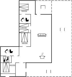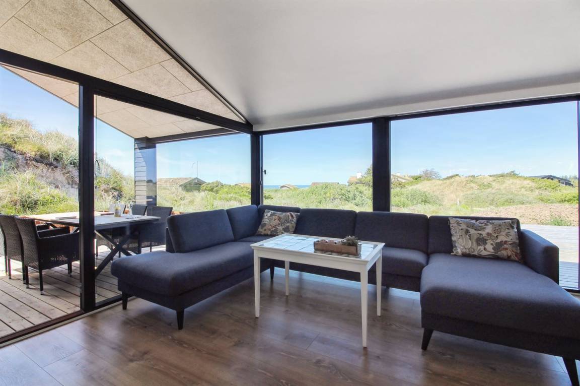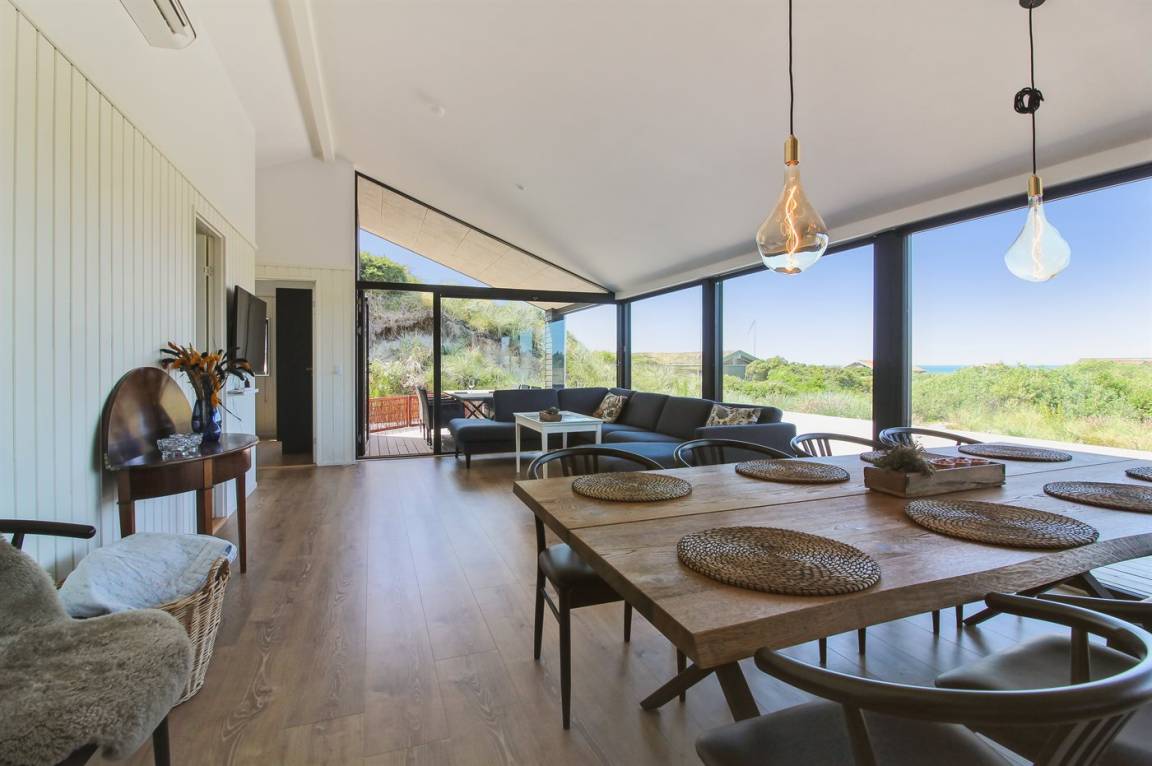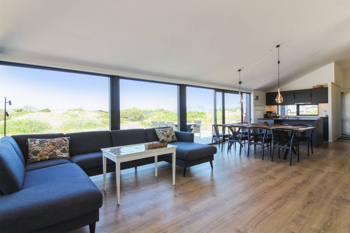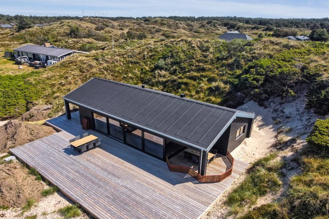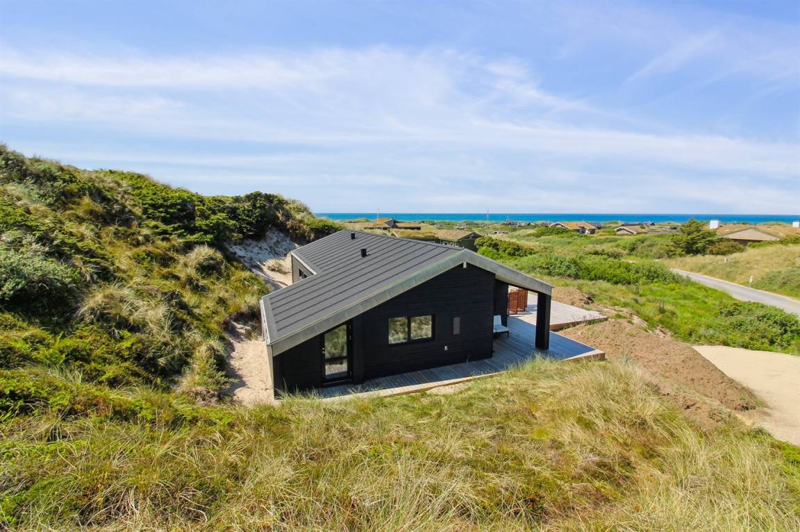 DraußenDie Ferienunterkunft liegt auf einem 2200 m² großen Dünengrundstück. Die Entfernung zum Meer beträgt 500 m. Die nächste Einkaufsmöglichkeit liegt 3000 m entfernt. In einem Abstand von 12000 m gibt es einen Golfplatz. Es steht ein 70 m² Terrassenareal zur Verfügung. Außerdem gibt es 20 m² überdachte Terrasse. Geräteraum. Es steht ein Grill zur Verfügung. Parkplatz auf dem Grundstück.