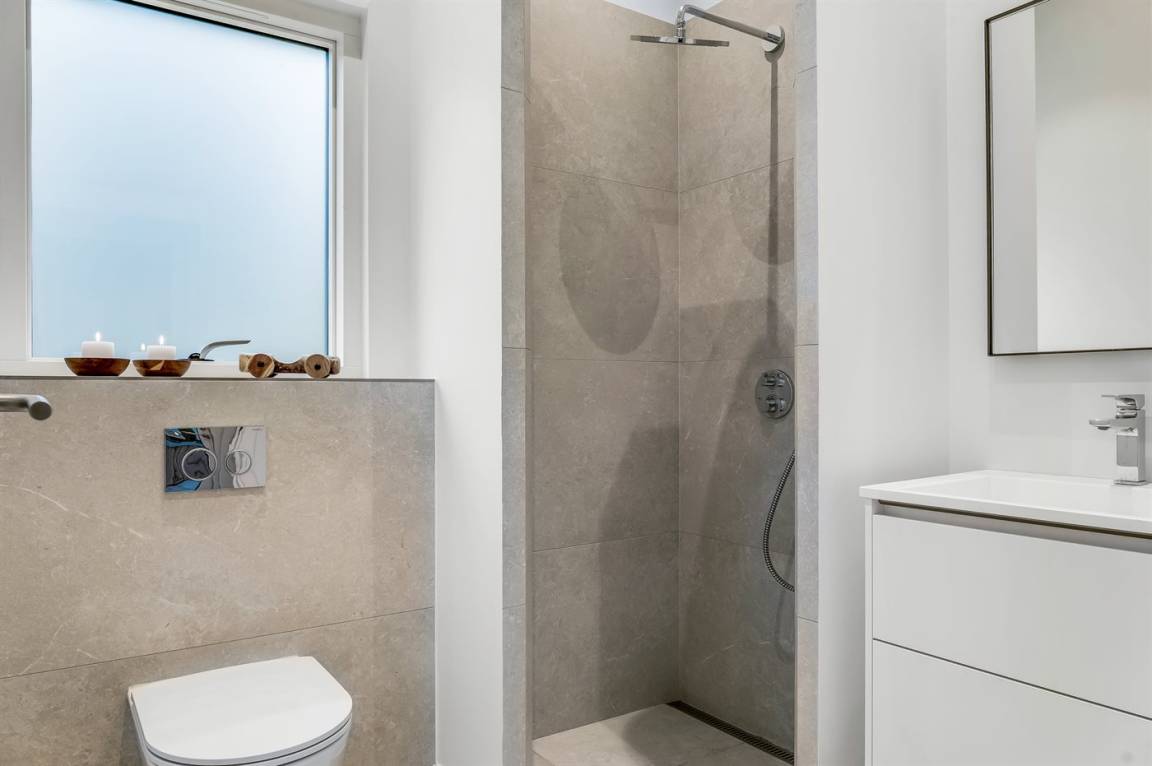 Das Ferienhaus besteht aus einem Haupthaus von 100 m² und einem Gästehaus von 50 m², die durch einen überdachten Bereich verbunden sind, sodass du dich bei Regen zwischen den Gebäuden bewegen kannst. Die Einrichtung ist ideal für bis zu acht Personen und perfekt für zwei Familien geeignet, da die vier Schlafzimmer und zwei Badezimmer gleichmäßig auf die beiden Gebäude verteilt sind. Überall spürt man die hohe Qualität und Liebe zum Detail – unter anderem im großen Badezimmer mit freistehender Badewanne und Doppelwaschbecken.