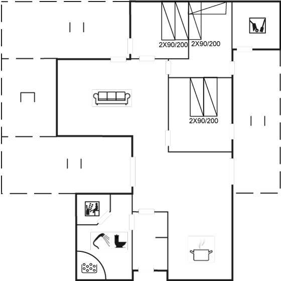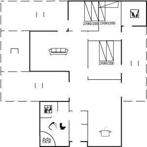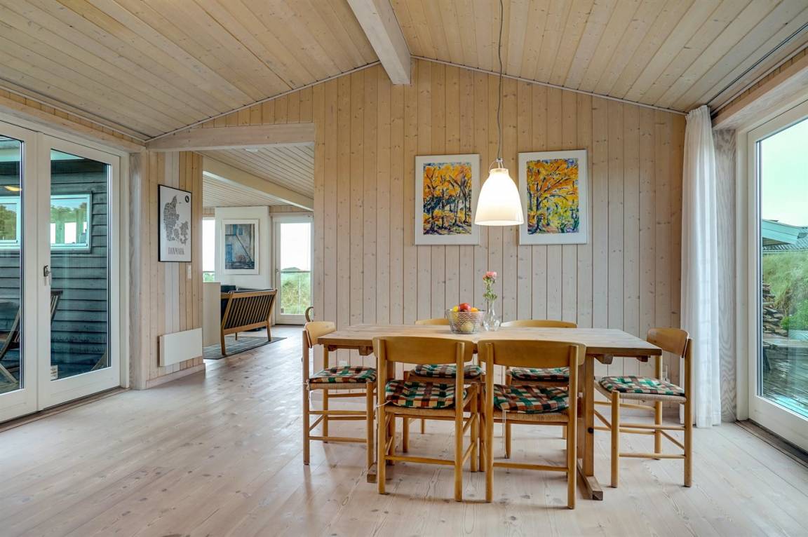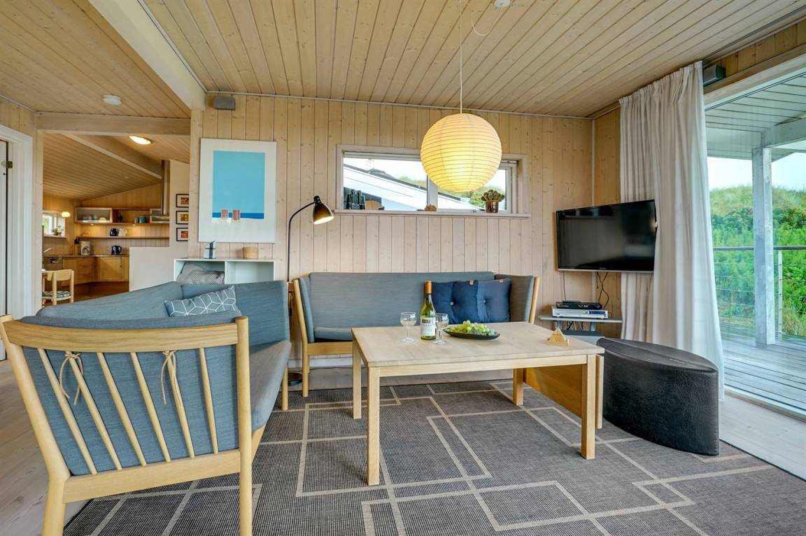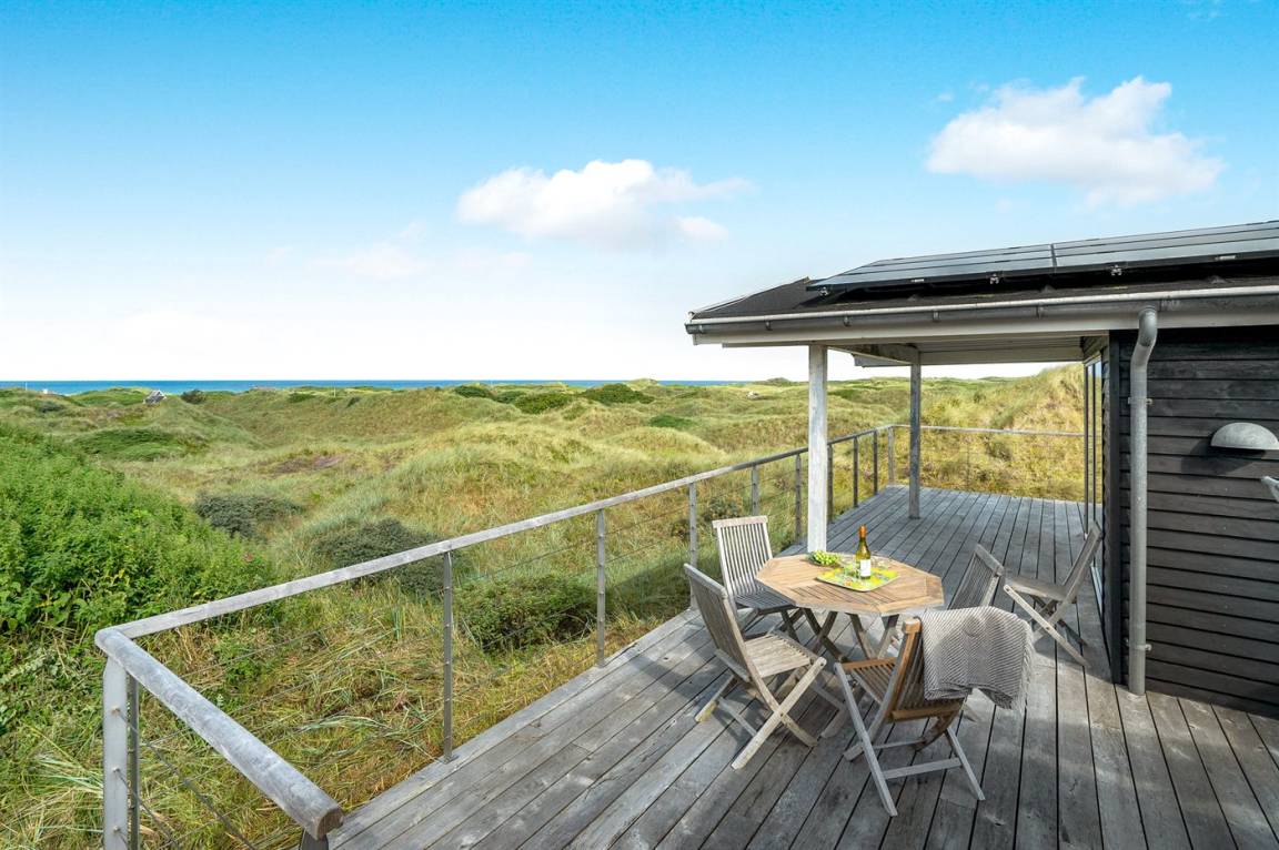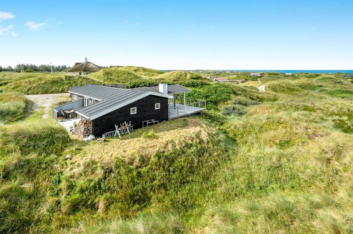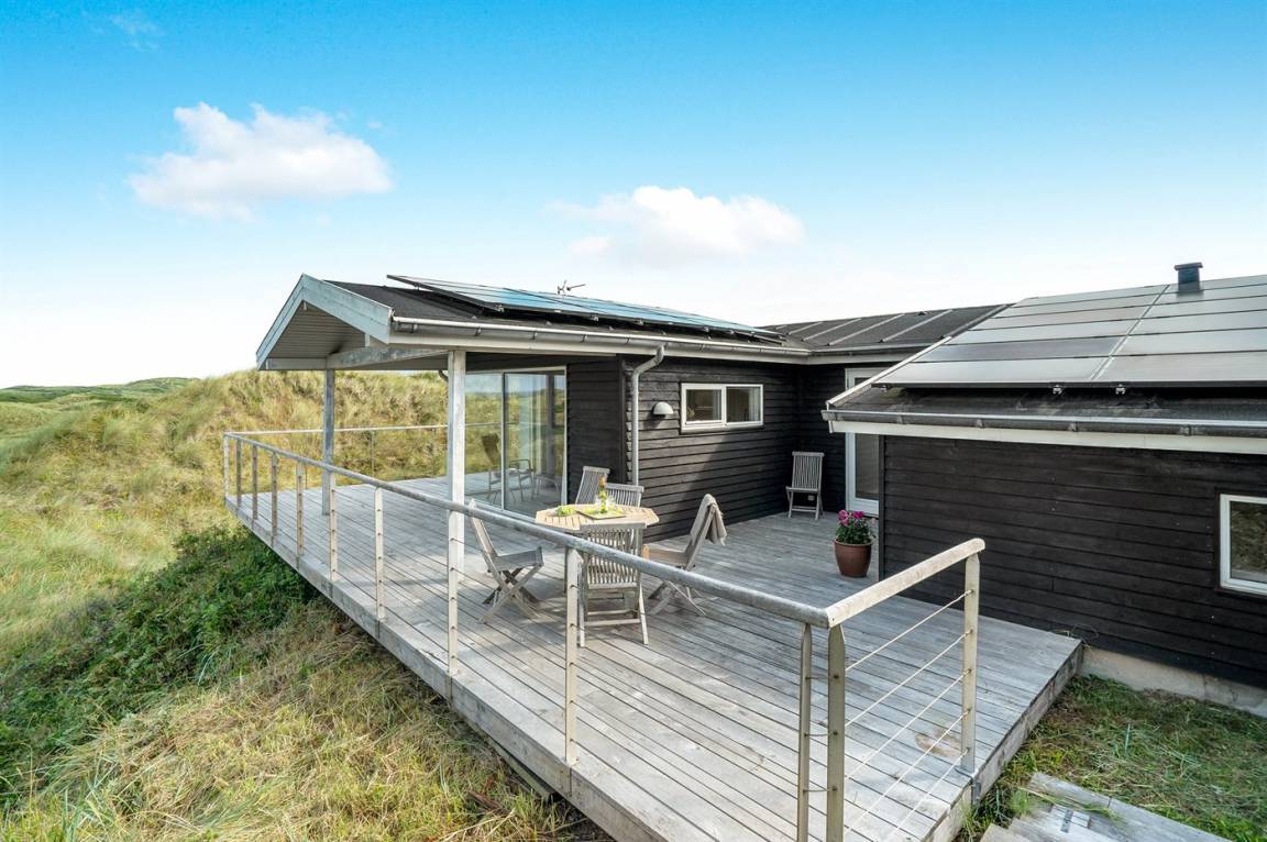 DraußenDie Ferienunterkunft liegt auf einem 1290 m² großen Dünengrundstück. Die Entfernung zum Meer beträgt 500 m. Die nächste Einkaufsmöglichkeit liegt 1500 m entfernt. Es steht ein 85 m² Terrassenareal zur Verfügung. Außerdem gibt es 15 m² überdachte Terrasse. Geräteraum. Sandkasten. Parkplatz auf dem Grundstück.