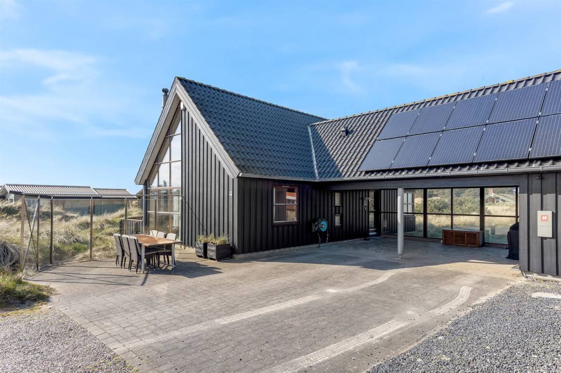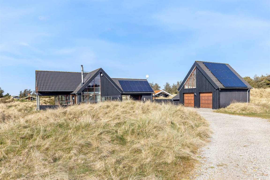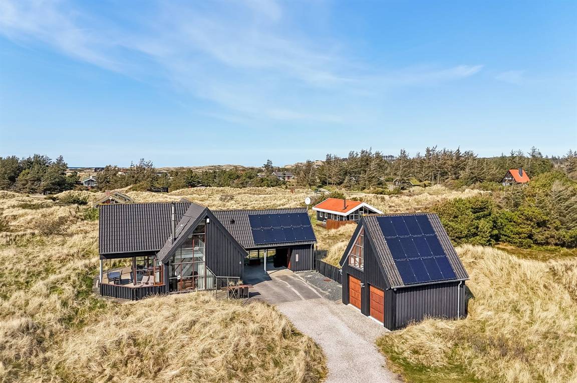 DraußenDie Ferienunterkunft liegt auf einem 2513 m² großen Dünengrundstück. Die Entfernung zum Meer beträgt 350 m. Die nächste Einkaufsmöglichkeit liegt 5000 m entfernt. In einem Abstand von 15000 m gibt es einen Golfplatz. Es steht ein 100 m² Terrassenareal zur Verfügung. Außerdem gibt es 10 m² überdachte Terrasse. Geräteraum. Es steht ein Grill zur Verfügung. Es steht ein Carport zur Verfügung. Parkplatz auf dem Grundstück.
