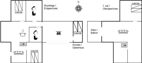 EinrichtungDas Ferienhaus eignet sich für 8 Personen sowie 1 Kleinkind bis zu 3 Jahren. Die Ferienunterkunft hat eine Wohnfläche von 154 m², ist 2-stöckig, und wurde 2004 gebaut. Es ist erlaubt 1 Haustier mitzubringen. Die Ferienunterkunft ist mit energiefreundlicher Luft-Luft- Wärmepumpe ausgestattet. Fußbodenheizung in allen Klinkerböden. Die Ferienunterkunft ist mit Waschmaschine ausgestattet. Wäschetrockner. Tiefkühlmöglichkeit mit 60 Liter Nutzinhalt. Es gibt außerdem einen Kaminofen. Für die jüngsten Feriengäste ist 1 Kinderhochstuhl vorhanden.