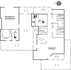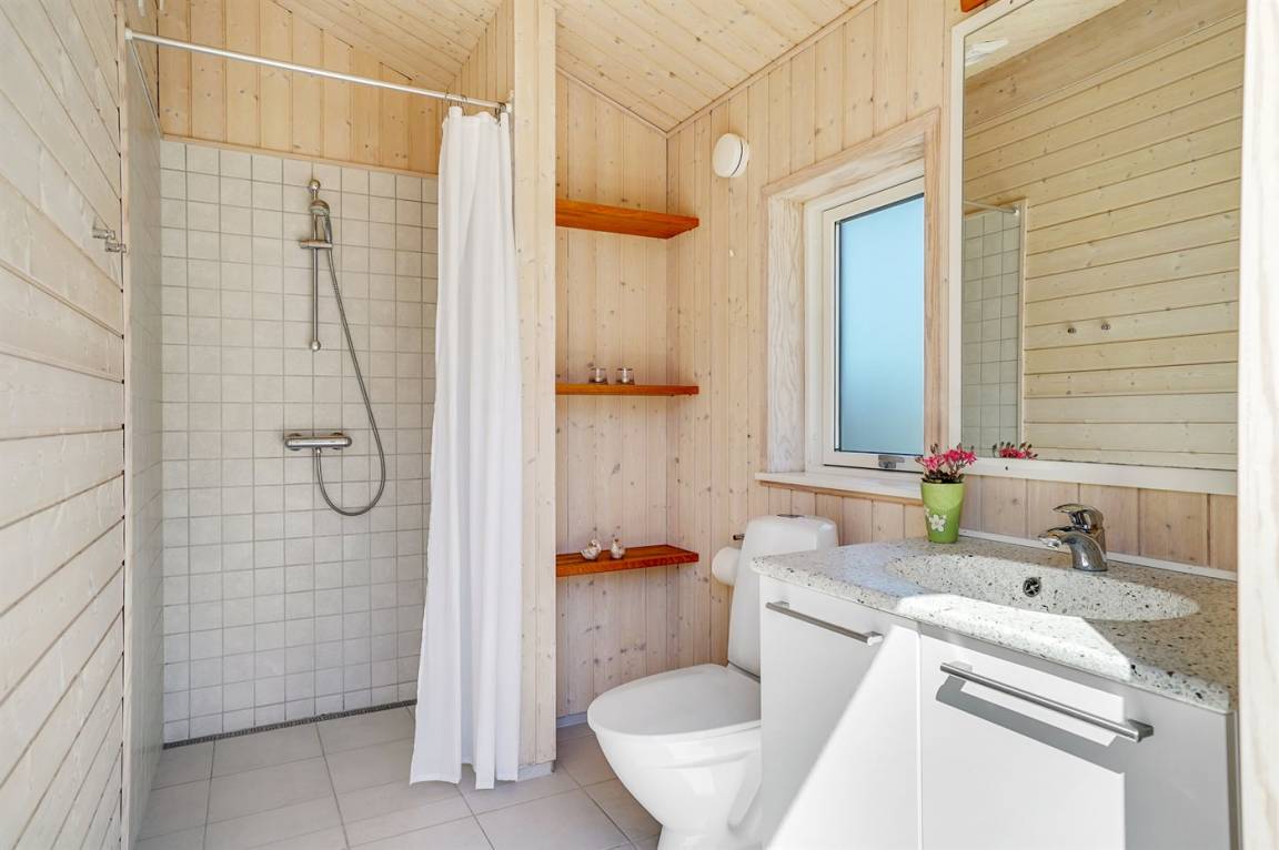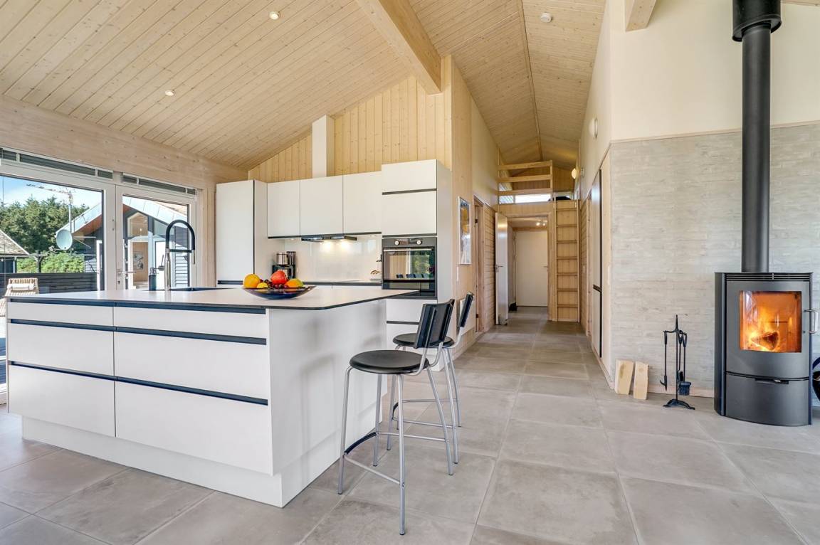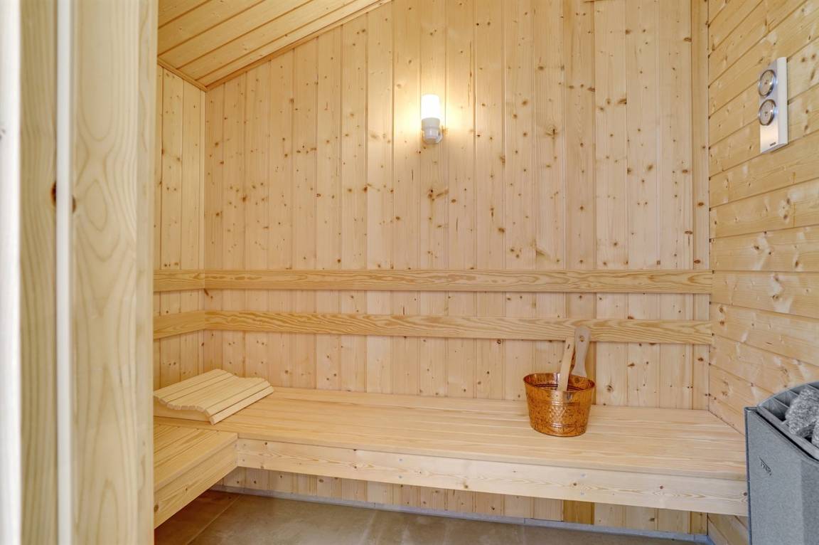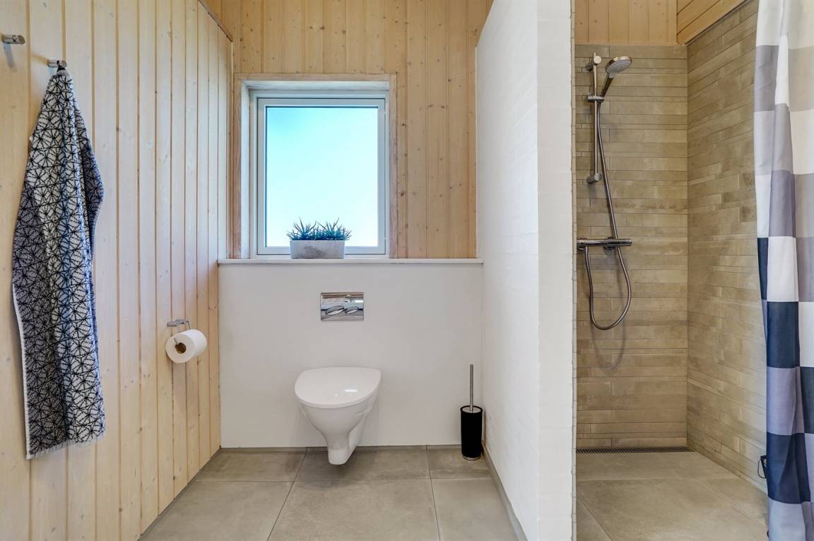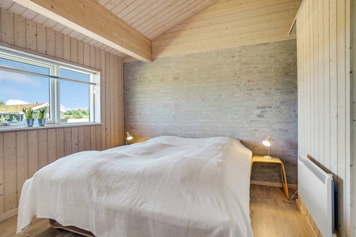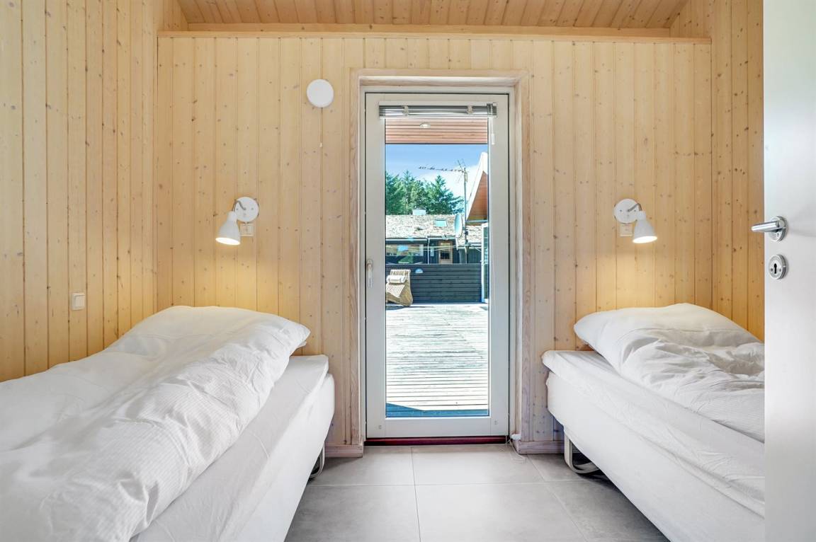 Großes, luxuriös ausgestattetes Ferienhaus aus Holz von 2009 mit Whirlpool und Sauna. Das Haus ist auf einem Naturgrundstück gebaut und von einem sehr großen und zum Teil überdachten Terrassenareal umgeben. Innen gibt es Klinkerböden, jedoch Holzböden in 2 Schlafzimmern. Geräumiges Badezimmer mit 2-Pers. Whirlpool, Sauna, Fußbodenheizung, Duschnische und Handtuchtrockner. Die herrliche Küche ist mit Geschirrspüler, Mikrowelle, Umluftofen, Tiefkühlgerät und Herd mit Ceran-Feld ausgestattet. Eine große Schiebetür vom Essplatz in der Küche und zur überdachten Terrasse macht es möglich, die Natur ins Haus zu lassen. Das luxuriös ausgestattete Wohnzimmer enthält Kaminofen, TV mit digitalem Satellitenanschluss und DVD-Spieler. Das Haus hat 2 Schlafzimmer mit Doppelbett und praktischem begehbarem Kleiderschrank sowie 1 Schlafzimmer mit 2 Einzelbetten. Darüber hinaus gibt es im Gästehaus 1 Schlafzimmer mit 2 Einzelbetten, TV und Playstation1 sowie Badezimmer mit Duschnische. Neben dem Gästehaus finden Sie einen Aktivitätsraum, der mit komb. Tischfußball/Tischtennis/Airhockey, Trimmrad, Rudermaschine und Musikanlage ausgestattet ist. Zur Ausstattung des Hauses gehören auch Kinderbett, Kinderhochstuhl, Waschmaschine und Wäschetrockner. Ein schönes Ferienhaus dicht an der Nordsee, am Vergnügungspark Fårup Sommerland und Waldgebiet gelegen.