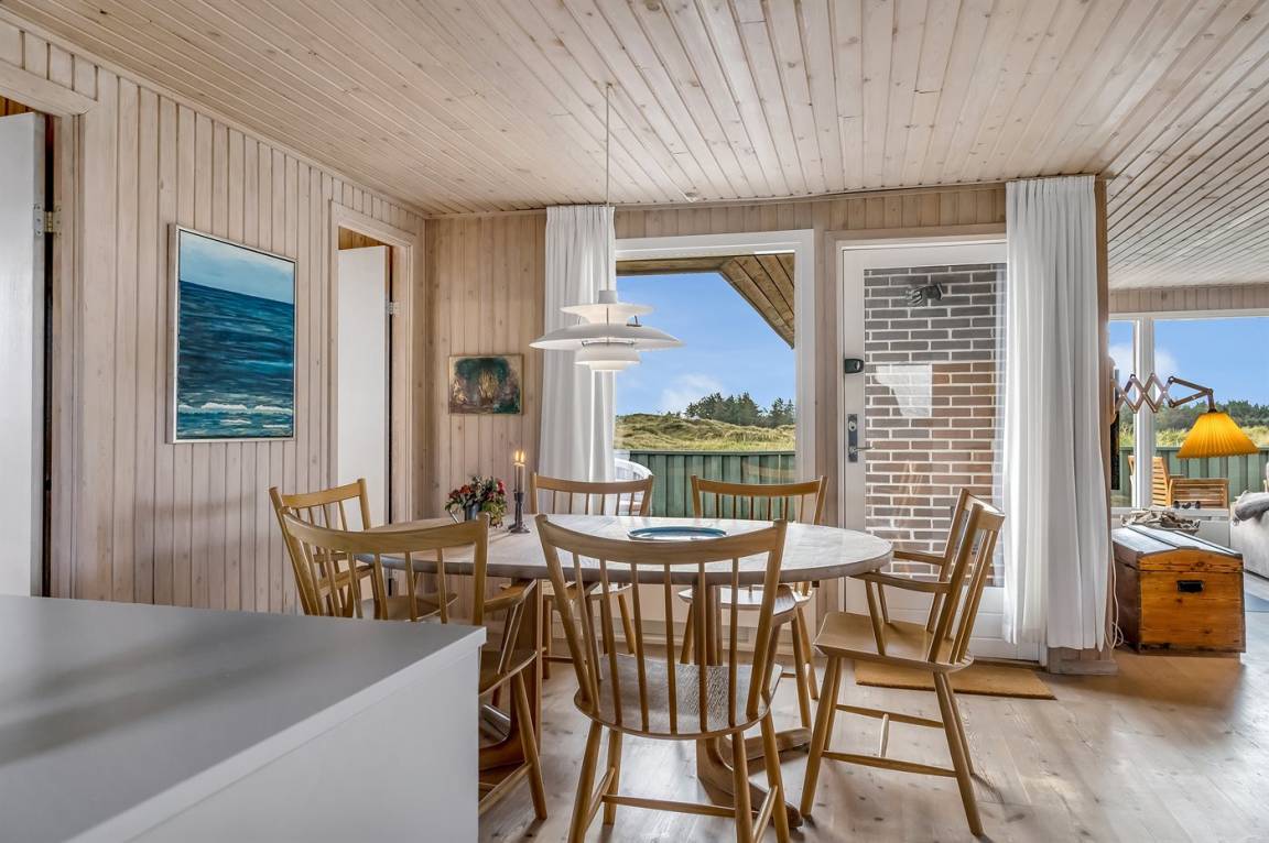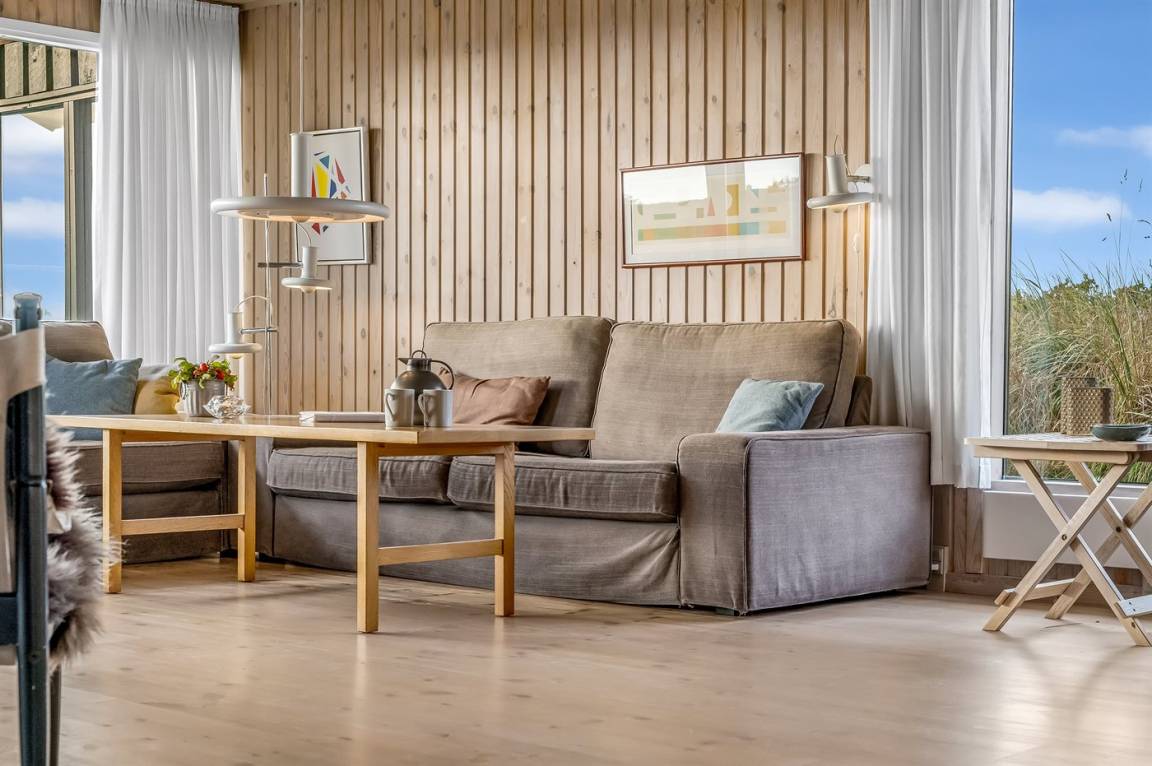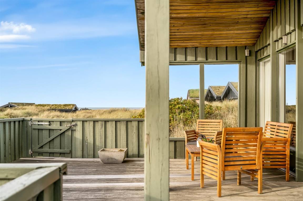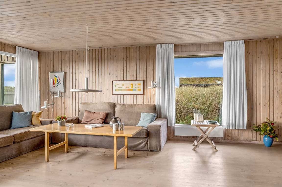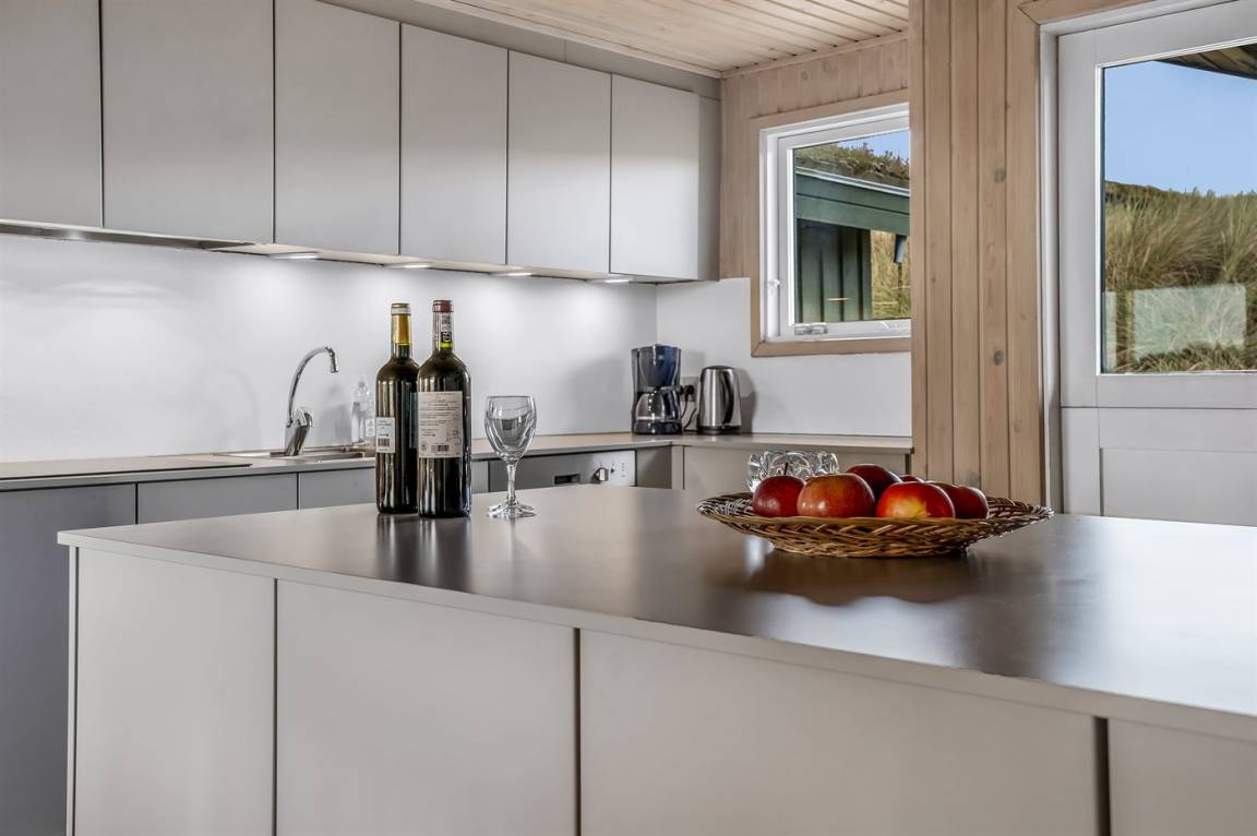 DraußenDie Ferienunterkunft liegt auf einem 1660 m² großen Dünengrundstück. Die Entfernung zum Meer beträgt 480 m. Die nächste Einkaufsmöglichkeit liegt 4000 m entfernt. Es steht ein 100 m² Terrassenareal zur Verfügung. Außerdem gibt es 15 m² überdachte Terrasse. Geräteraum.An Sommerabenden sorgt der Außenkamin für eine gemütliche Atmosphäre. Es ist ein Ladestecker für Elektroautos installiert. Parkplatz auf dem Grundstück.