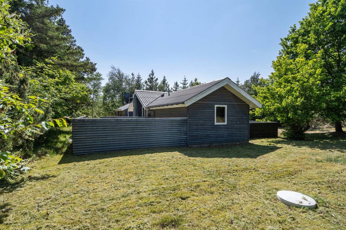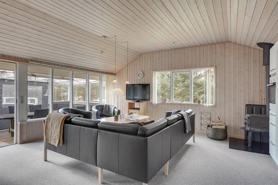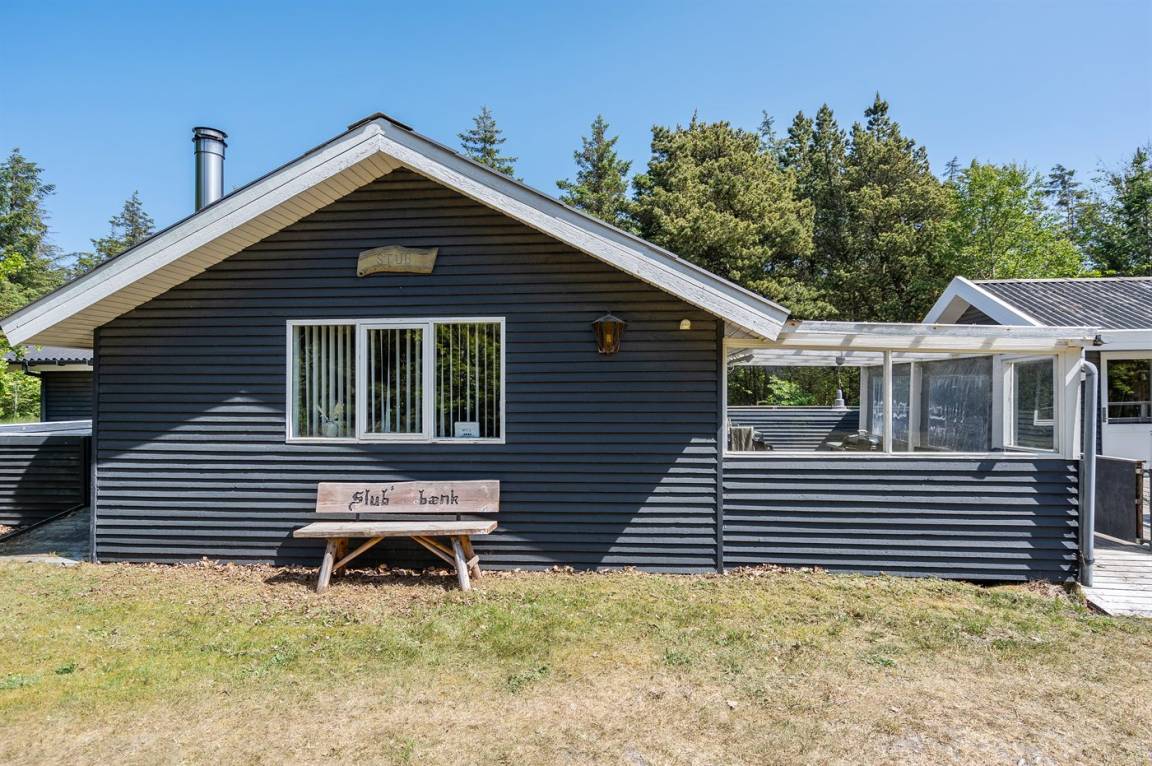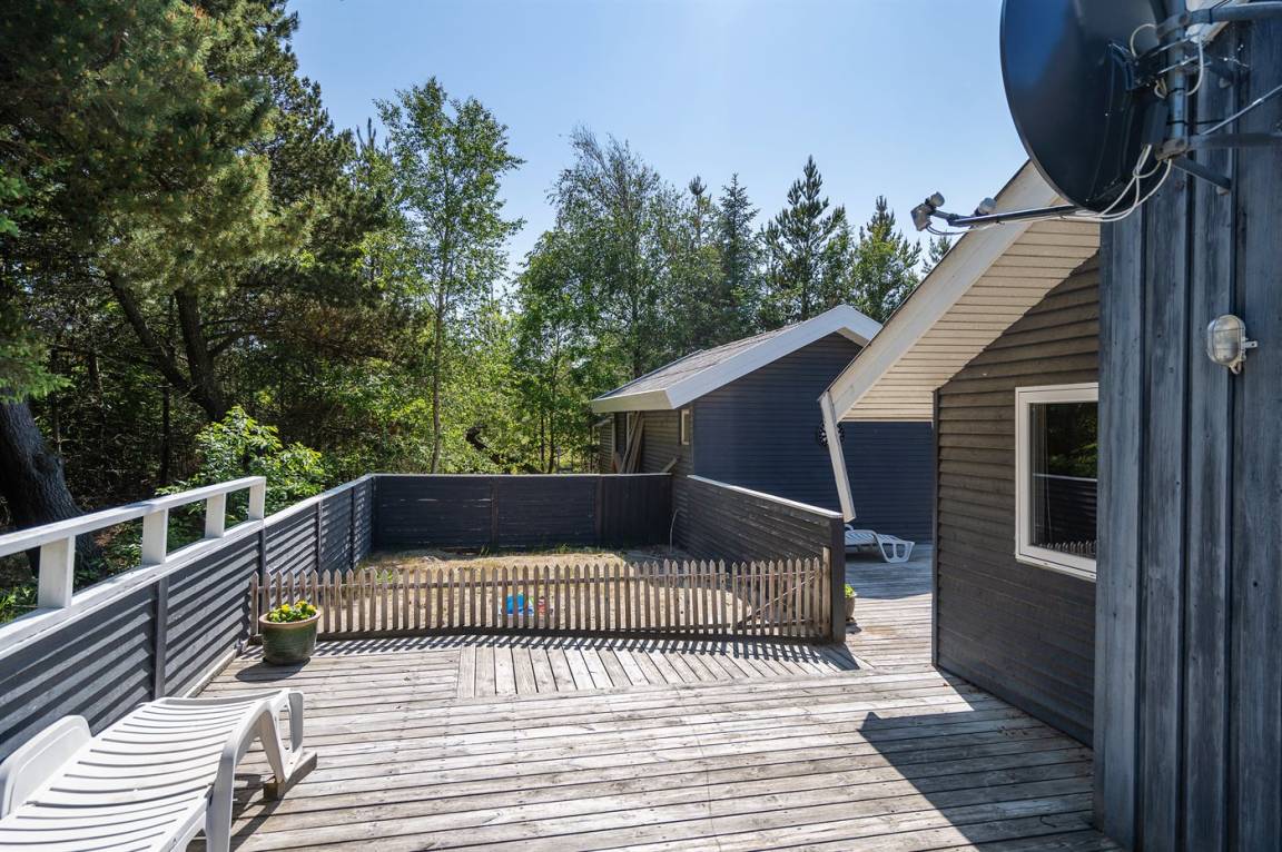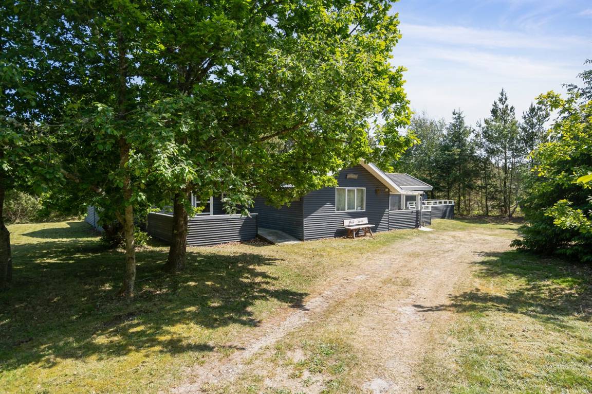 Ein schönes Ferienhaus mit einer großen und teilweise überdachten Terrassenfläche – nur 700 m vom Badetrand bei Saltum entfernt.