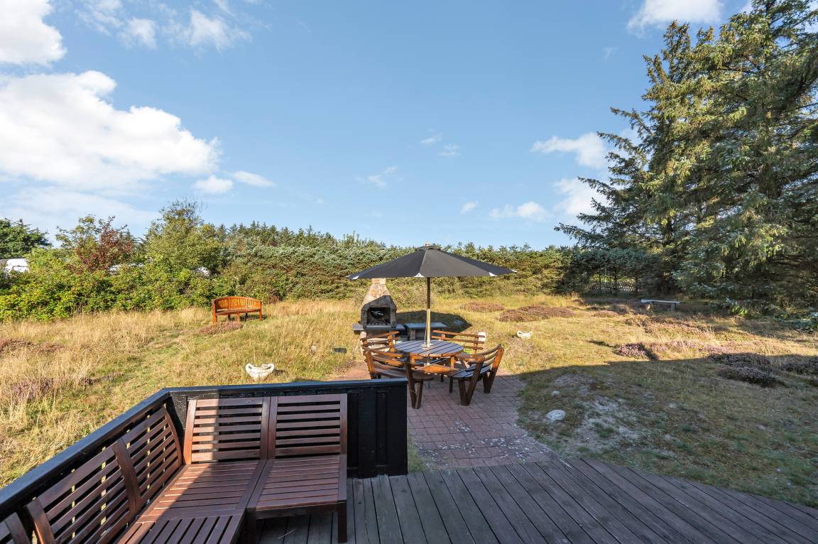 Ein schönes Ferienhaus auf einem sehr großen Grundstück am Ende einer Sackgasse, unweit vom Meer und einem schönen Badestrand gelegen. Fårup Sommerland sowie Einkaufsmöglichkeiten sind in wenigen Autominuten zu erreichen.