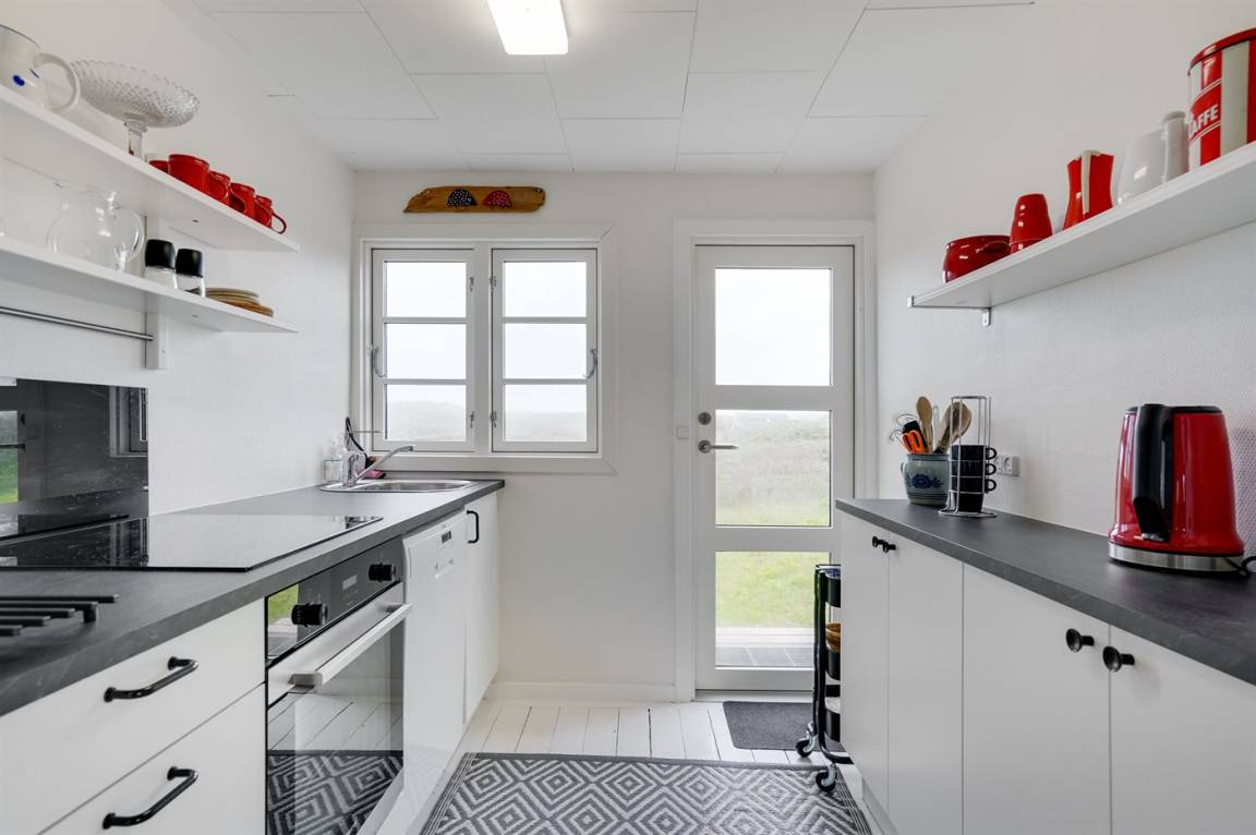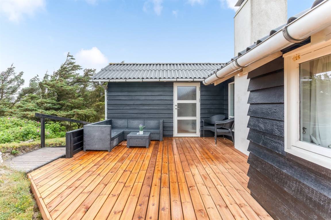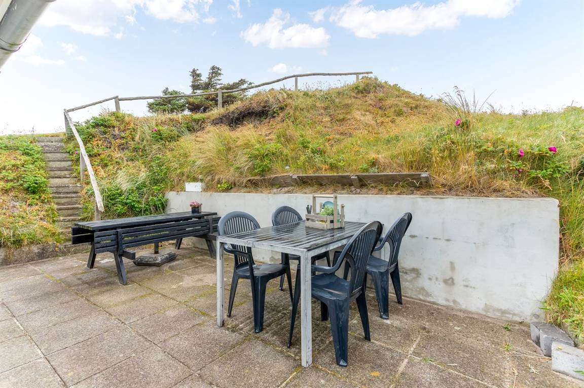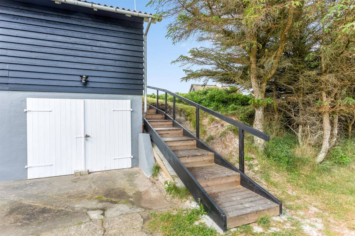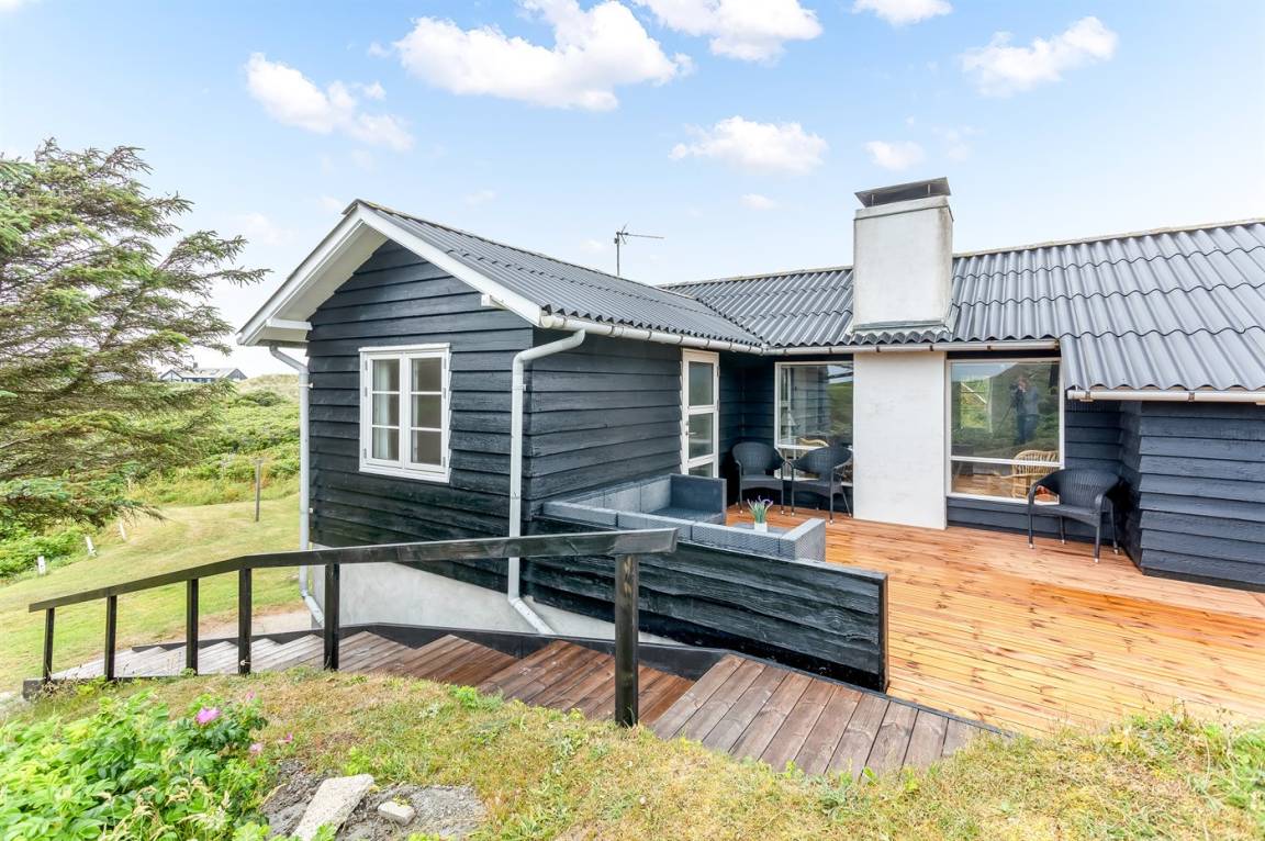 Dieses besonders idyllische und klassische Ferienhaus laufend in dem ursprünglichen Stil renoviert, liegt auf einem besonders großen und schönen, hügeligen und mit Hagebutten bewachsenen Natur-/Dünengrundstück in der 1. Dünenreihe, nur 140 m vom Wasser entfernt. Das Haus hat eigenes Grundstück zum Strand, der in wenigen Minuten zu Fuß auf einen öffentlichen Pfad erreicht werden kann. Vom höchsten Punkt des Grundstücks unmittelbar hinter dem Haus gibt es eine hervorragende Aussicht über das hübsche Gebiet, die Dünen und die Nordsee.