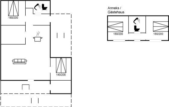 SchlafverhältnisseDie Schlafplätze verteilen sich auf 3 Schlafräume. 6 Schlafplätze in Doppelbetten. 2 von diesen Schlafplätzen befinden sich im Gästehaus.