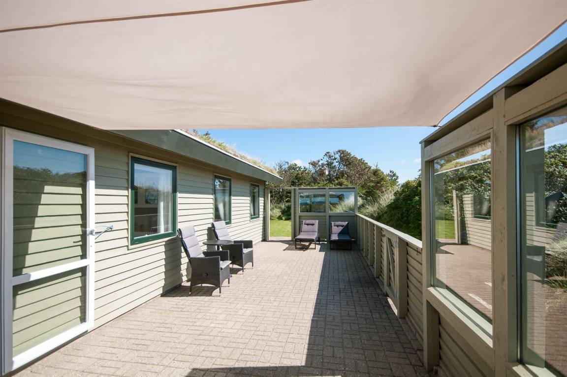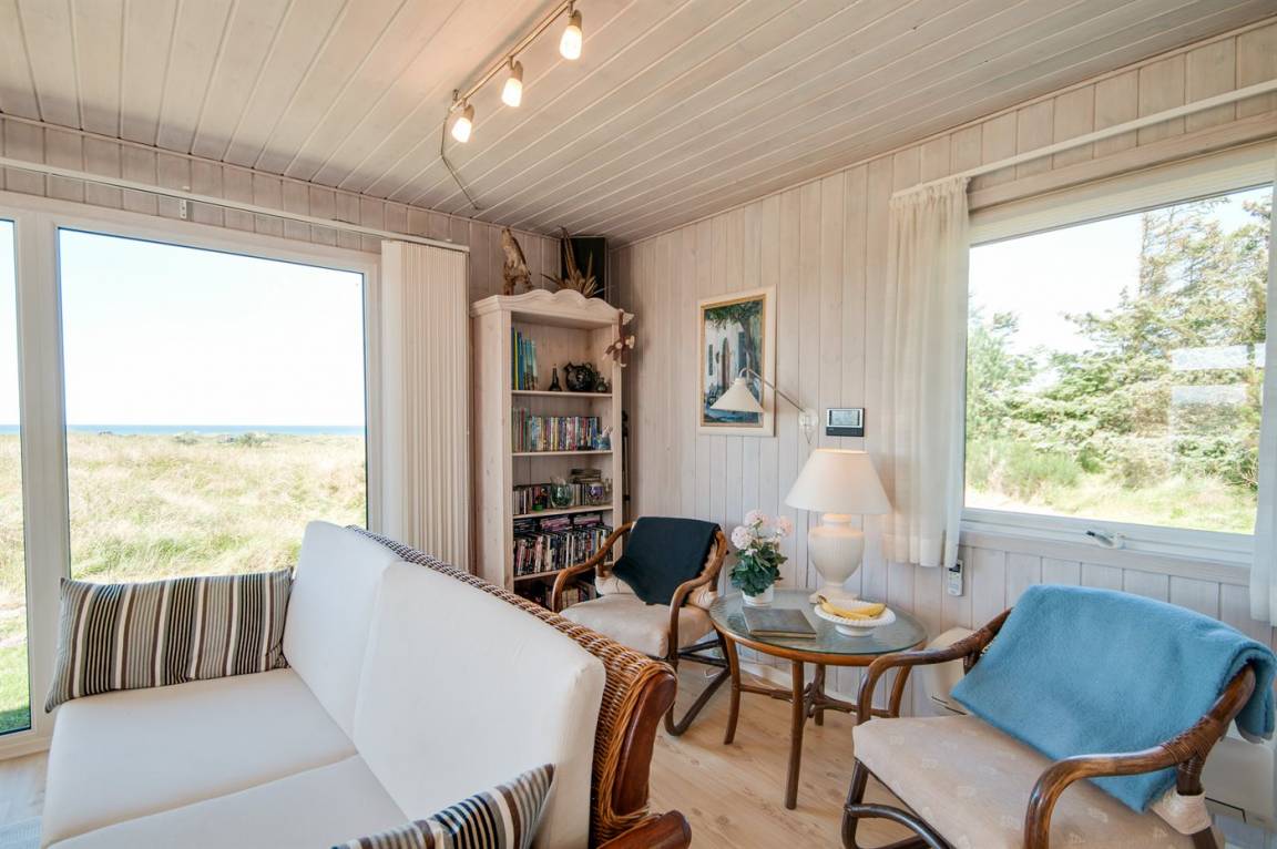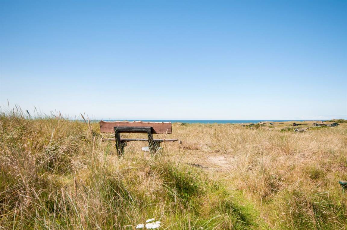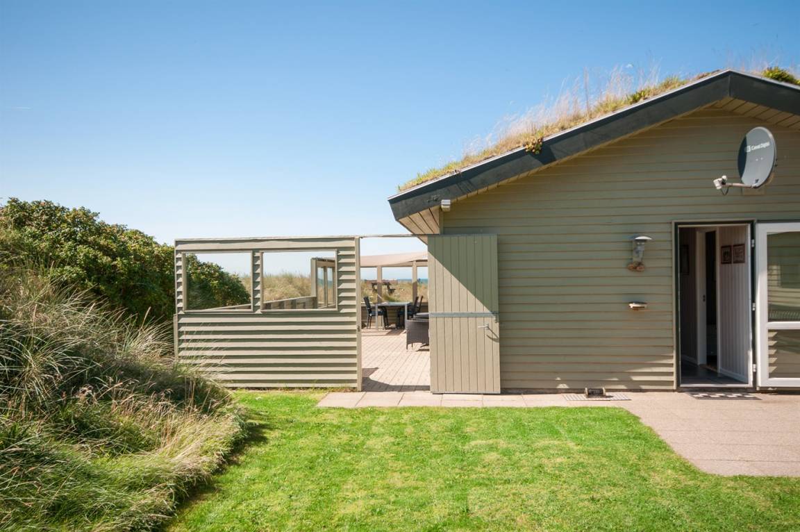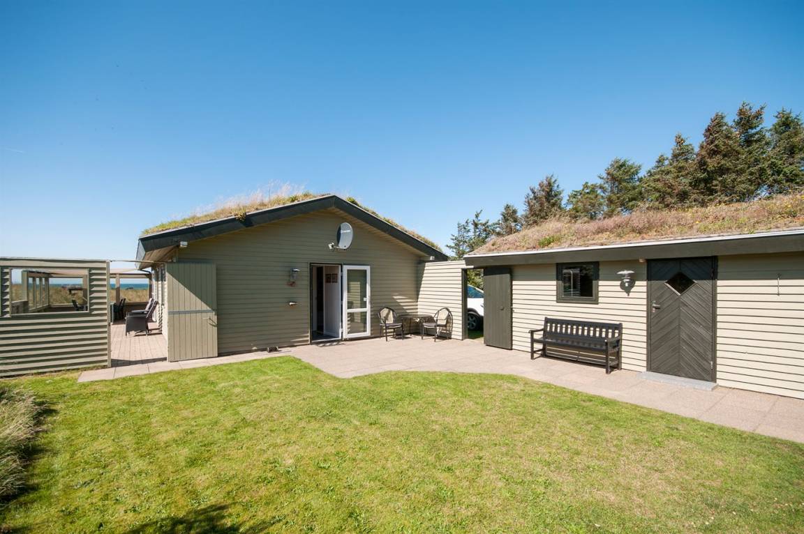 Auf einem hochgelegenen und ungestörten Dünengrundstück am Ende einer Sackgasse in einem ruhigen Gebiet finden Sie dieses Ferienhaus, die sowohl vom Wohnzimmer als auch vom Grundstück gibt es eine großartige Aussicht über das Gebiet und die Nordsee. Neues Badezimmer (2009) mit Duschnische. Im Wohnzimmer gibt es Kaminofen mit Kindersicherung. Zusätzlicher Aufenthaltsraum/Spielraum im Nebengebäude - hier finden Sie u. a. einen großen Kugelgrill u. a .m. sowie ein Depotraum mit einem zusätzlichen Tiefkühlgerät (80 l). Es steht außerdem ein Sonnensegel zur Verfügung. Ein Ferienhaus mit einer phantastischen Lage. Dicht am Naturgebiet "Lille Norge". Pfad direkt zum Strand.