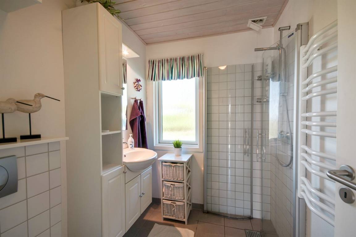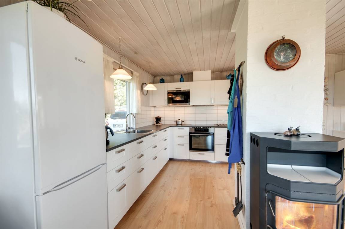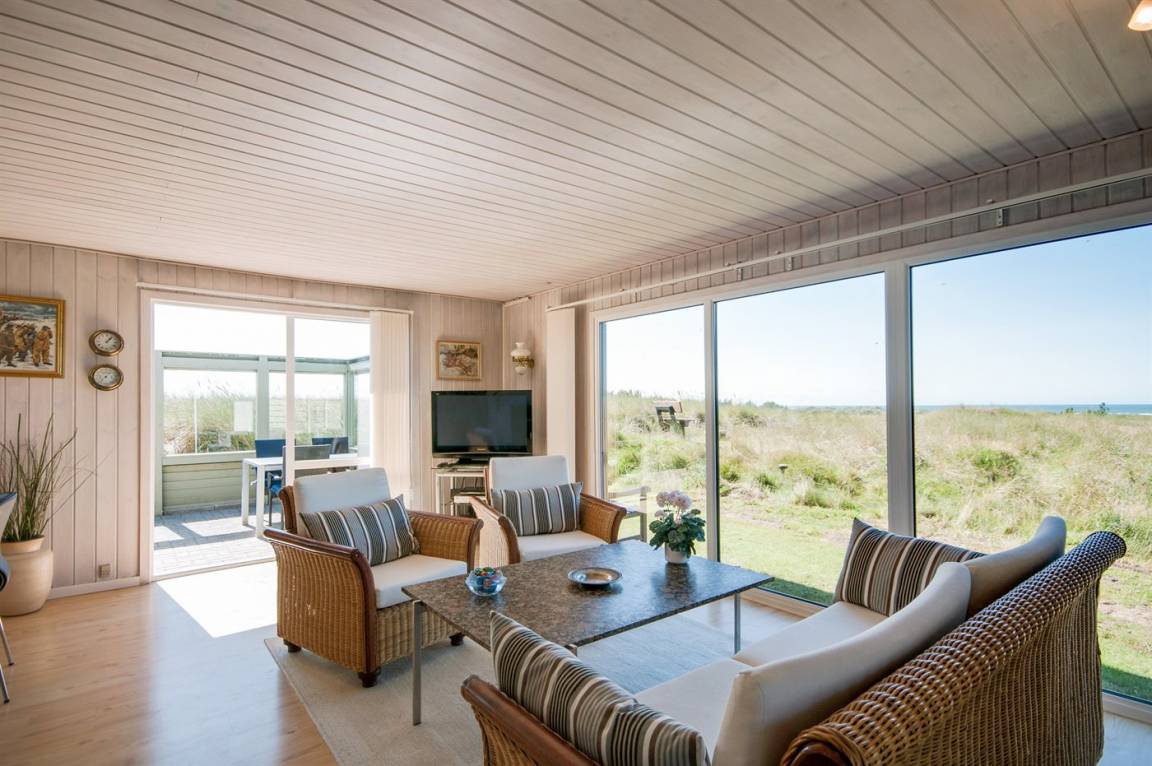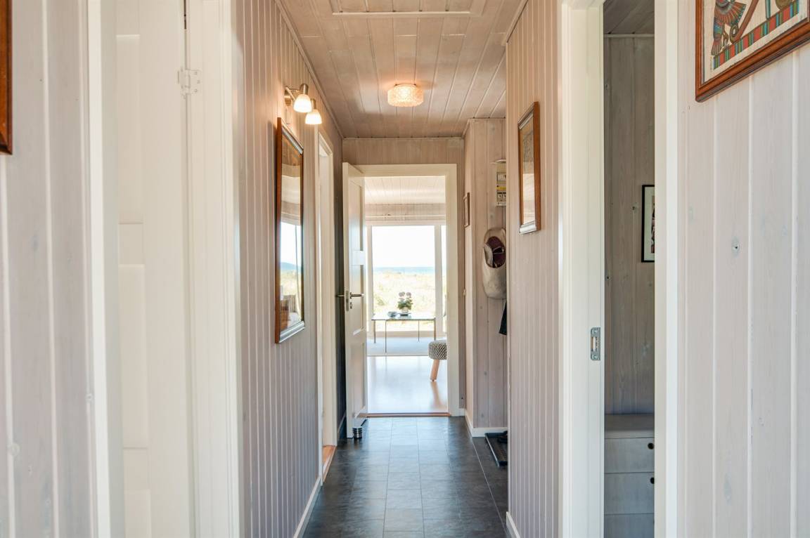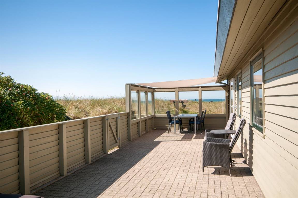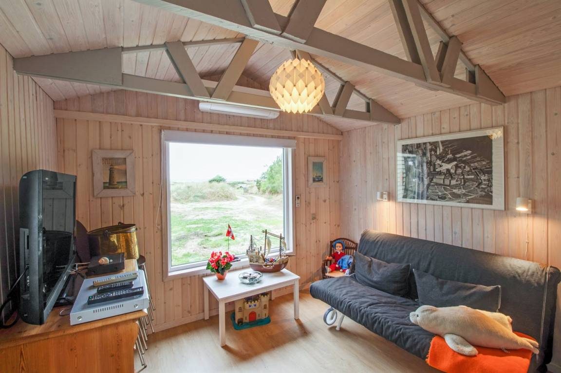 Auf einem hochgelegenen und ungestörten Dünengrundstück am Ende einer Sackgasse in einem ruhigen Gebiet finden Sie dieses Ferienhaus, die sowohl vom Wohnzimmer als auch vom Grundstück gibt es eine großartige Aussicht über das Gebiet und die Nordsee. Neues Badezimmer (2009) mit Duschnische. Im Wohnzimmer gibt es Kaminofen mit Kindersicherung. Zusätzlicher Aufenthaltsraum/Spielraum im Nebengebäude - hier finden Sie u. a. einen großen Kugelgrill u. a .m. sowie ein Depotraum mit einem zusätzlichen Tiefkühlgerät (80 l). Es steht außerdem ein Sonnensegel zur Verfügung. Ein Ferienhaus mit einer phantastischen Lage. Dicht am Naturgebiet "Lille Norge". Pfad direkt zum Strand.