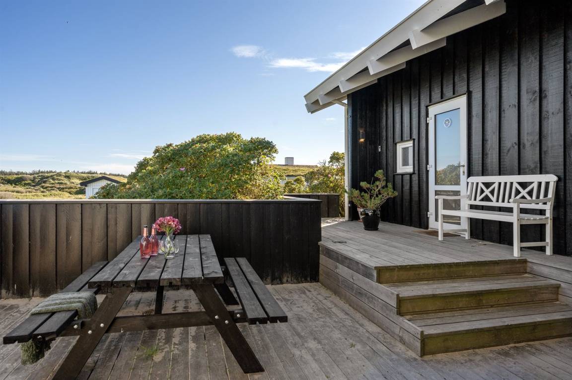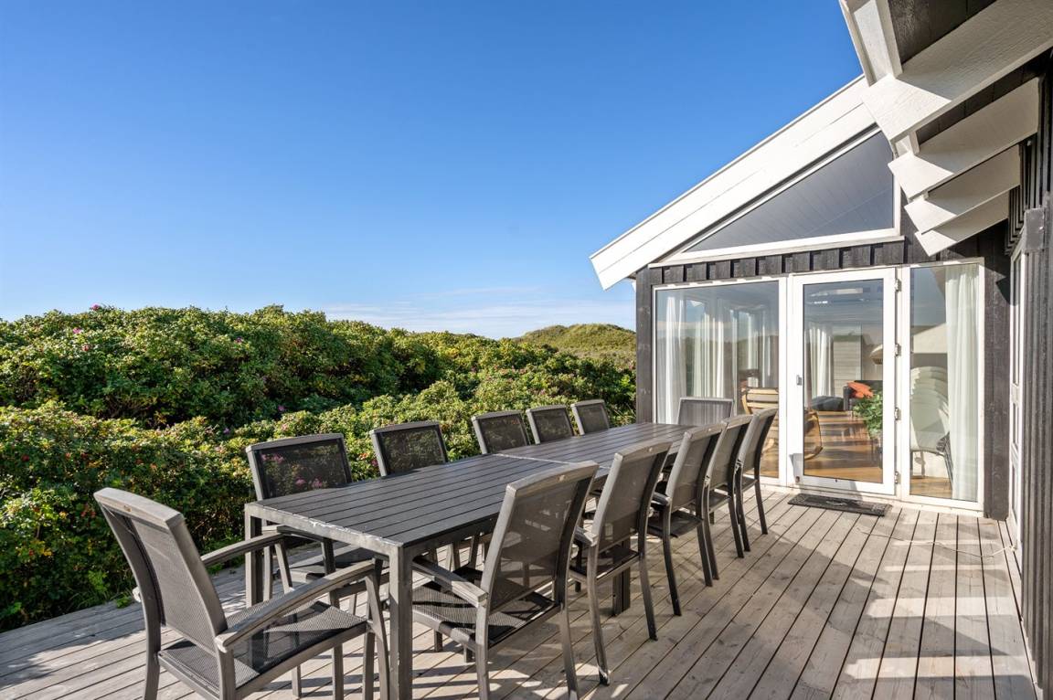 DraußenDie Ferienunterkunft liegt auf einem 7100 m² großen Dünengrundstück. Die Entfernung zum Meer beträgt 50 m. Die nächste Einkaufsmöglichkeit liegt 2000 m entfernt. Es steht ein 80 m² Terrassenareal zur Verfügung. Parkplatz auf dem Grundstück.