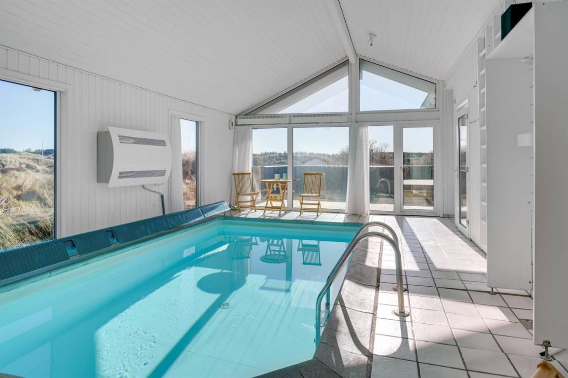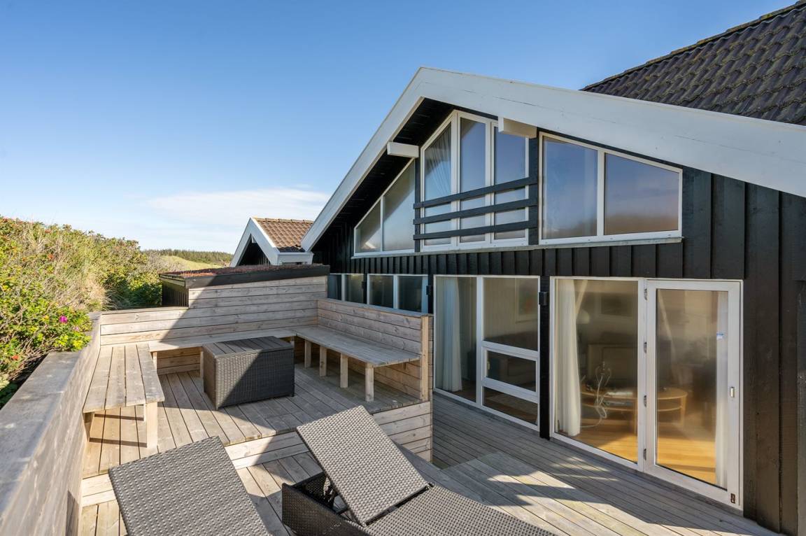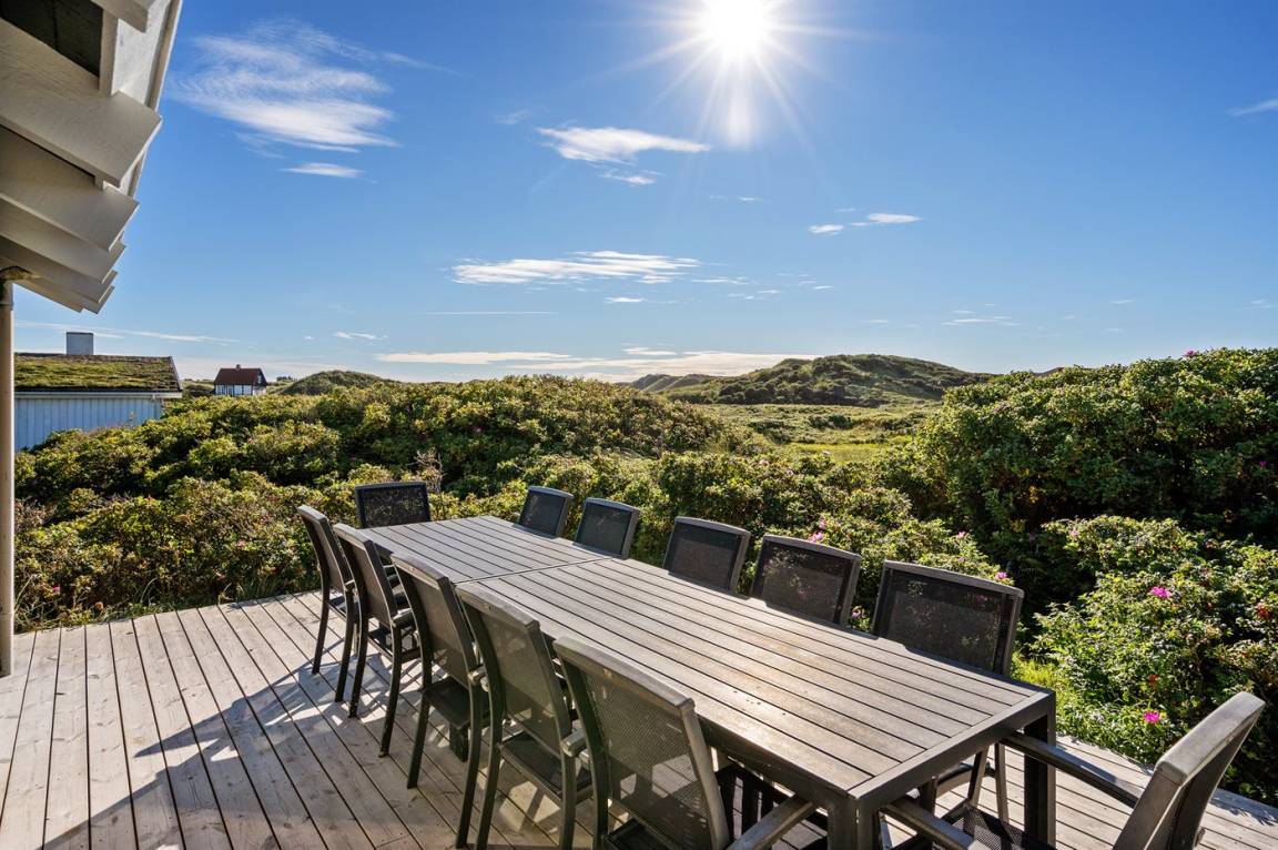Auf einem großen Dünengrundstück, das bis an den Strand angrenzt, finden Sie dieses schöne und geräumige Ferienhaus. Vom Obergeschoss des Hauses haben Sie Panoramaaussicht über die Nordsee und die Dünen. Vom geräumigen Wohnzimmer mit großer Fensterfront gibt es Zutritt zu den großen Holzterrassen, die das Haus in Richtung Westen umgeben - von einer erhöhten Terrasse gibt es Blick zum Wasser. Schöne Swimmingpool-Abteilung, in versetzter Ebene gelegen sowie Trimmraum mit Geräten vorhanden.