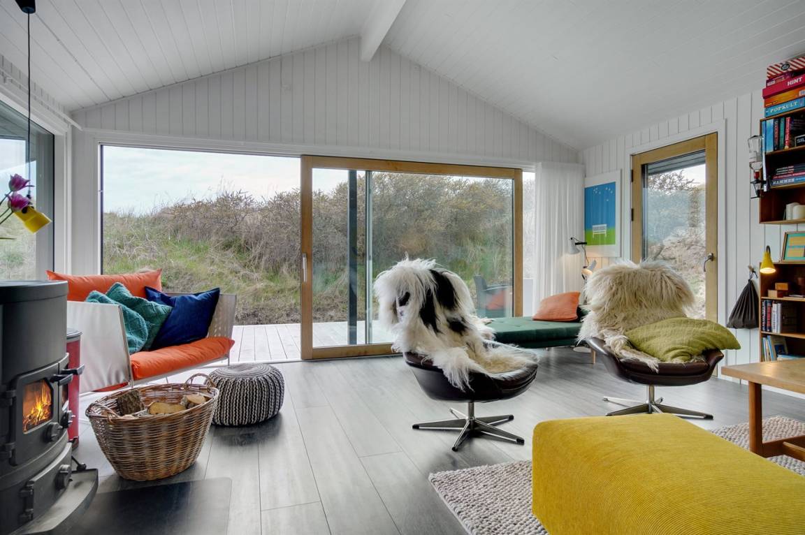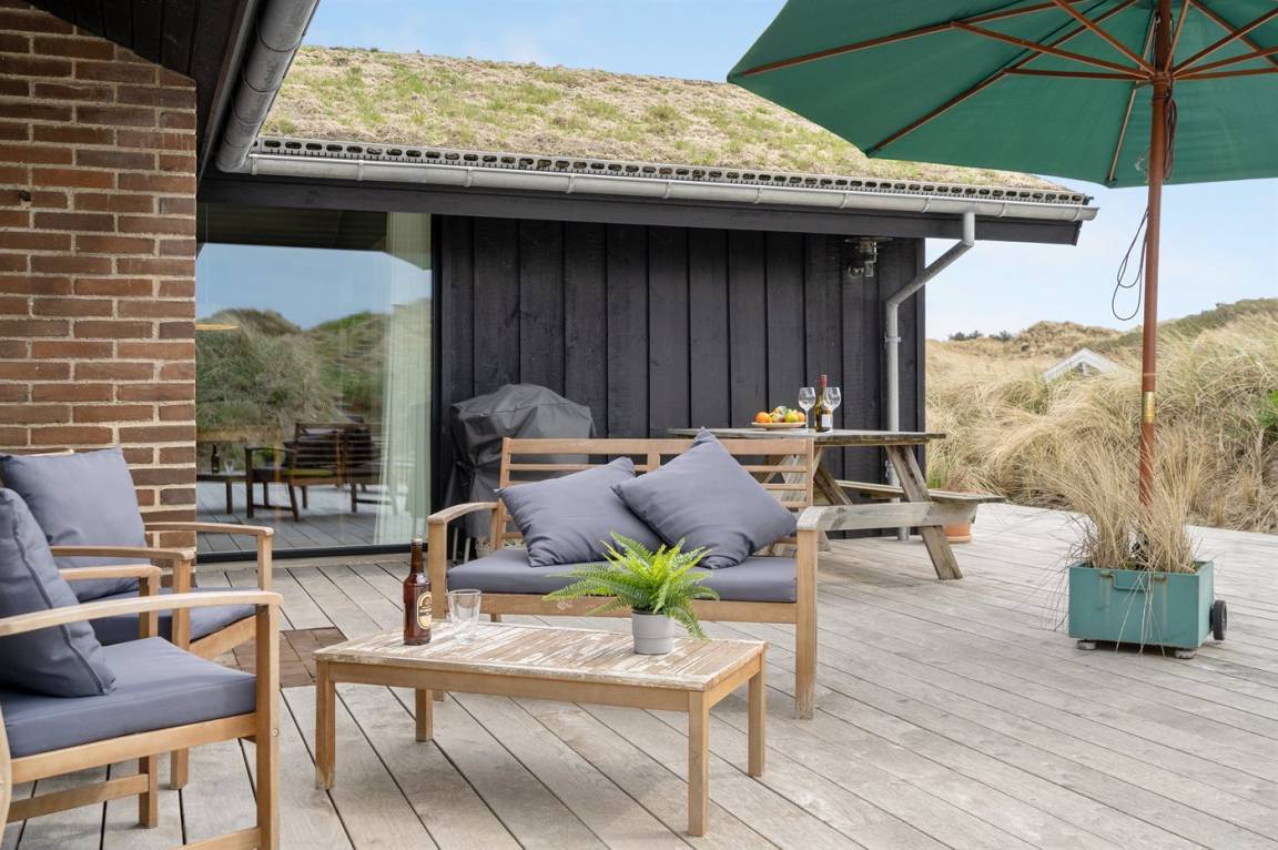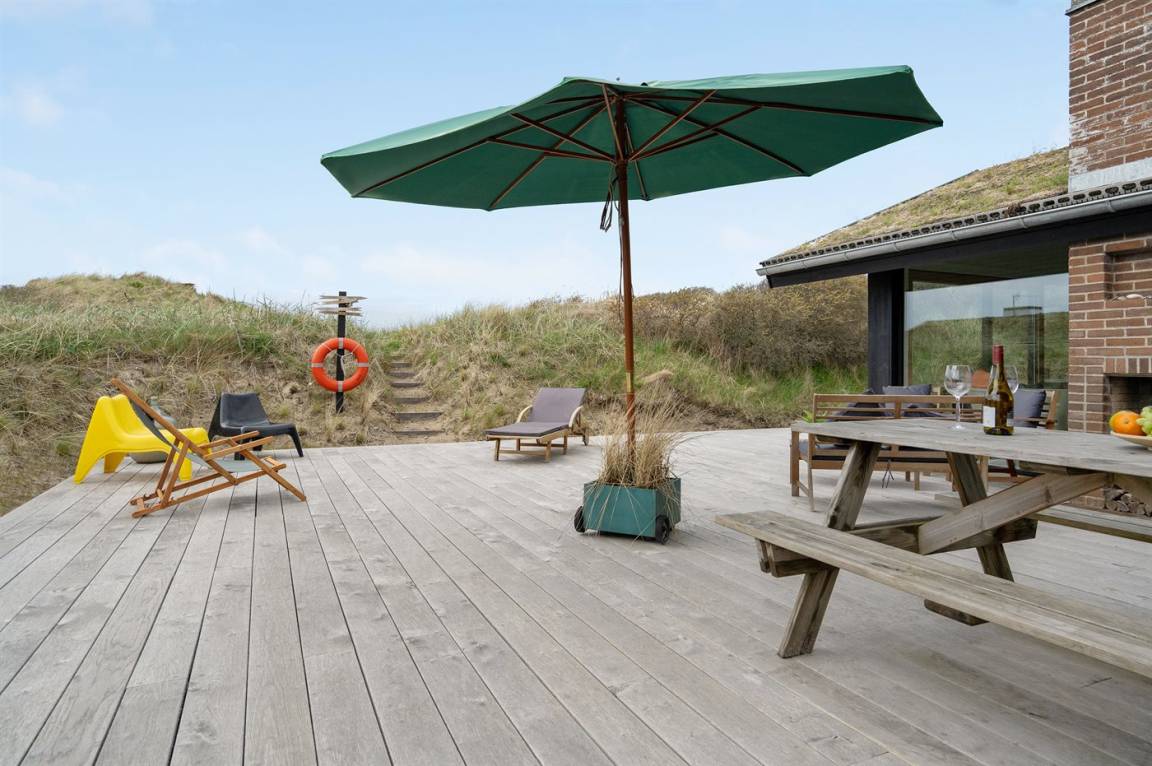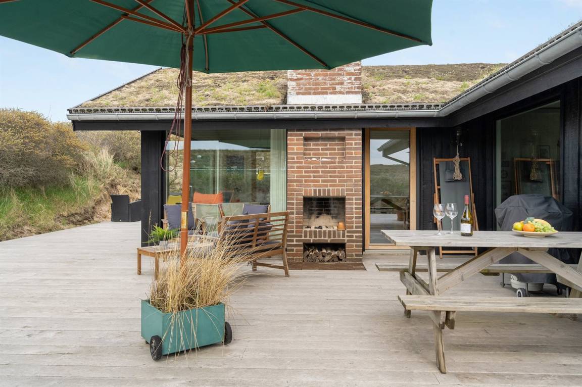 DraußenDie Ferienunterkunft liegt auf einem 6000 m² großen Dünengrundstück. Die Entfernung zum Meer beträgt 140 m. Die nächste Einkaufsmöglichkeit liegt 1900 m entfernt. Es steht ein offenes Terrassenareal zur Verfügung. Außendusche. An Sommerabenden sorgt der Außenkamin für eine gemütliche Atmosphäre. Es steht ein Grill zur Verfügung. Parkplatz auf dem Grundstück.