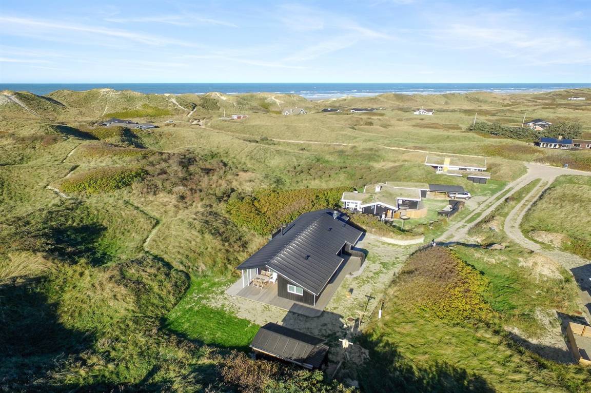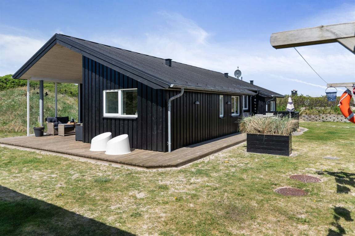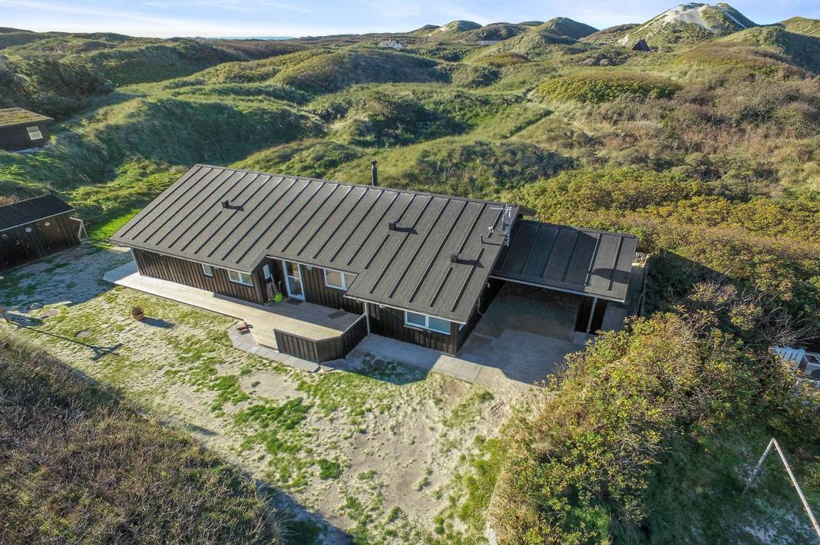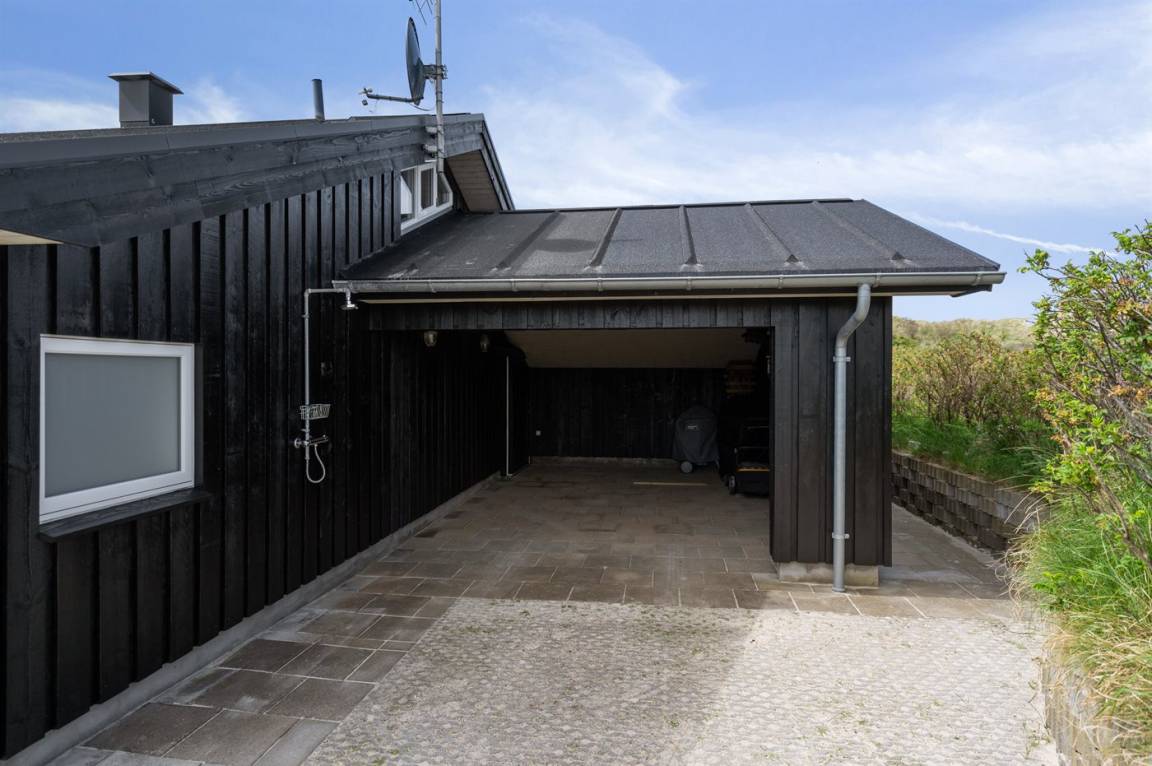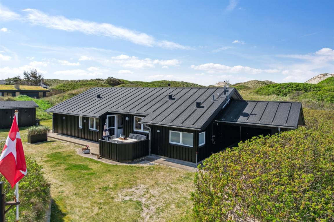 DraußenDie Ferienunterkunft liegt auf einem 3600 m² großen Dünengrundstück. Die Entfernung zum Meer beträgt 300 m. Die nächste Einkaufsmöglichkeit liegt 1500 m entfernt. Es steht ein 100 m² Terrassenareal zur Verfügung. Außerdem gibt es 12 m² überdachte Terrasse. Geräteraum. Außendusche. Es steht ein Grill zur Verfügung. Es steht ein Carport zur Verfügung. Parkplatz auf dem Grundstück.
