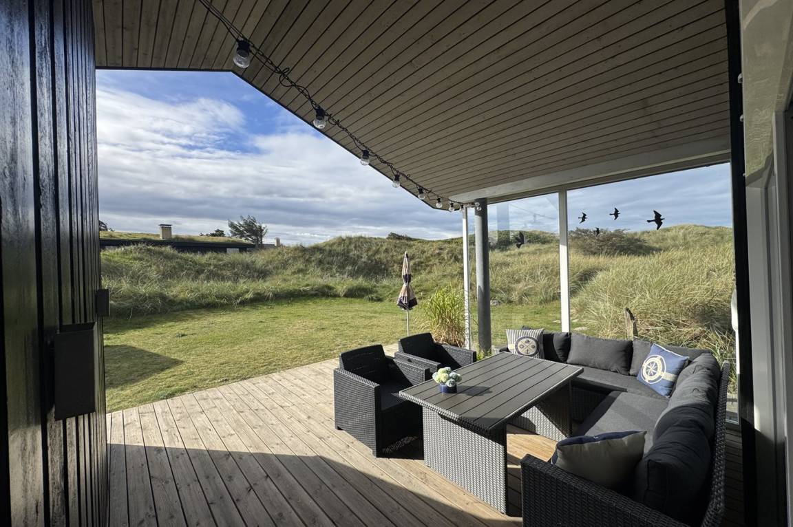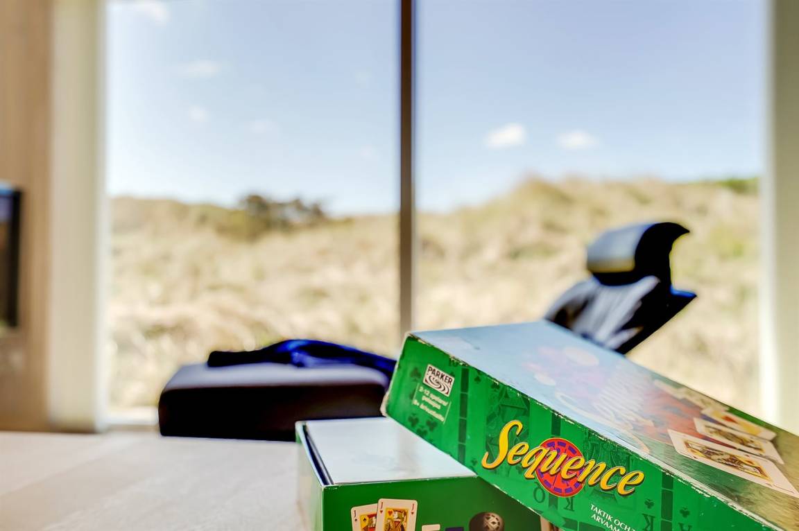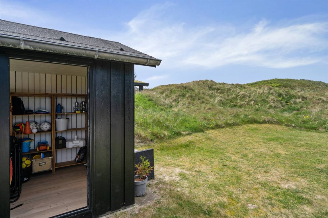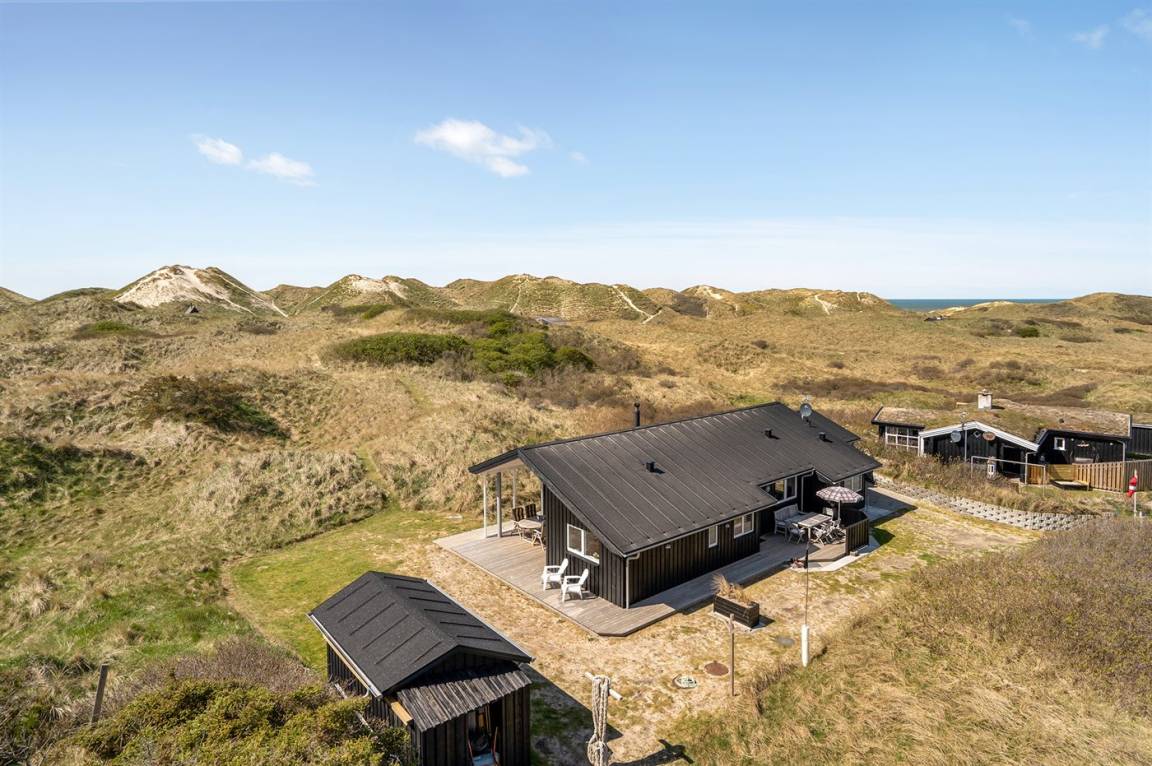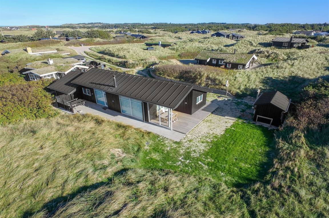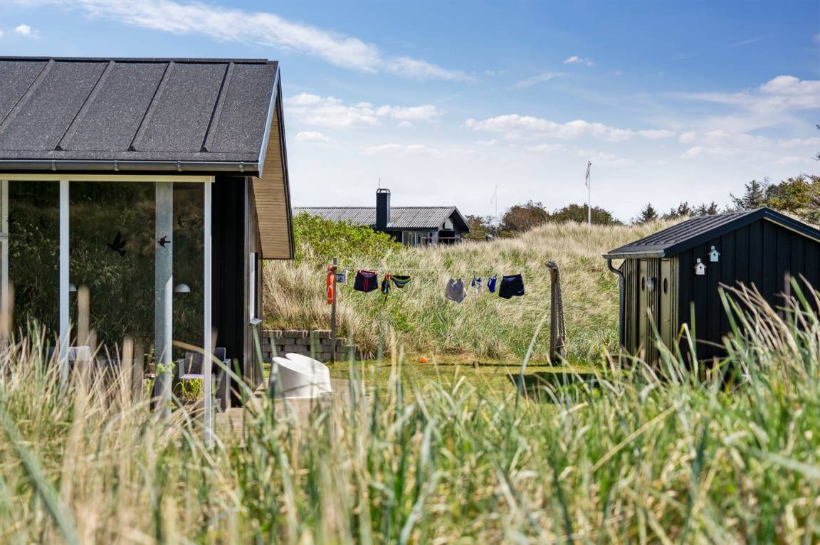 DraußenDie Ferienunterkunft liegt auf einem 3600 m² großen Dünengrundstück. Die Entfernung zum Meer beträgt 300 m. Die nächste Einkaufsmöglichkeit liegt 1500 m entfernt. Es steht ein 100 m² Terrassenareal zur Verfügung. Außerdem gibt es 12 m² überdachte Terrasse. Geräteraum. Außendusche. Es steht ein Grill zur Verfügung. Es steht ein Carport zur Verfügung. Parkplatz auf dem Grundstück.