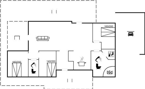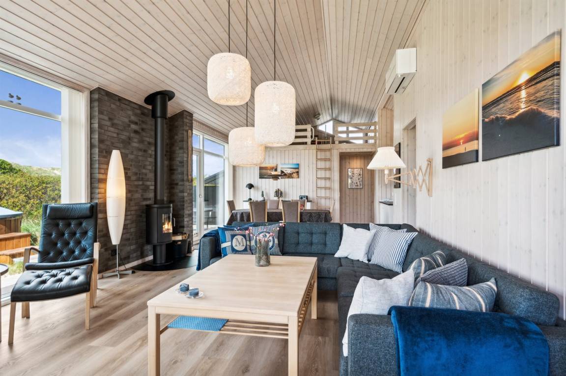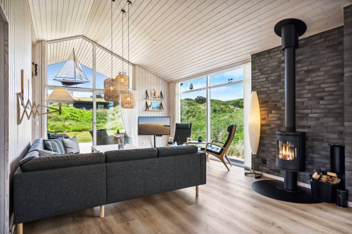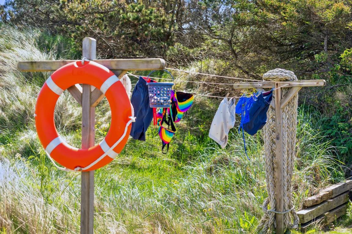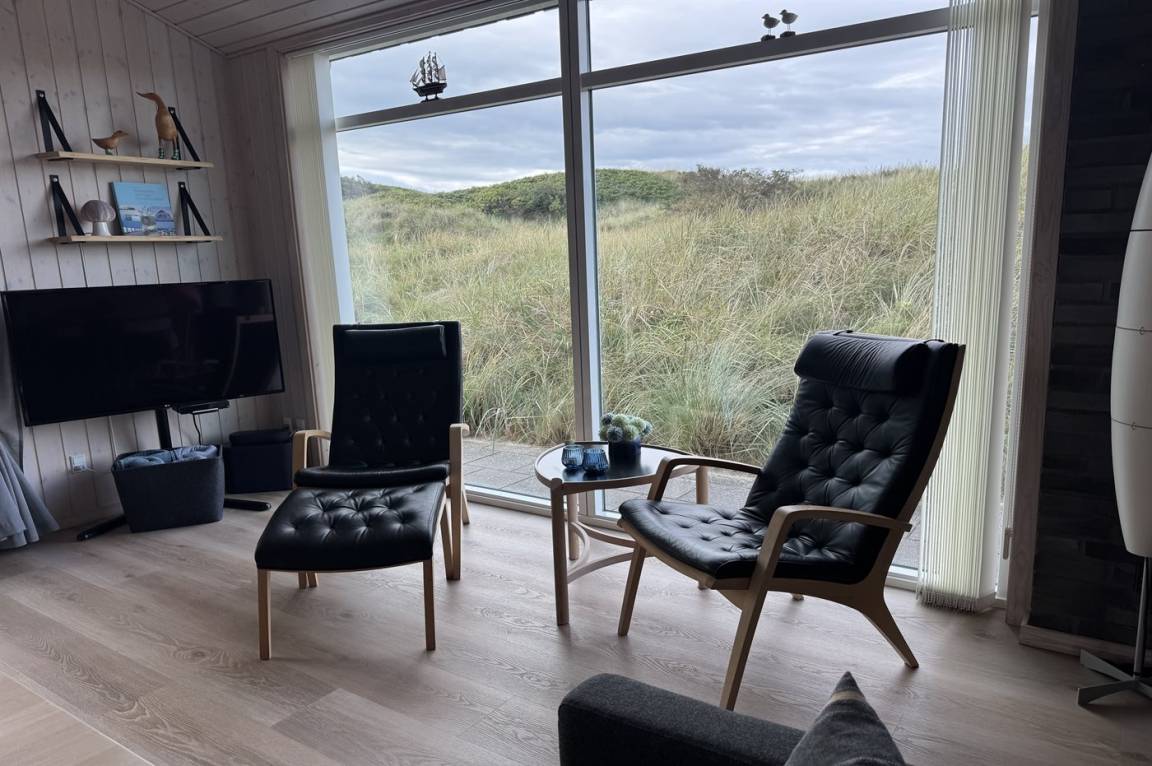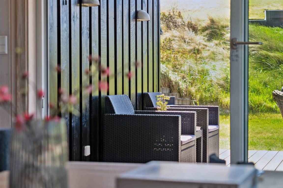 DraußenDie Ferienunterkunft liegt auf einem 3600 m² großen Dünengrundstück. Die Entfernung zum Meer beträgt 300 m. Die nächste Einkaufsmöglichkeit liegt 1500 m entfernt. Es steht ein 100 m² Terrassenareal zur Verfügung. Außerdem gibt es 12 m² überdachte Terrasse. Geräteraum. Außendusche. Es steht ein Grill zur Verfügung. Es steht ein Carport zur Verfügung. Parkplatz auf dem Grundstück.
