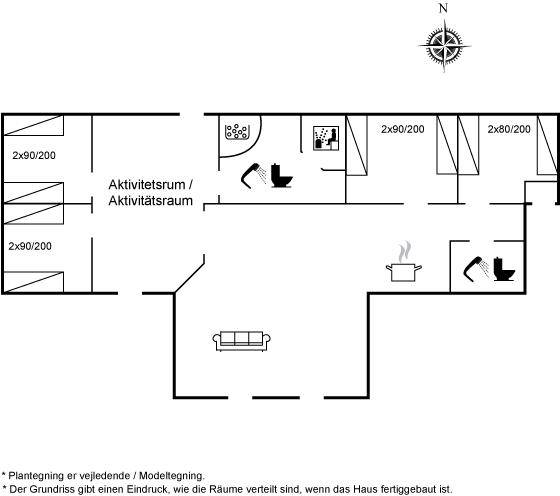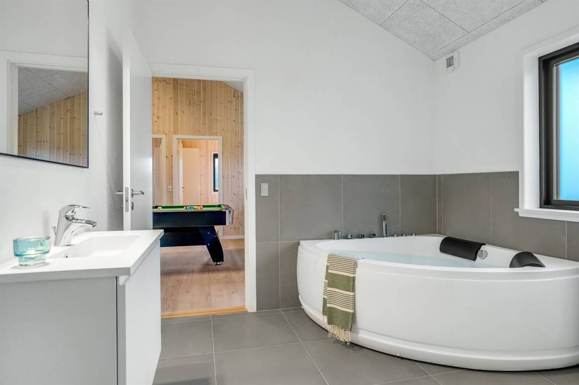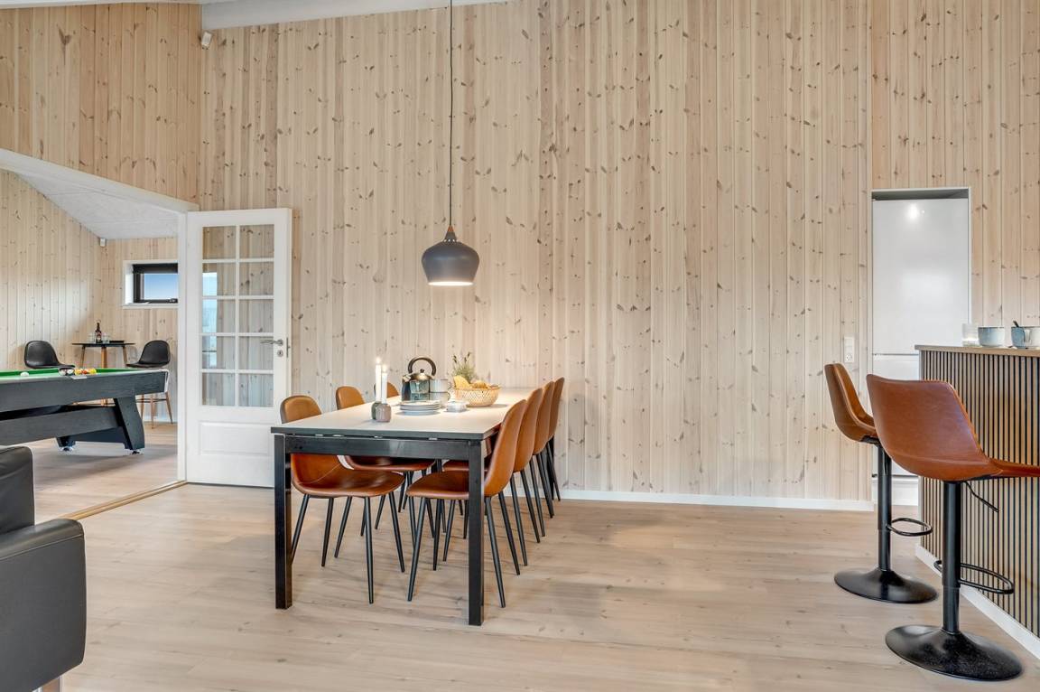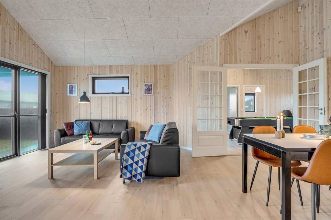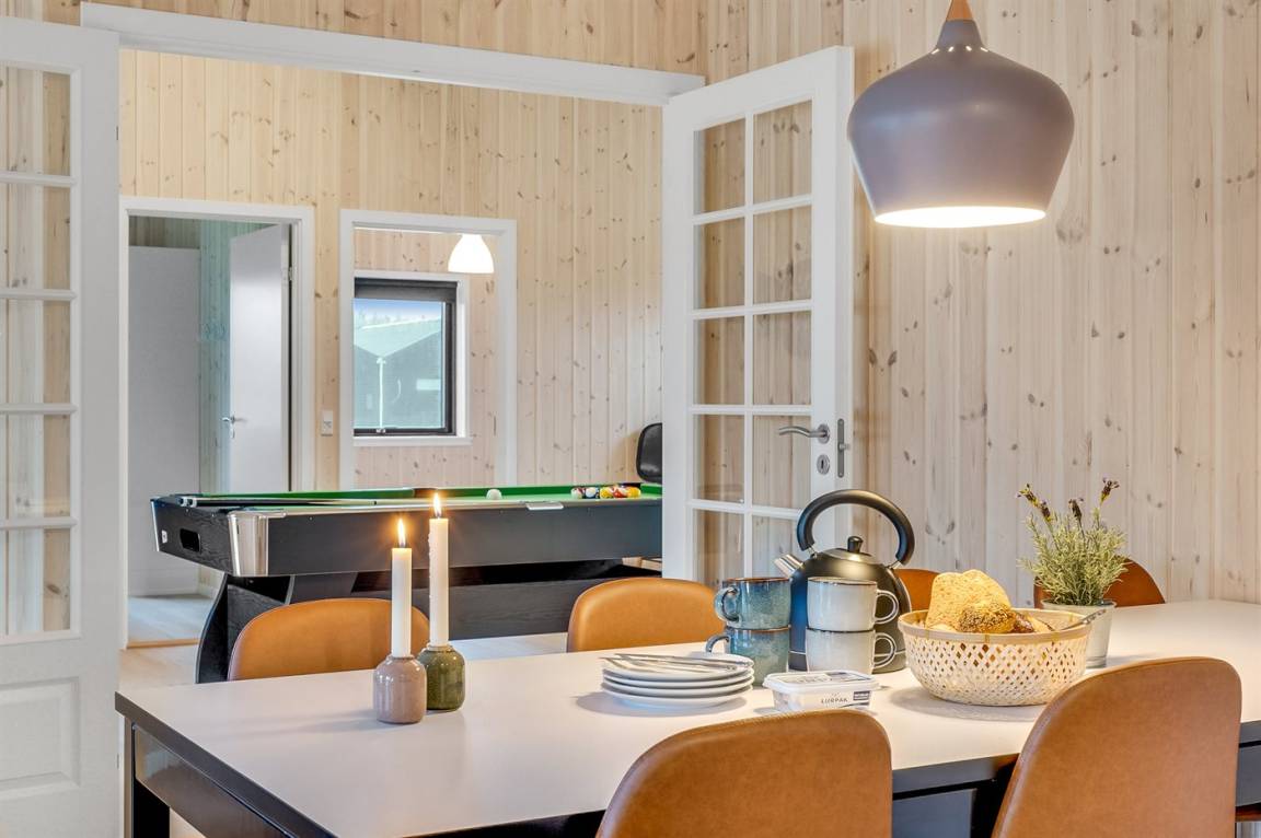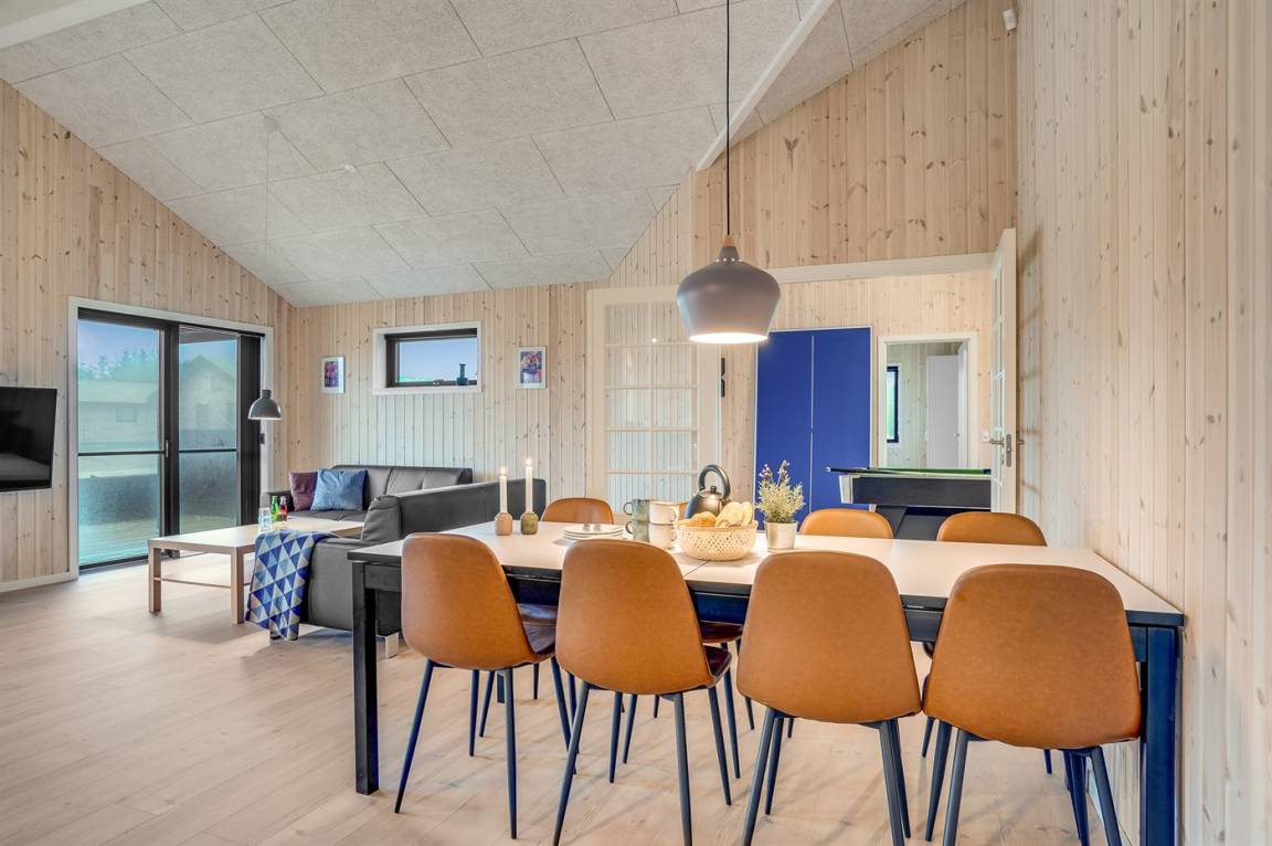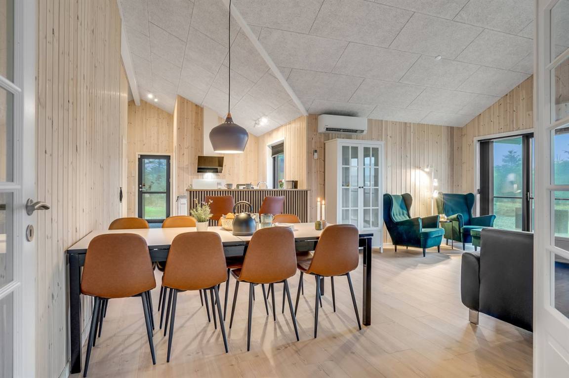 Dieses schöne, neu erbaute Ferienhaus liegt in dem Feriengebiet Saltum – nicht weit vom schönen Badestrand, schöne Naturgebiete und dem Freizeitpark Fårup Sommerland entfernt. Aufgrund der Größe und Einrichtung eignet sich das Haus perfekt für den Familienurlaub oder für mehrere Paare, die einen gemeinsamen Urlaub in ruhiger Umgebung verbringen möchten.
