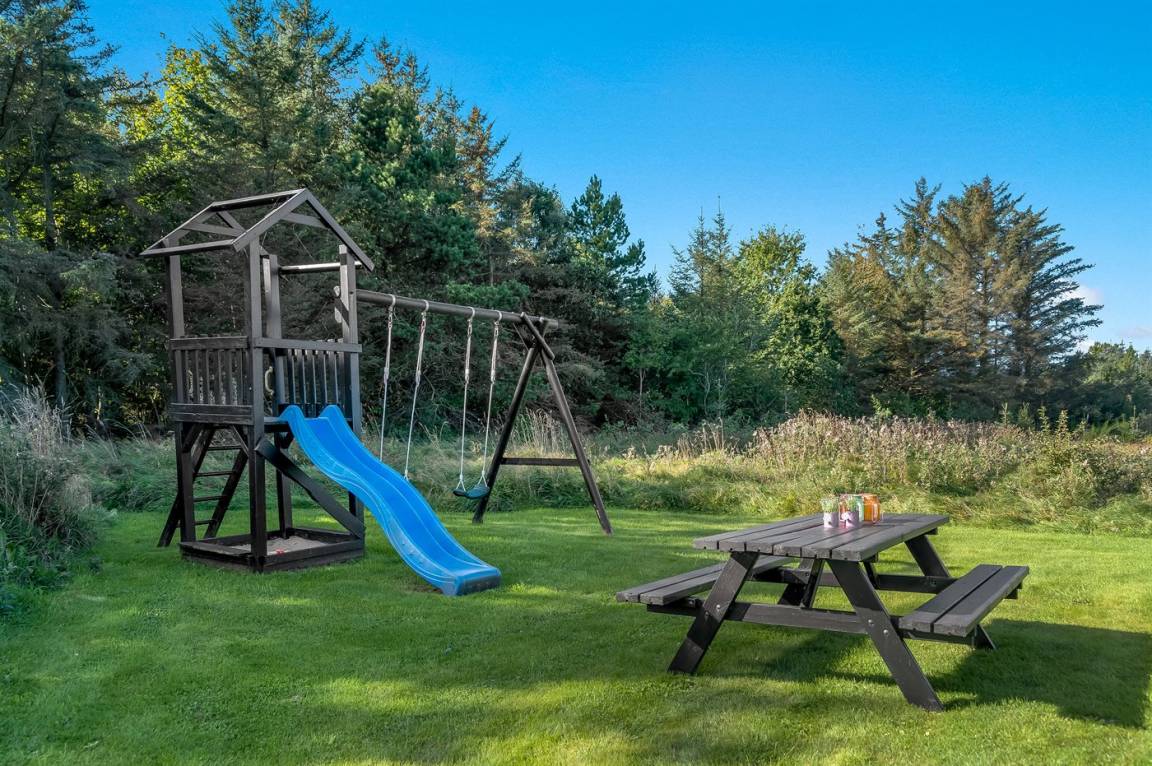 DraußenDie Ferienunterkunft liegt auf einem 2500 m² großen Naturgrundstück. Die Entfernung zum Meer beträgt 1400 m. Die nächste Einkaufsmöglichkeit liegt 1800 m entfernt. Es steht ein 90 m² Terrassenareal zur Verfügung. Außerdem gibt es 10 m² überdachte Terrasse. Schaukel. Spielturm. Rutsche. Fußballtor. Es steht ein Grill zur Verfügung. Parkplatz auf dem Grundstück.