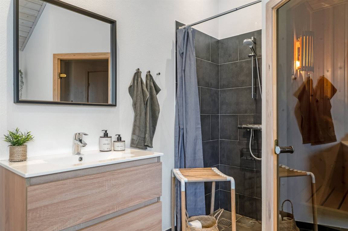 WC und BadEs gibt 2 Badezimmer mit Duschnische und 2 Toiletten. Fußbodenheizung in 2 Badezimmern. Es steht eine Sauna zur Verfügung in der Sie sich so richtig entspannen können.