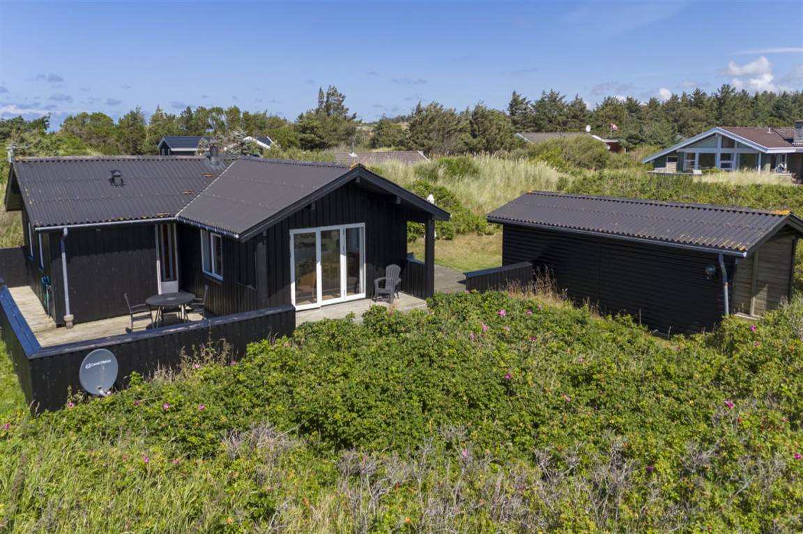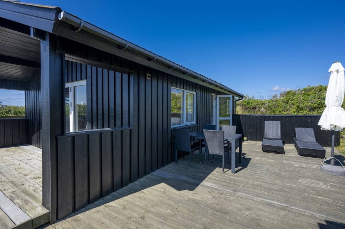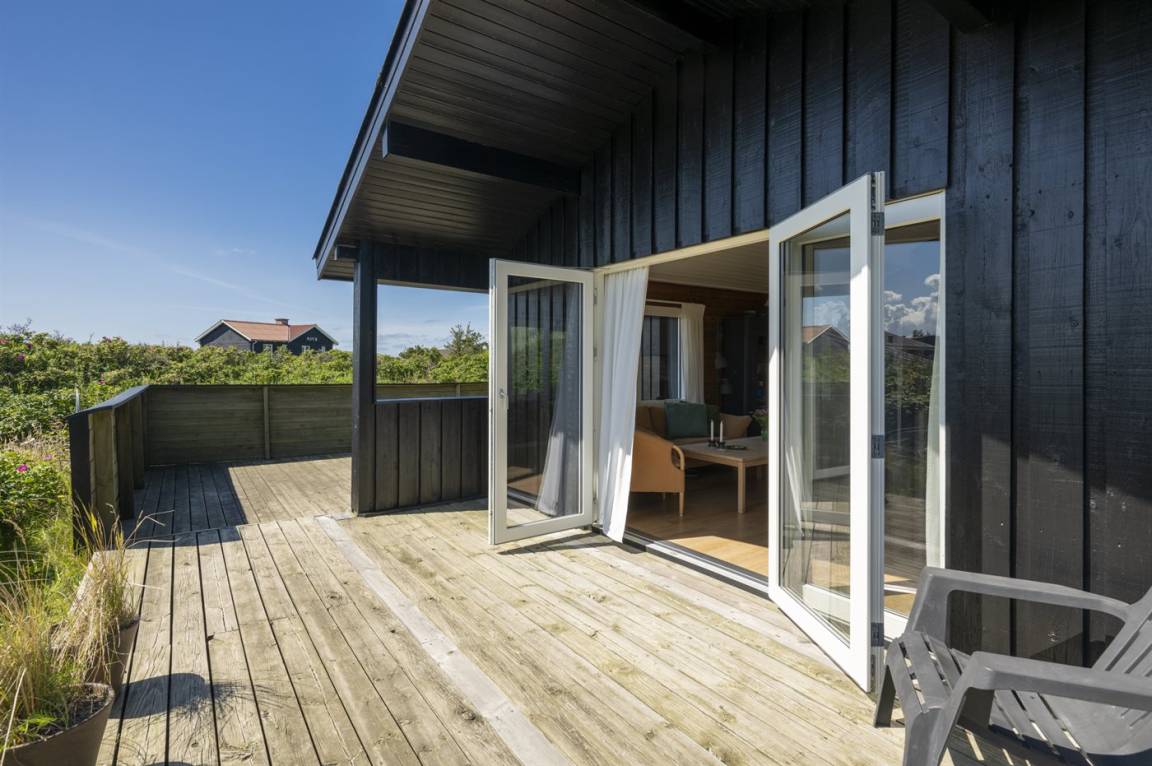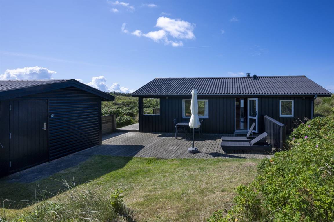 Dieses besonders gemütliche Balkenferienhaus liegt auf einem hügeligen Dünengrundstück - nur 300 m von der Nordsee entfernt. Vom Grundstück können Sie das Meer sehen und den Sonnenuntergang genießen. Zum Haus gehört eine große, offene Terrasse mit Gartenmöbeln. Das Haus liegt in der Nähe von einem Naturschutzgebiet mit guten Wandermöglichkeiten.