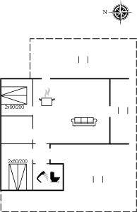 SchlafverhältnisseDie Schlafplätze verteilen sich auf 2 Schlafräume. 4 Schlafplätze in Doppelbetten.
