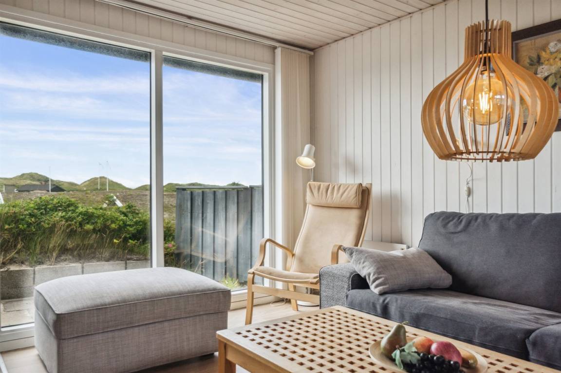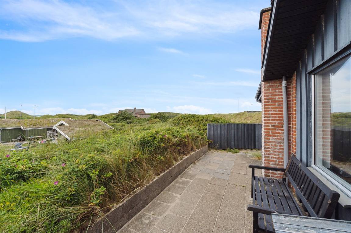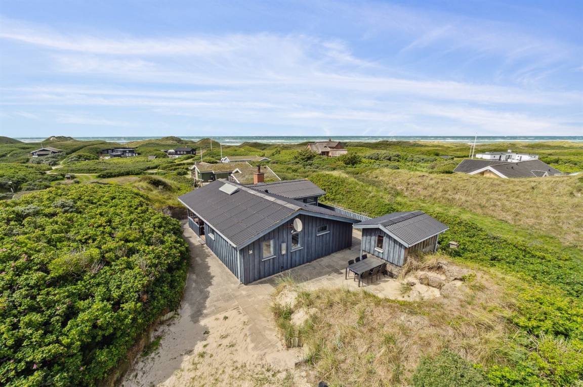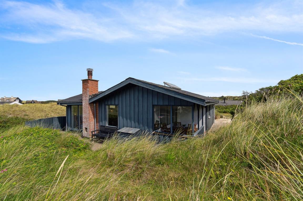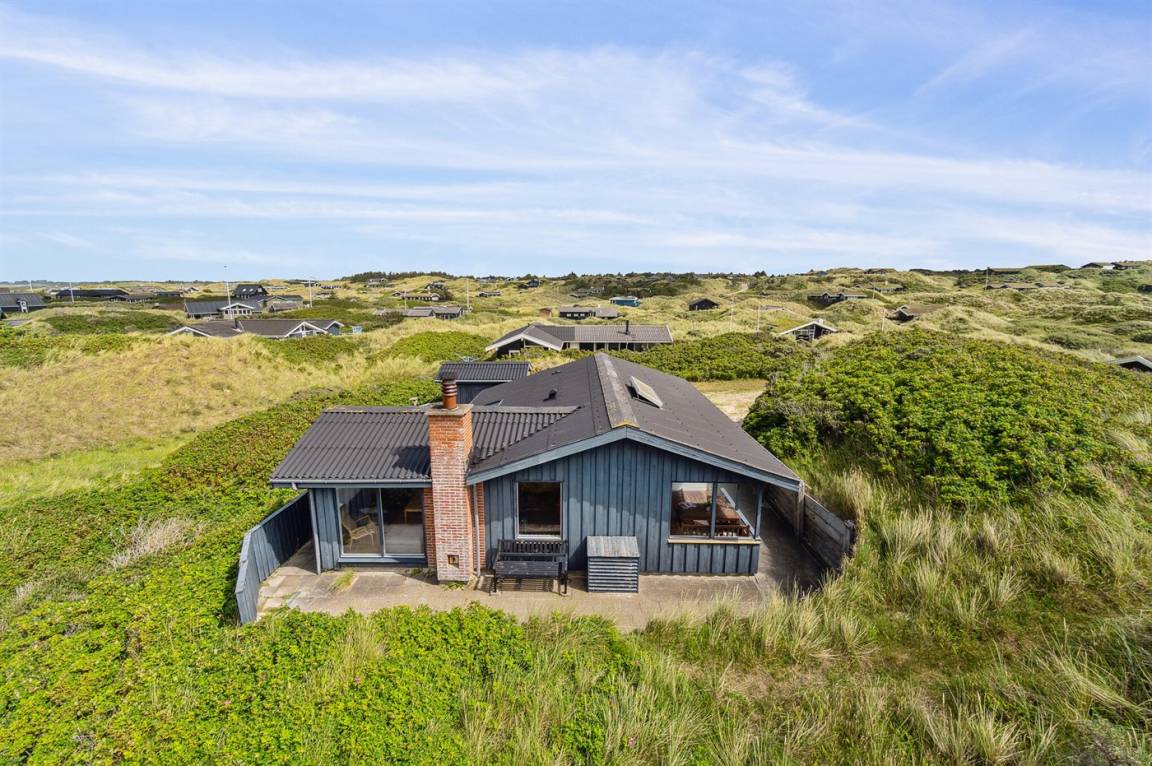 Gut gelegenes älteres Ferienhaus, das auf einem hügeligen Dünengrundstück nur 250 m vom breiten Sandstrand bei Saltum entfernt liegt. Vom Wohnzimmer hat man eine schöne Aussicht über die Dünenlandschaft bis zum Meer.
