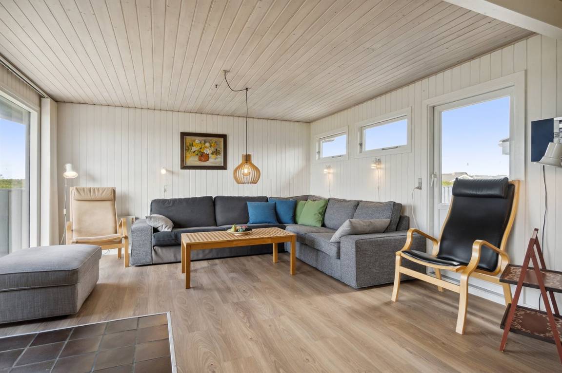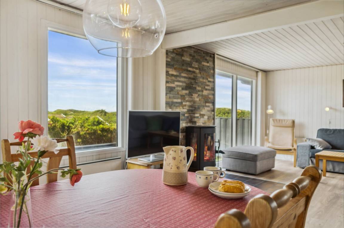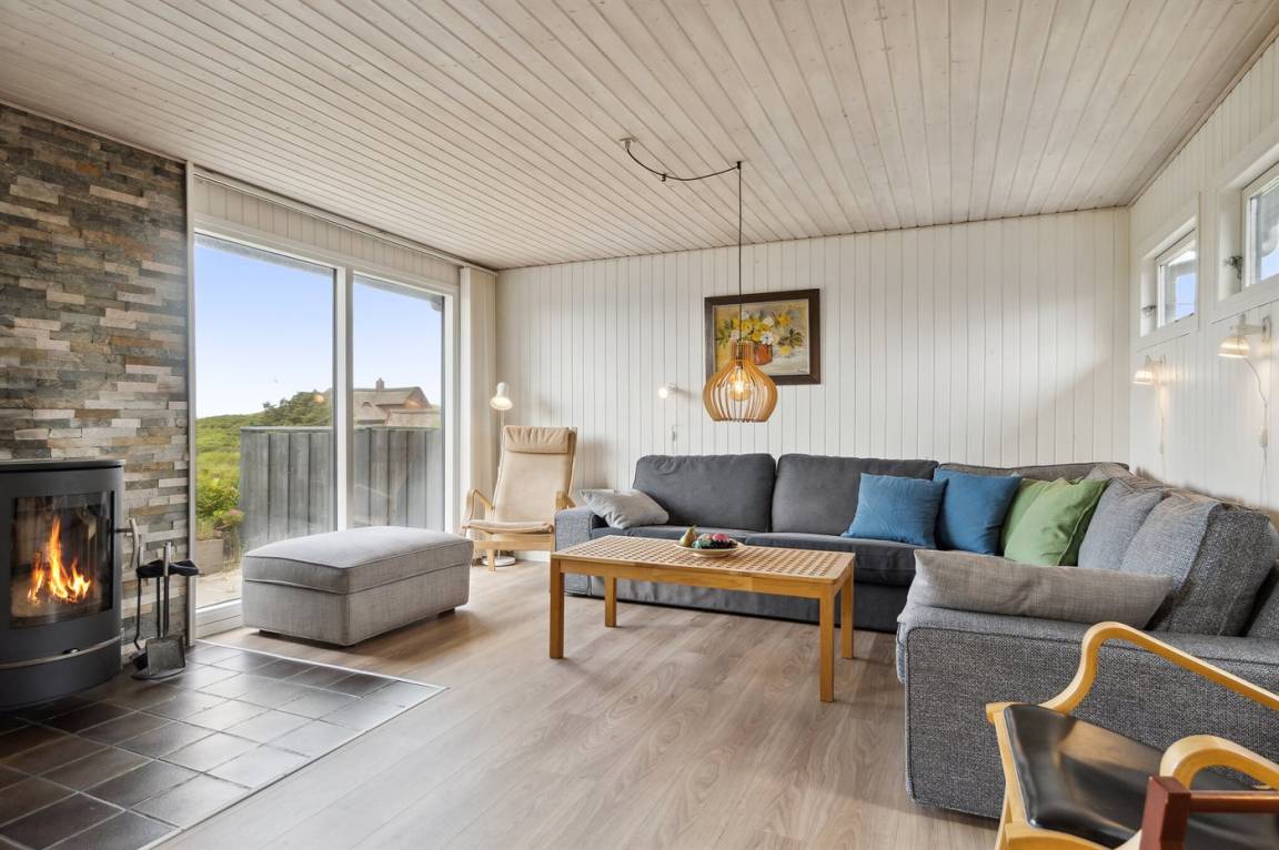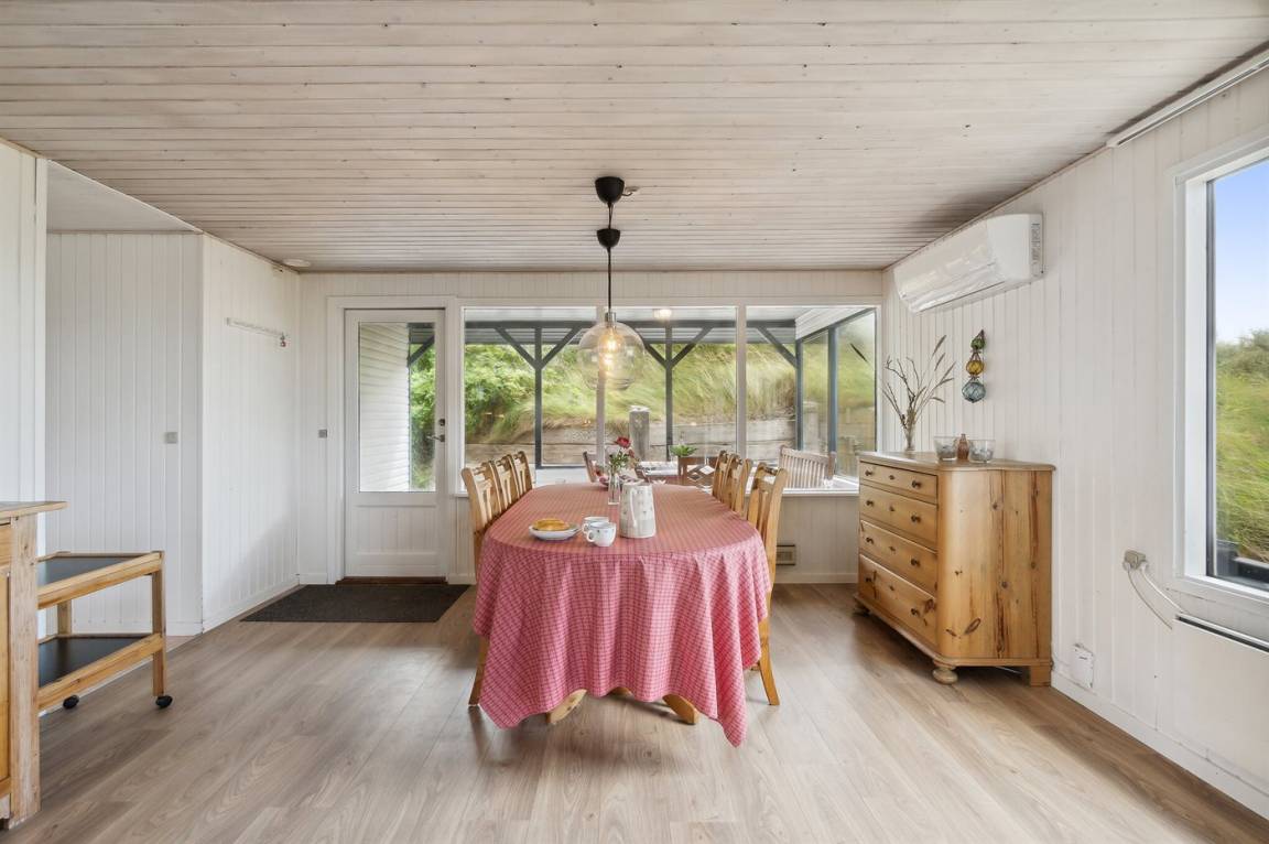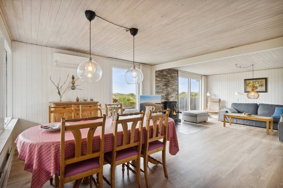Gut gelegenes älteres Ferienhaus, das auf einem hügeligen Dünengrundstück nur 250 m vom breiten Sandstrand bei Saltum entfernt liegt. Vom Wohnzimmer hat man eine schöne Aussicht über die Dünenlandschaft bis zum Meer.