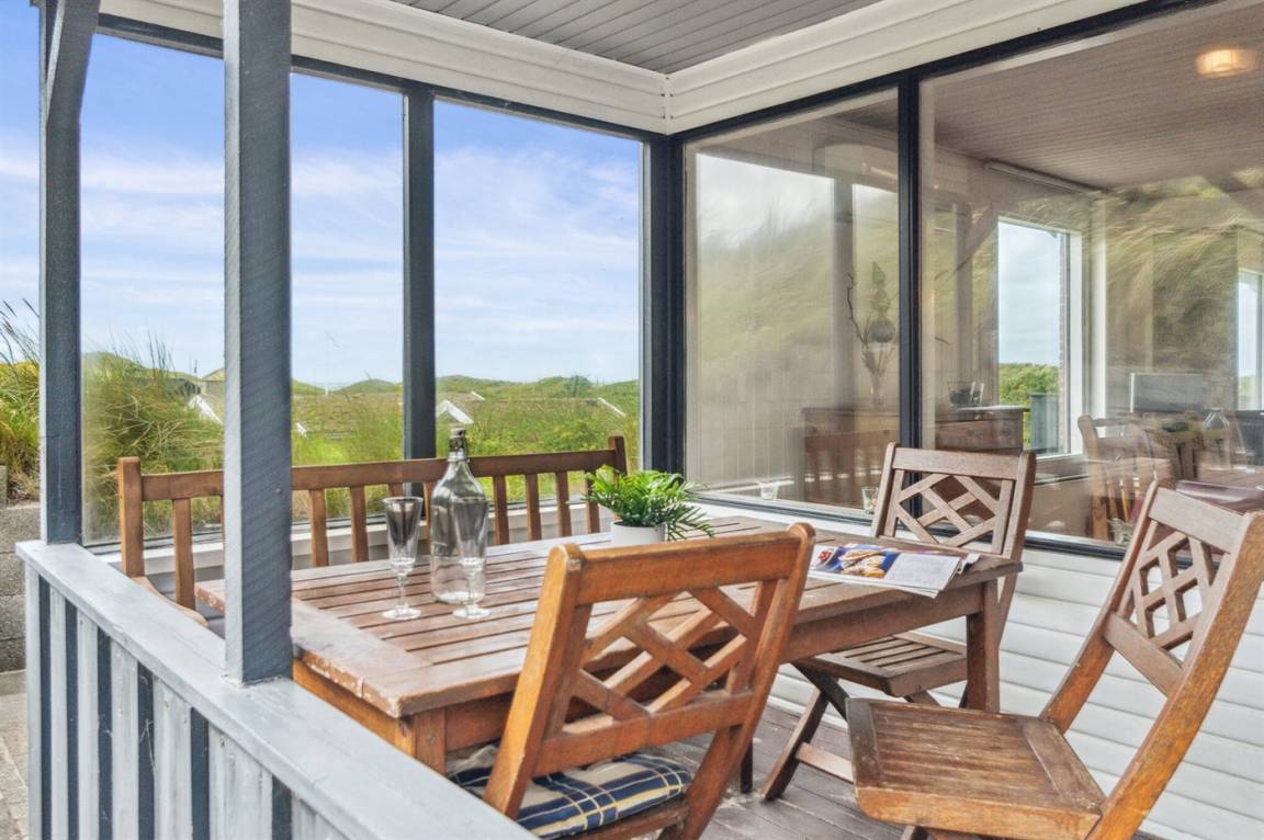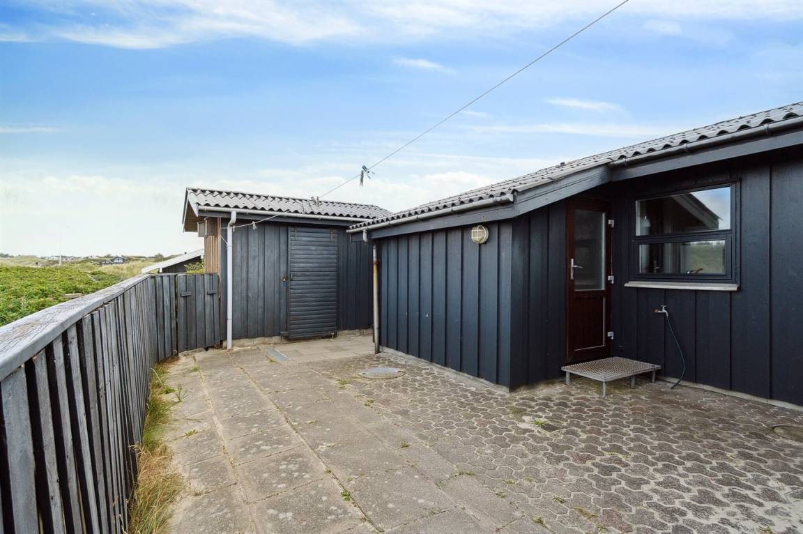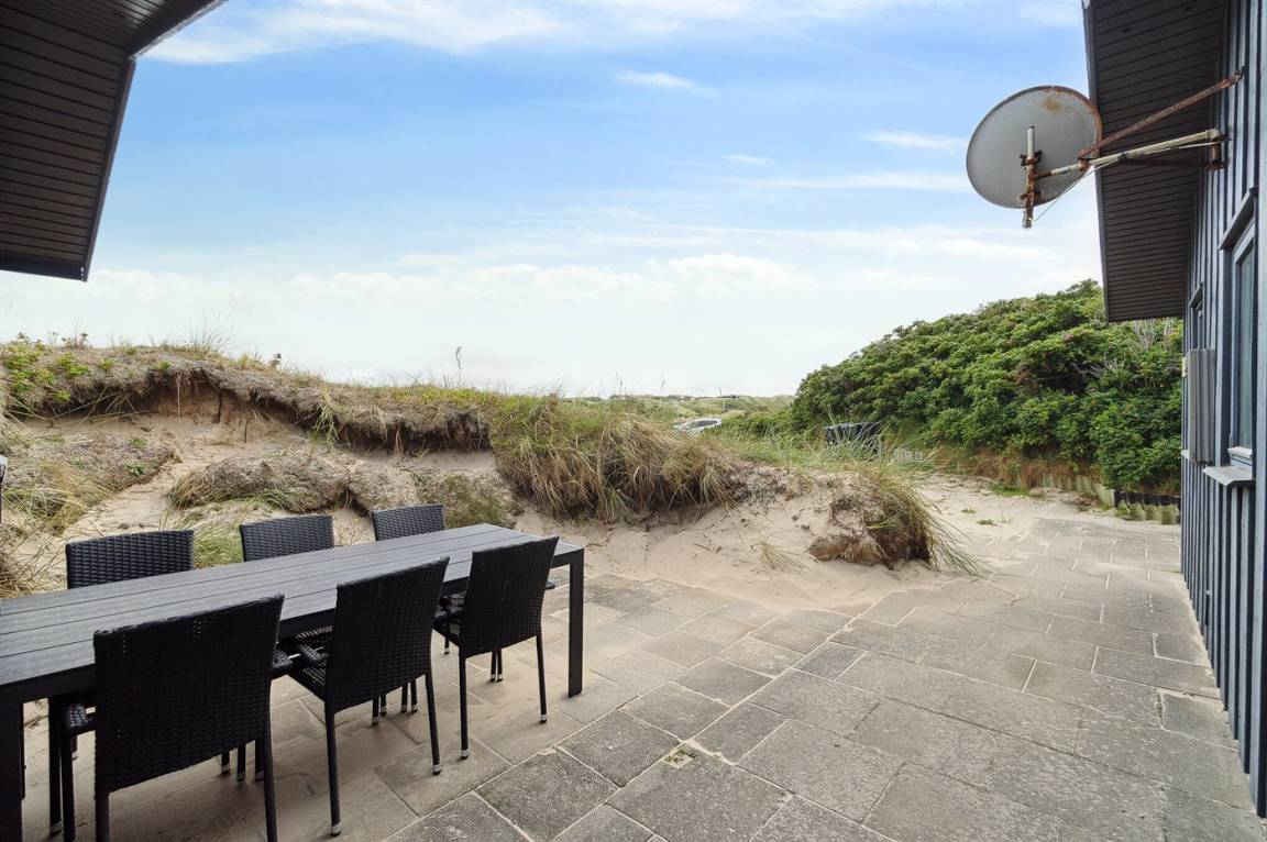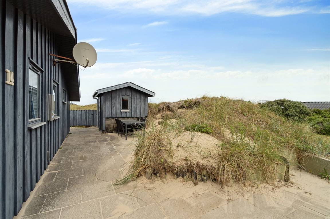 DraußenDie Ferienunterkunft liegt auf einem 1800 m² großen Dünengrundstück. Die Entfernung zum Meer beträgt 250 m. Die nächste Einkaufsmöglichkeit liegt 3000 m entfernt. Es steht ein 20 m² Terrassenareal zur Verfügung. Außerdem gibt es 8 m² überdachte Terrasse. Geräteraum. Parkplatz auf dem Grundstück.