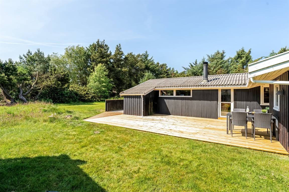 DraußenDie Ferienunterkunft liegt auf einem 1679 m² großen Naturgrundstück. Das Grundstück ist eingezäunt. Die Entfernung zum Meer beträgt 600 m. Die nächste Einkaufsmöglichkeit liegt 2500 m entfernt. In einem Abstand von 7000 m gibt es einen Golfplatz. Es steht ein offenes Terrassenareal zur Verfügung. Außerdem gibt es überdachte Terrasse. Geräteraum. Sandkasten. Es steht ein Grill zur Verfügung. Es ist ein Ladestecker für Elektroautos installiert. Parkplatz auf dem Grundstück.