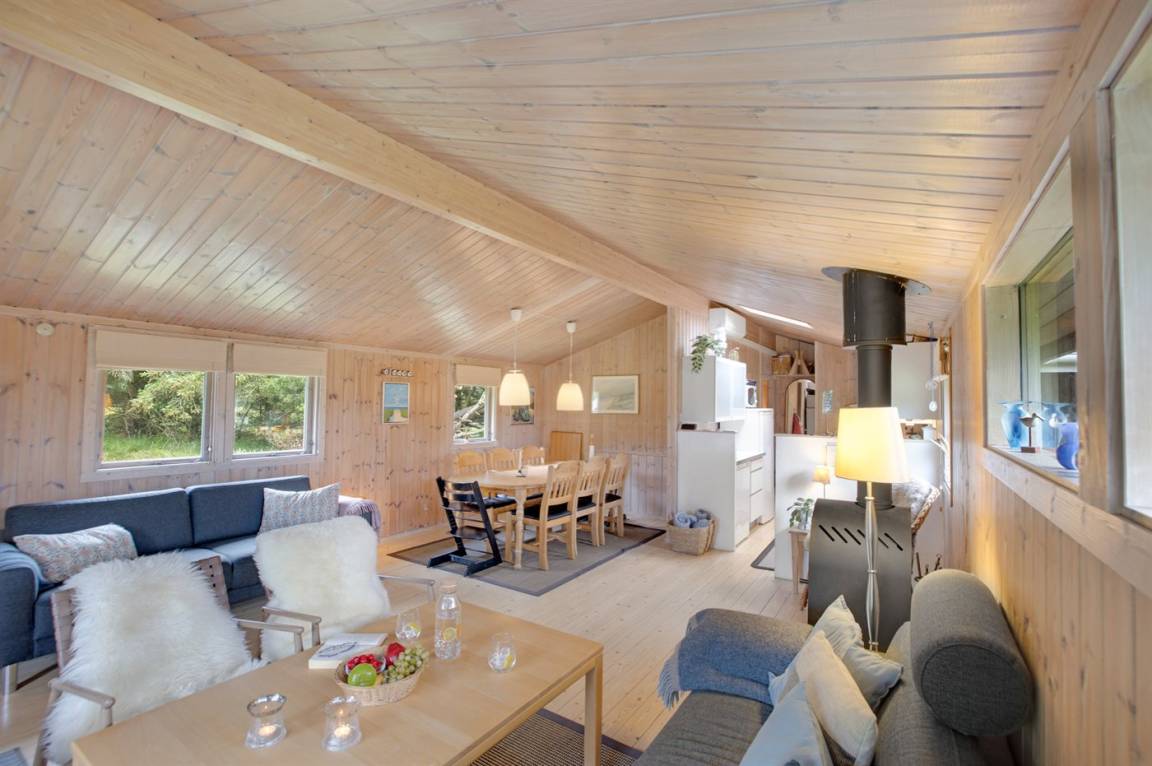 EinrichtungDas Ferienhaus eignet sich für 6 Personen sowie 1 Kleinkind bis zu 3 Jahren. Die Ferienunterkunft hat eine Wohnfläche von 81 m² und wurde 1973 gebaut. 2003 wurde die Ferienunterkunft renoviert. Es ist erlaubt 2 Haustiere mitzubringen. In der Ferienunterkunft ist eine energiesparender Luft zu Luft Wärmepumpe installiert. Tiefkühlmöglichkeit mit 100 Liter Nutzinhalt. Es gibt außerdem einen Kaminofen. Für die jüngsten Feriengäste ist 1 Kinderhochstuhl vorhanden.